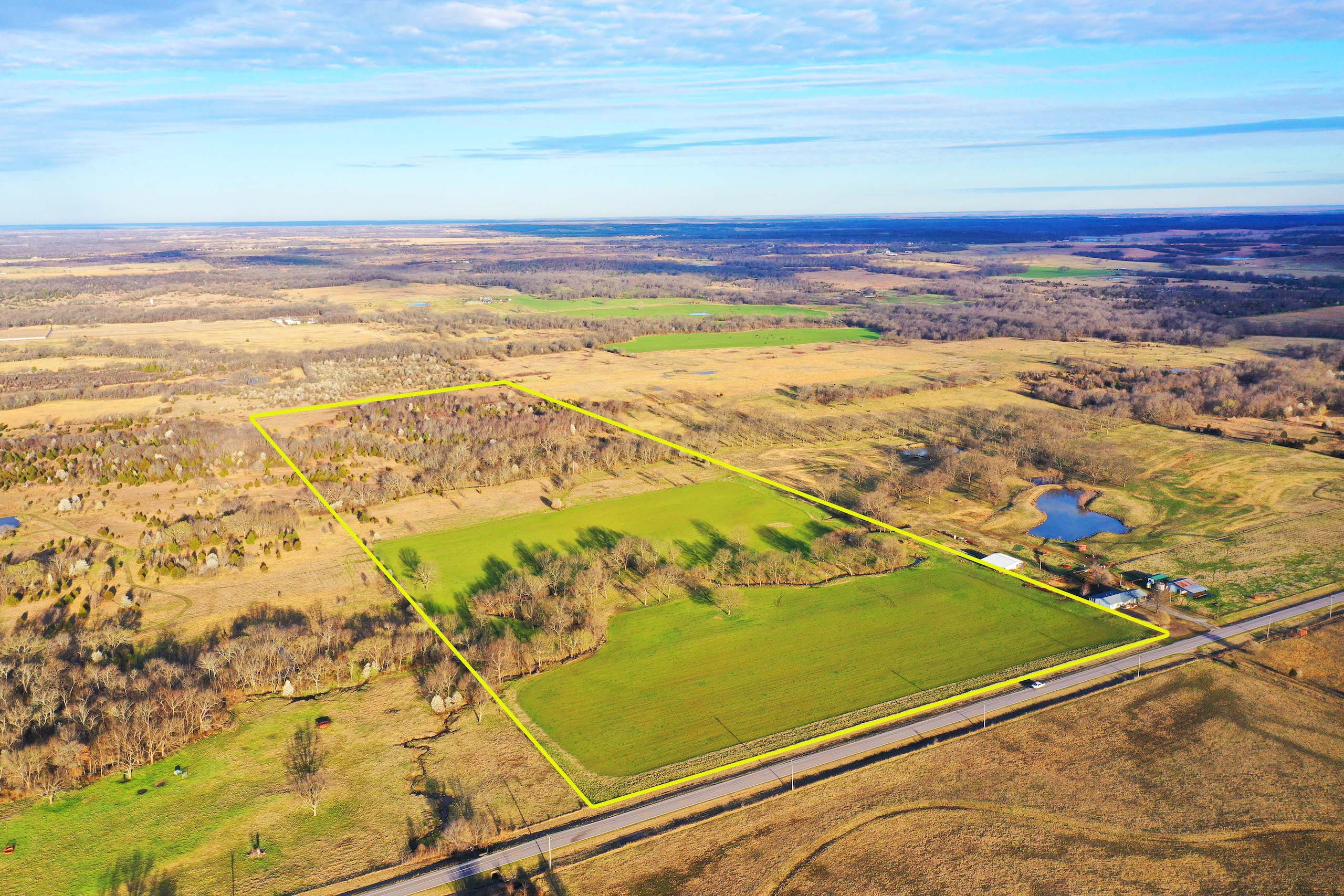If you are looking for a great all-around property, then this farm near Okemah could be the one for you. Whether you are wanting to build your dream home on acreage, add to your cattle operation, or have a great recreational tract - this property does it all. Just off of Ok-56, north of Okemah, you’ll see a pristine wheat field on the west side of the road with a small herd of cattle grazing. A stream flows through the tillable field surrounded by large hardwood trees creating a beautiful scene that anyone would love to see in their backyard. The paved road frontage along with flat topography and utilities make this a phenomenal home build site giving you country living with the perks of town nearby. Around 15 acres of tillable ground gives you the option to farm or lease out the farming for a little extra income. There are also several acres of pasture that provide cattle grazing opportunities. If you enjoy hunting or just spending time outdoors, this tract has everything you need for a great experience. Timbered areas along with a small pond and pasture create great habitat for all types of wildlife. This means that the farm will provide you with great whitetail hunting opportunities as well as the potential for wild hogs and turkey. You don’t want to miss out on this opportunity to own this beautiful farm. Contact the land specialist to schedule a showing today.