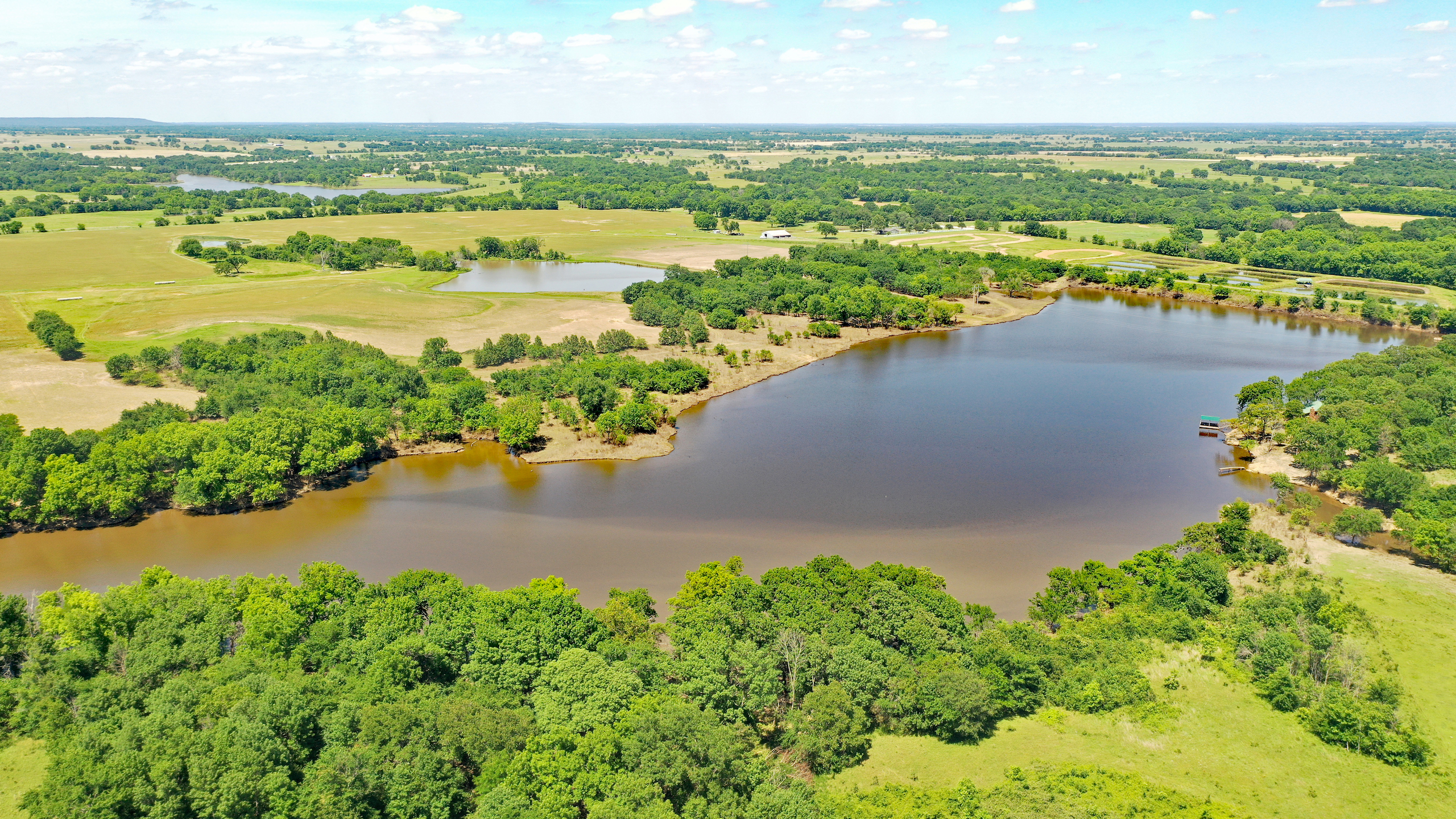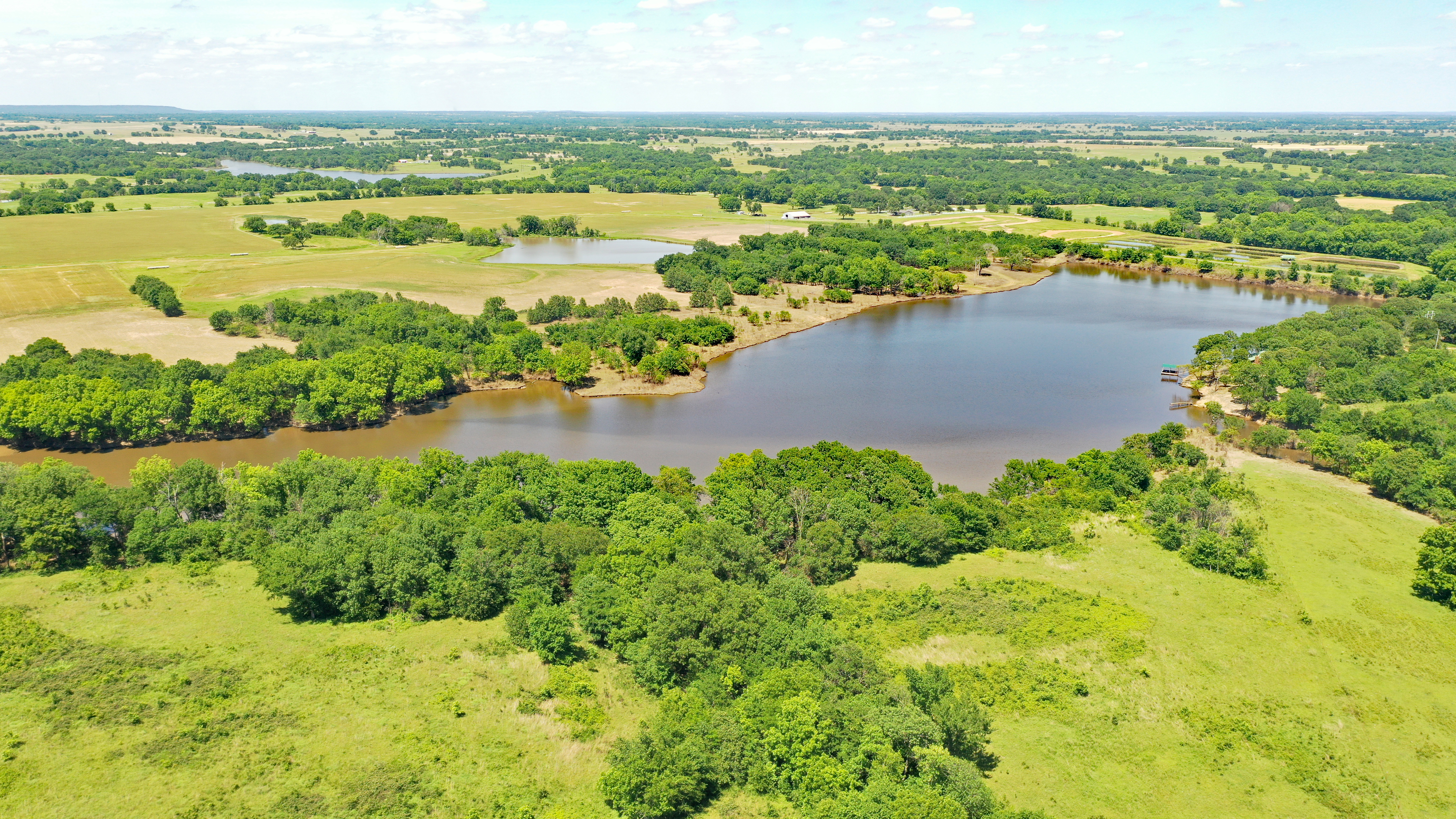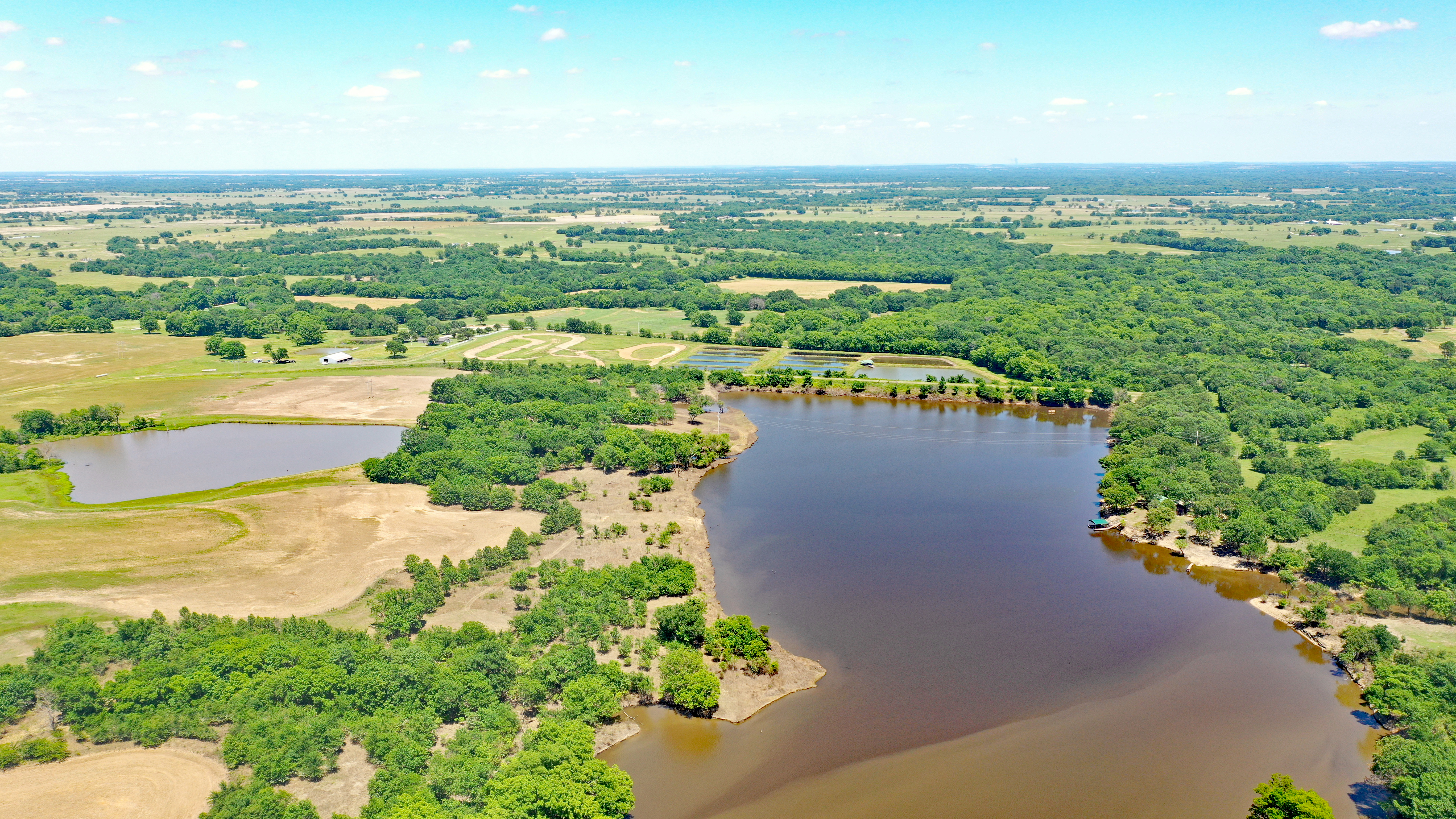 Premier offering of legacy property just 30 min south of Tulsa. Properties like this don’t become available often. The property features a stunning 41-acre lake that is simply loaded with giant bass and crappie. There are 250 acres of tillable ground with 180ac currently under a sharecrop program with a neighboring farmer. Below the lake, 13 ponds were built for fish farming and included everything needed to drain and fill the ponds. There is a 1976 Stucco home as well as a 1982 log cabin, both of which are in the process of being renovated…so perfect timing for you to add your own personal touch. Not only is there great ROI potential, but the recreational aspect of this property is outstanding. Great hunting for deer, turkey, waterfowl, dove, and small game. So, spend the day with your family and friends, hunting, fishing, hiking, riding dirt bikes, or shooting on the pistol or rifle range. You don’t want to let this one get away. Call Dean today and let’s go for a ride around this premier offering.
