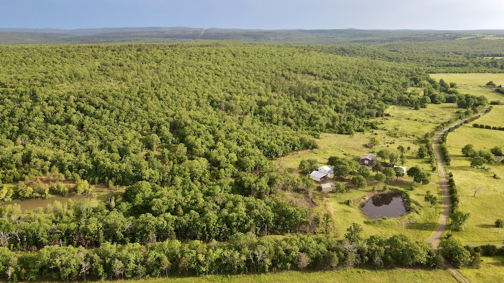 - San Bois Creek frontage with low-water crossing