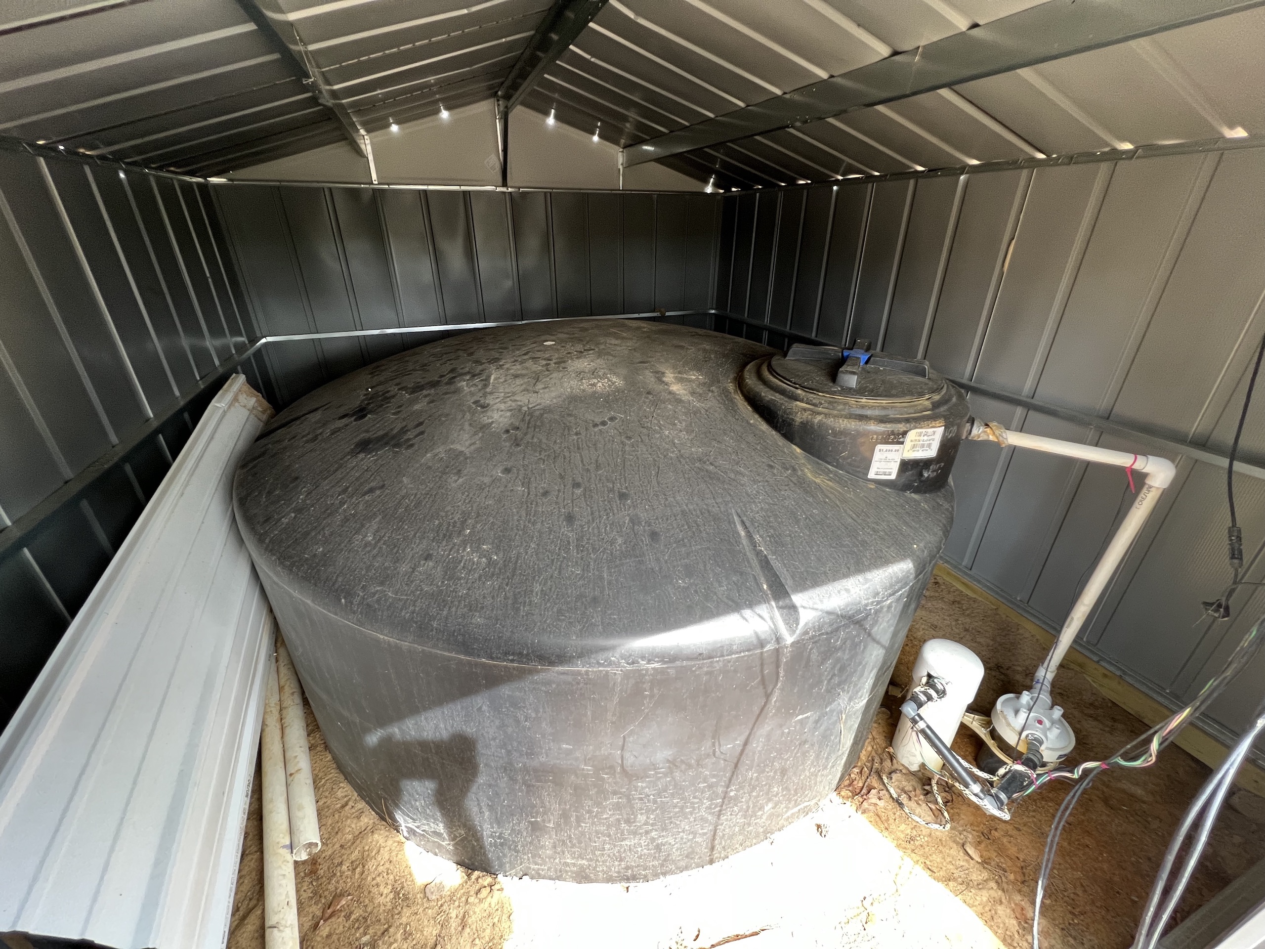 - Solar and gravity powered water well, feeding 1100 gallon holding tank