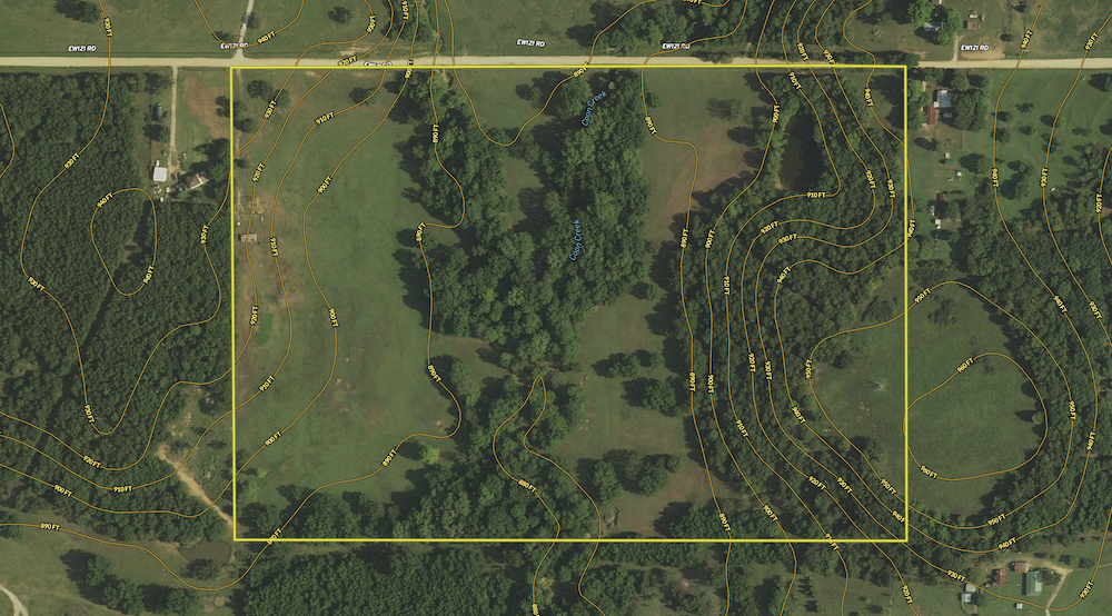 - Coon Creek winds through middle of the property