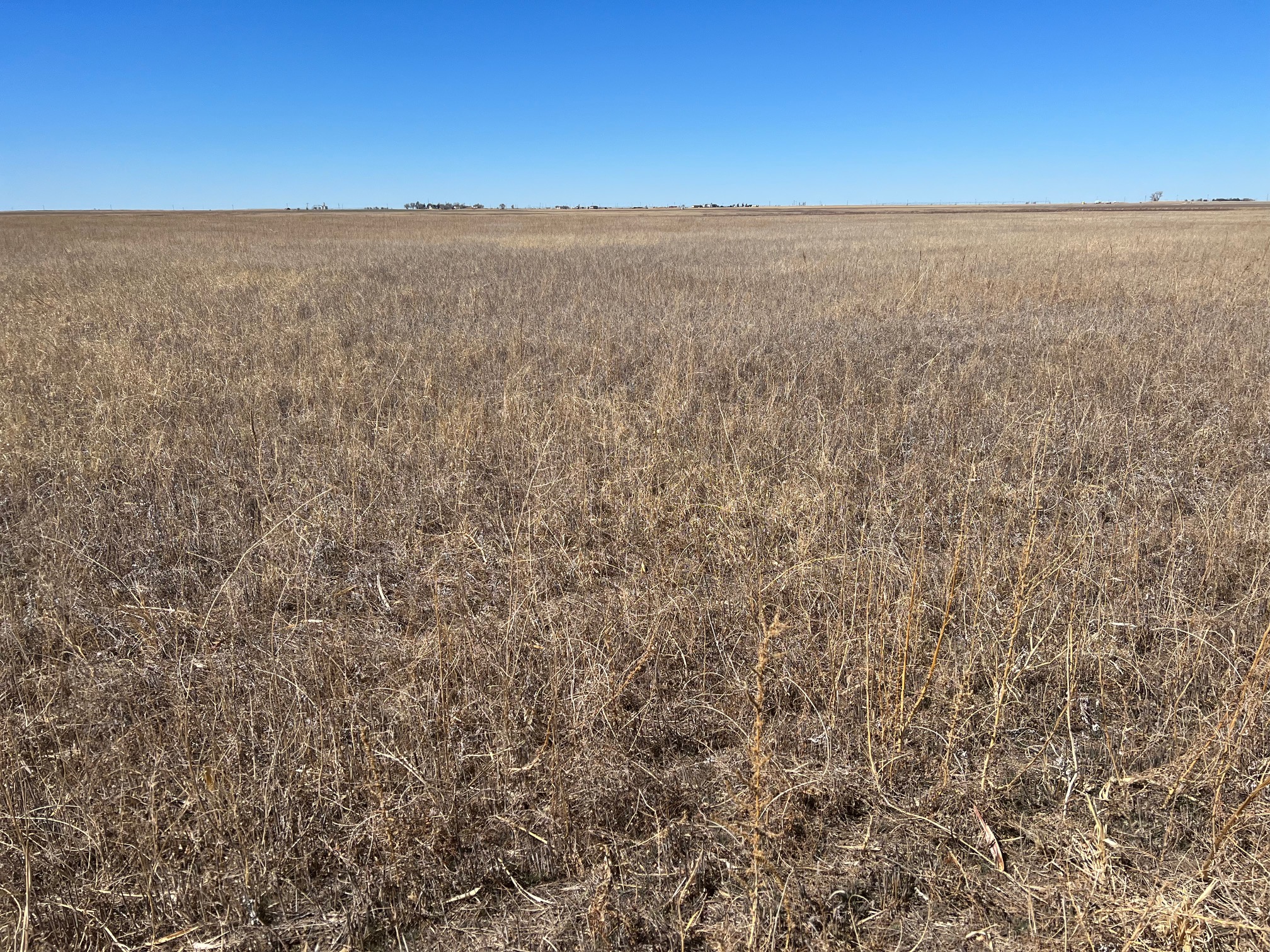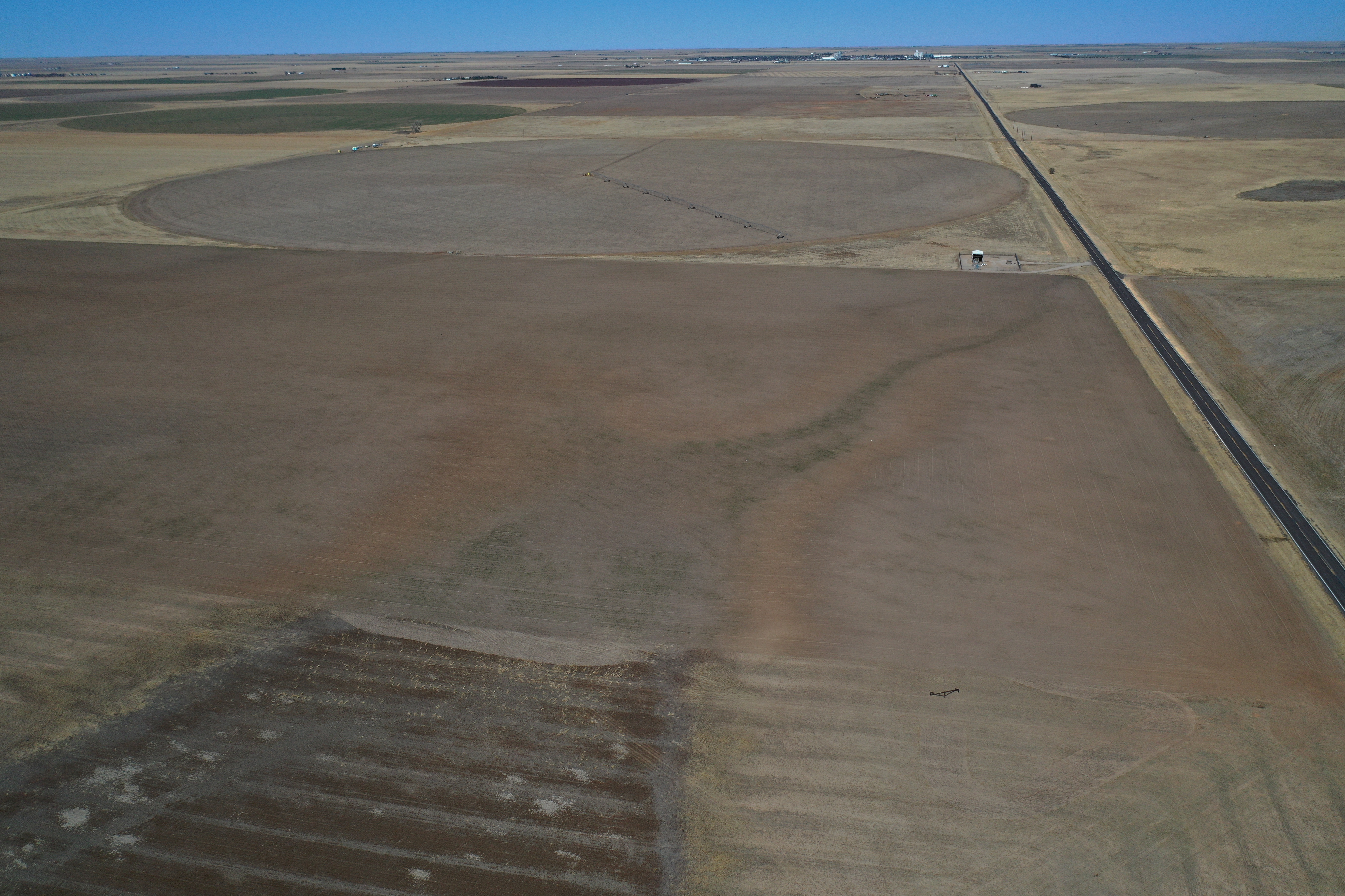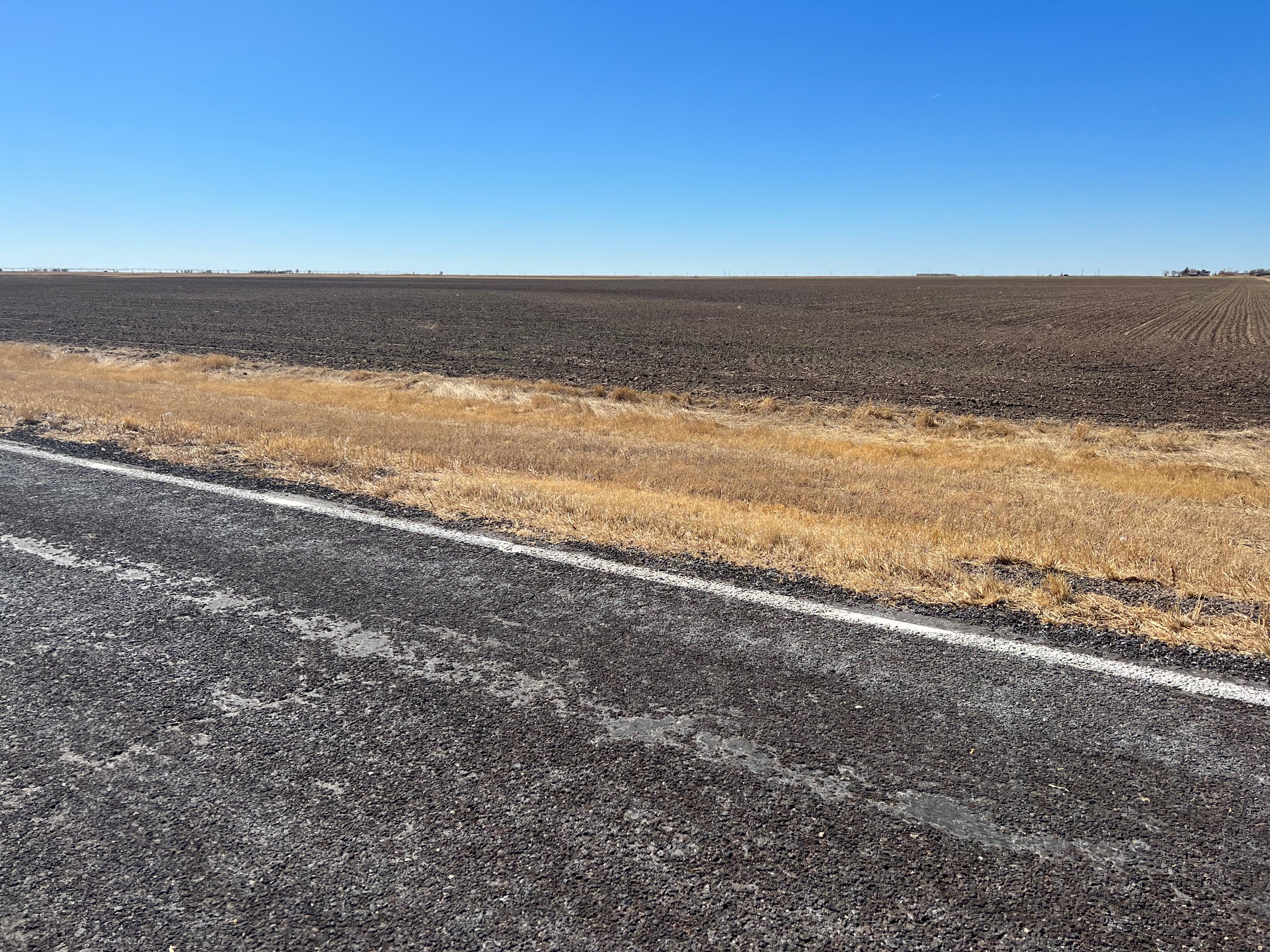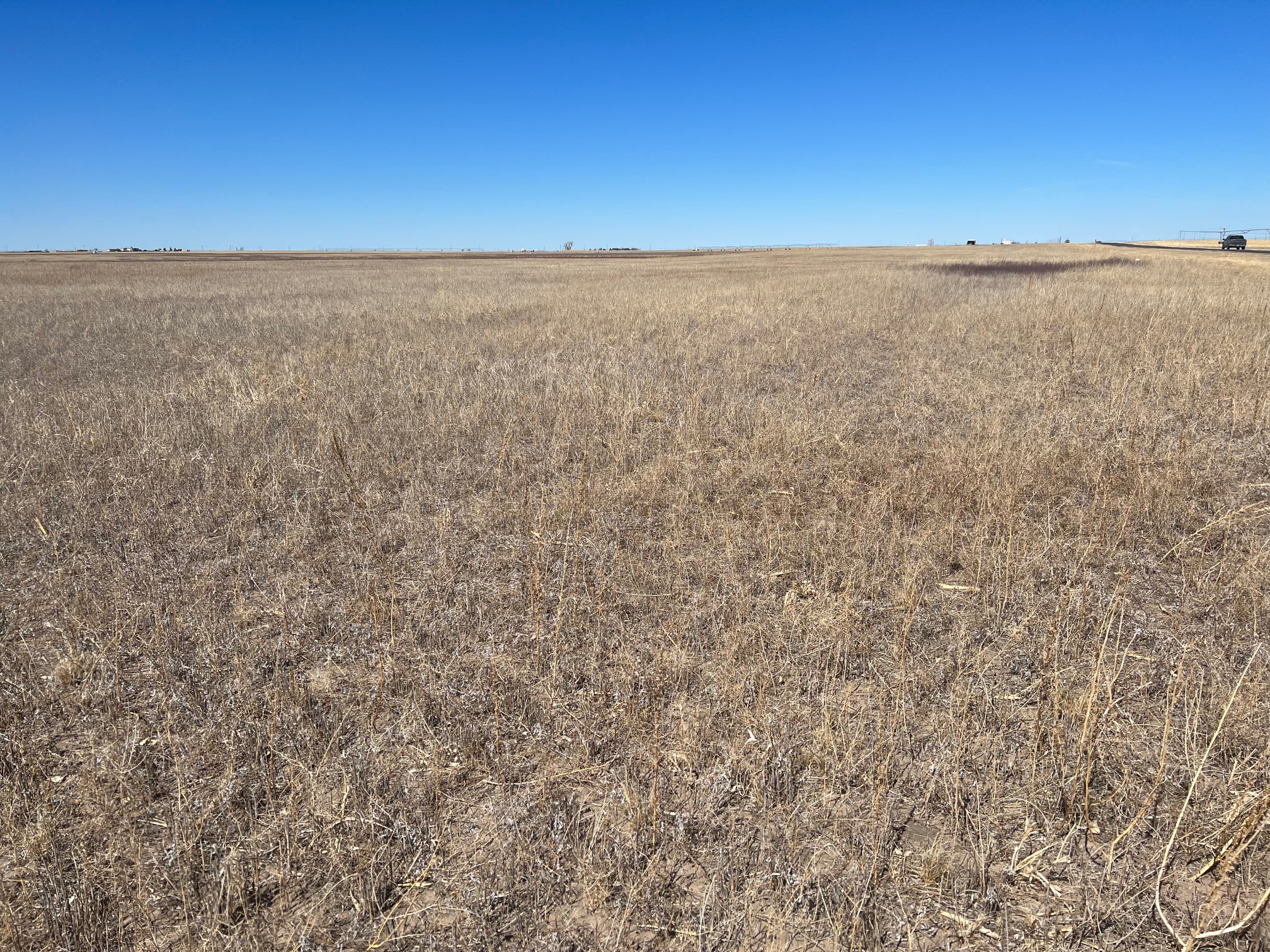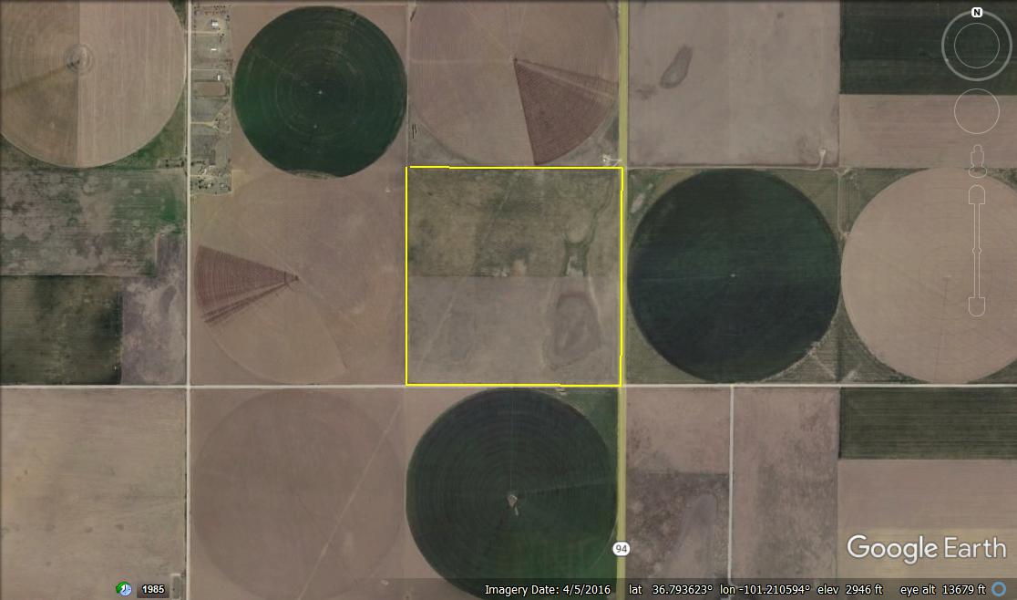 Attention Farmers! Here’s a great farm tract for sale. The tract itself is dryland, but this area is known for some big irrigation wells. This particular property has irrigation circles bordering on three sides with dozens of others nearby. Approximately 80 acres are currently planted to wheat, and the other 80 acres are fallow wheat stubble. A buyer can continue planting the dryland regiment of wheat and milo or potentially drill an irrigation well and install a pivot.