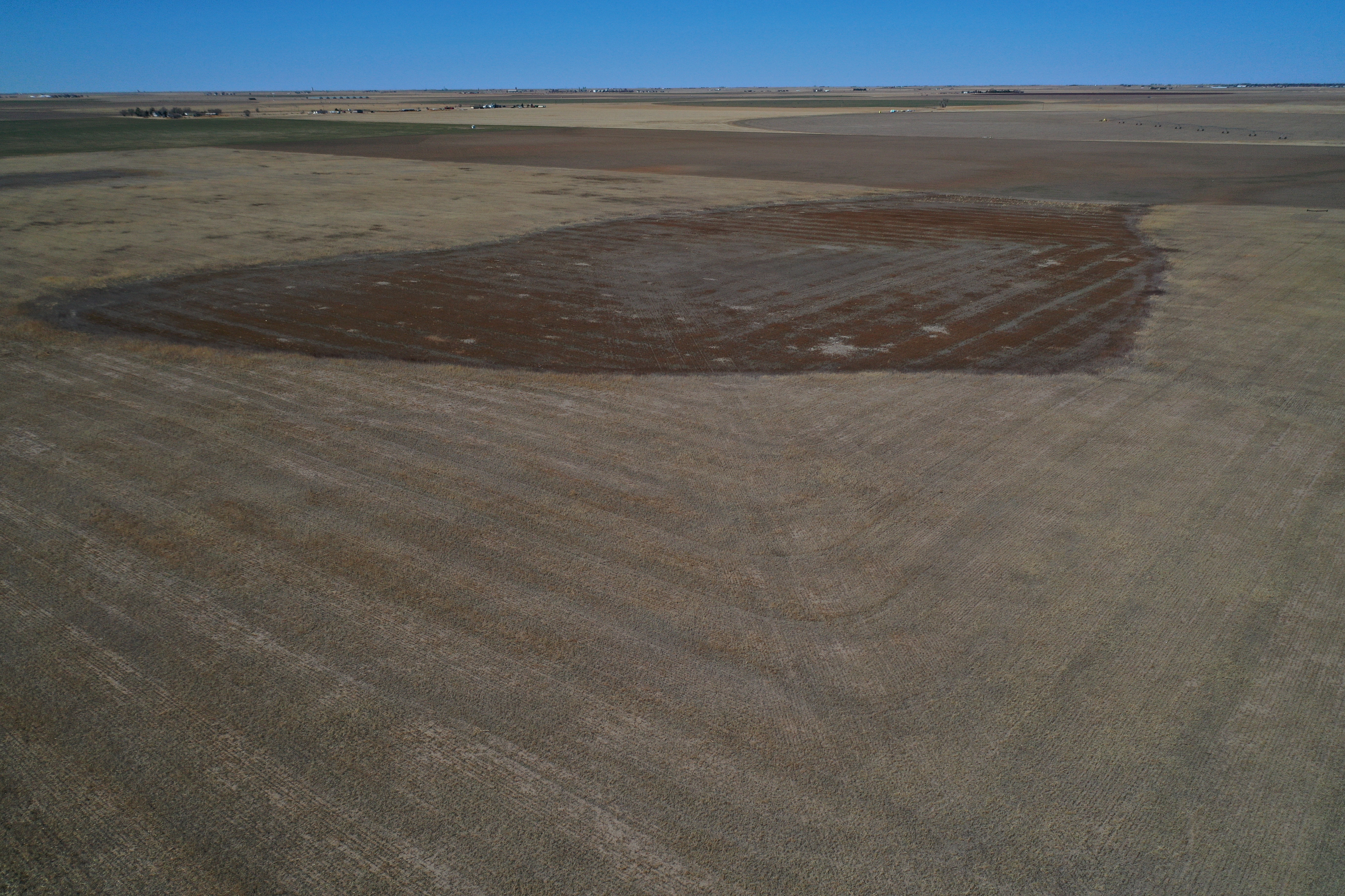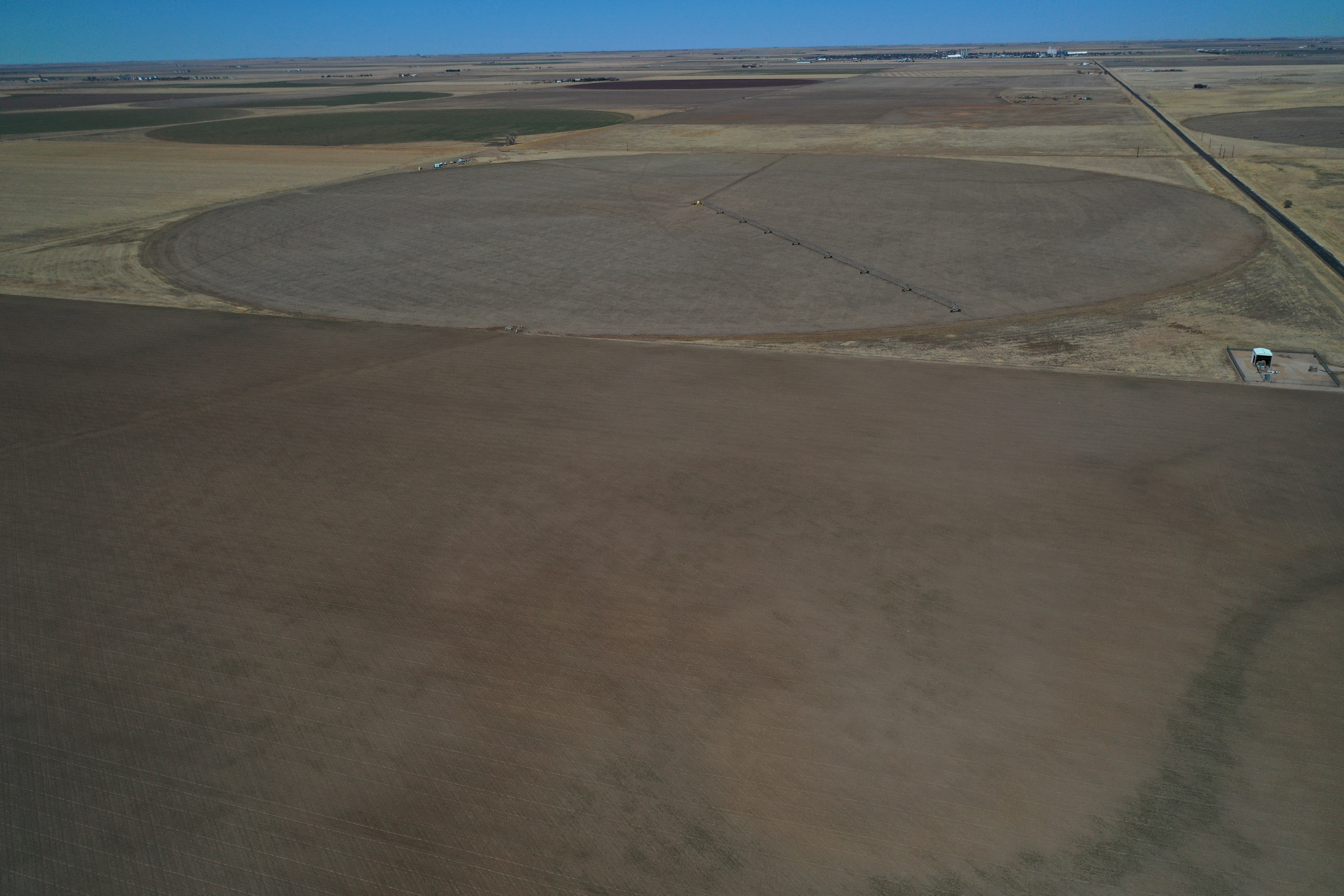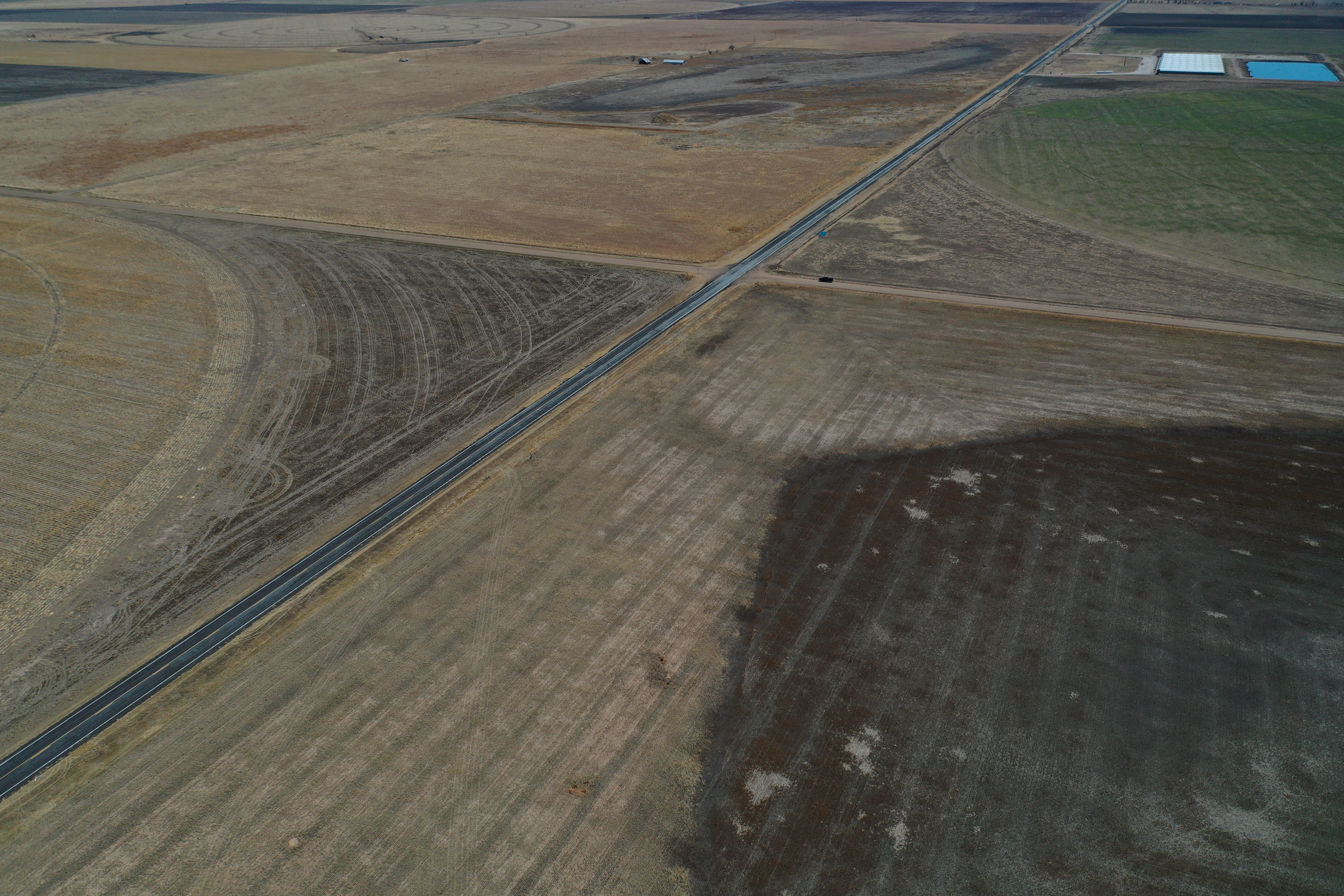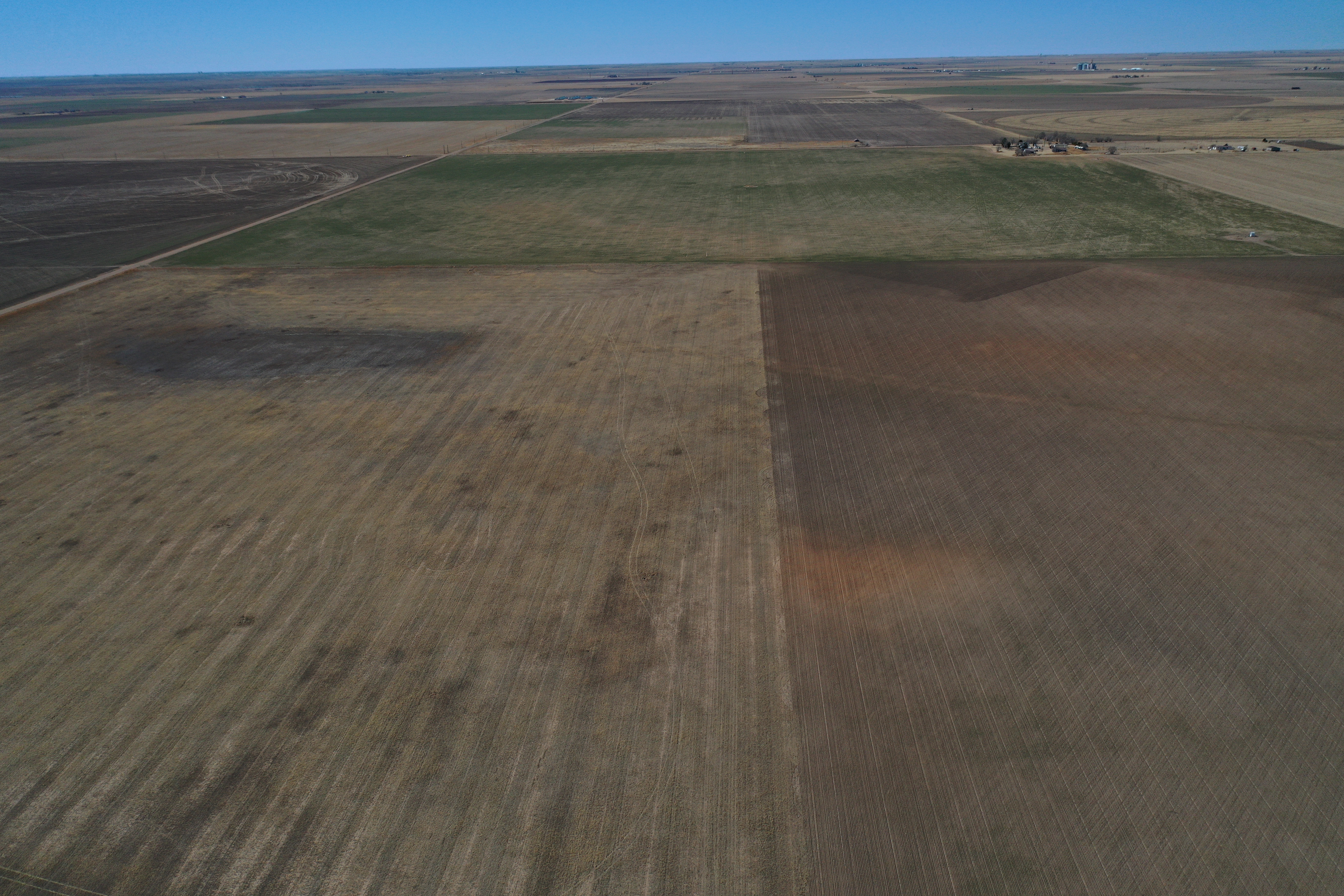 Attention Farmers! Here’s a great farm tract for sale. The tract itself is dryland, but this area is known for some big irrigation wells. This particular property has irrigation circles bordering on three sides with dozens of others nearby. Approximately 80 acres are currently planted to wheat, and the other 80 acres are fallow wheat stubble. A buyer can continue planting the dryland regiment of wheat and milo or potentially drill an irrigation well and install a pivot.