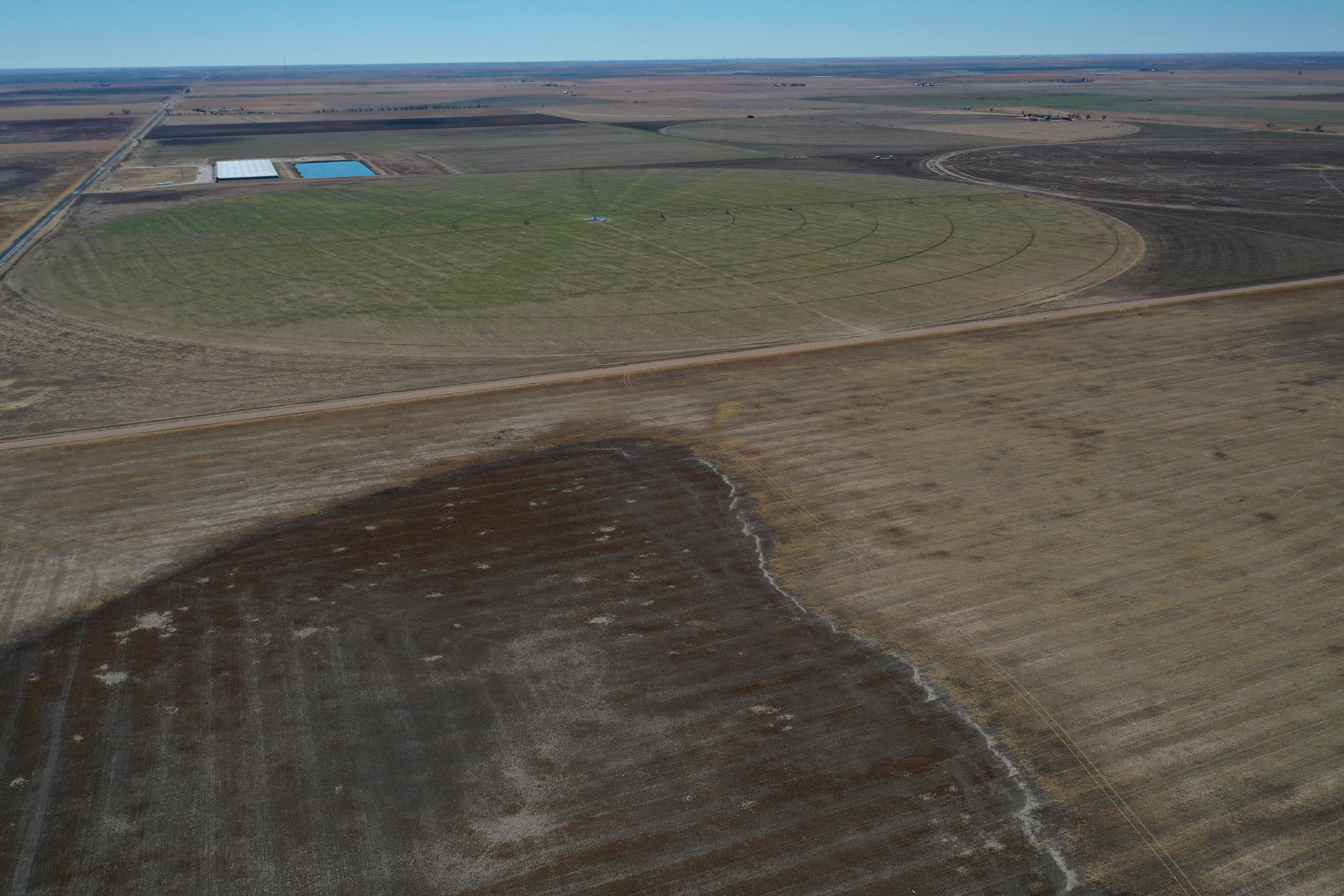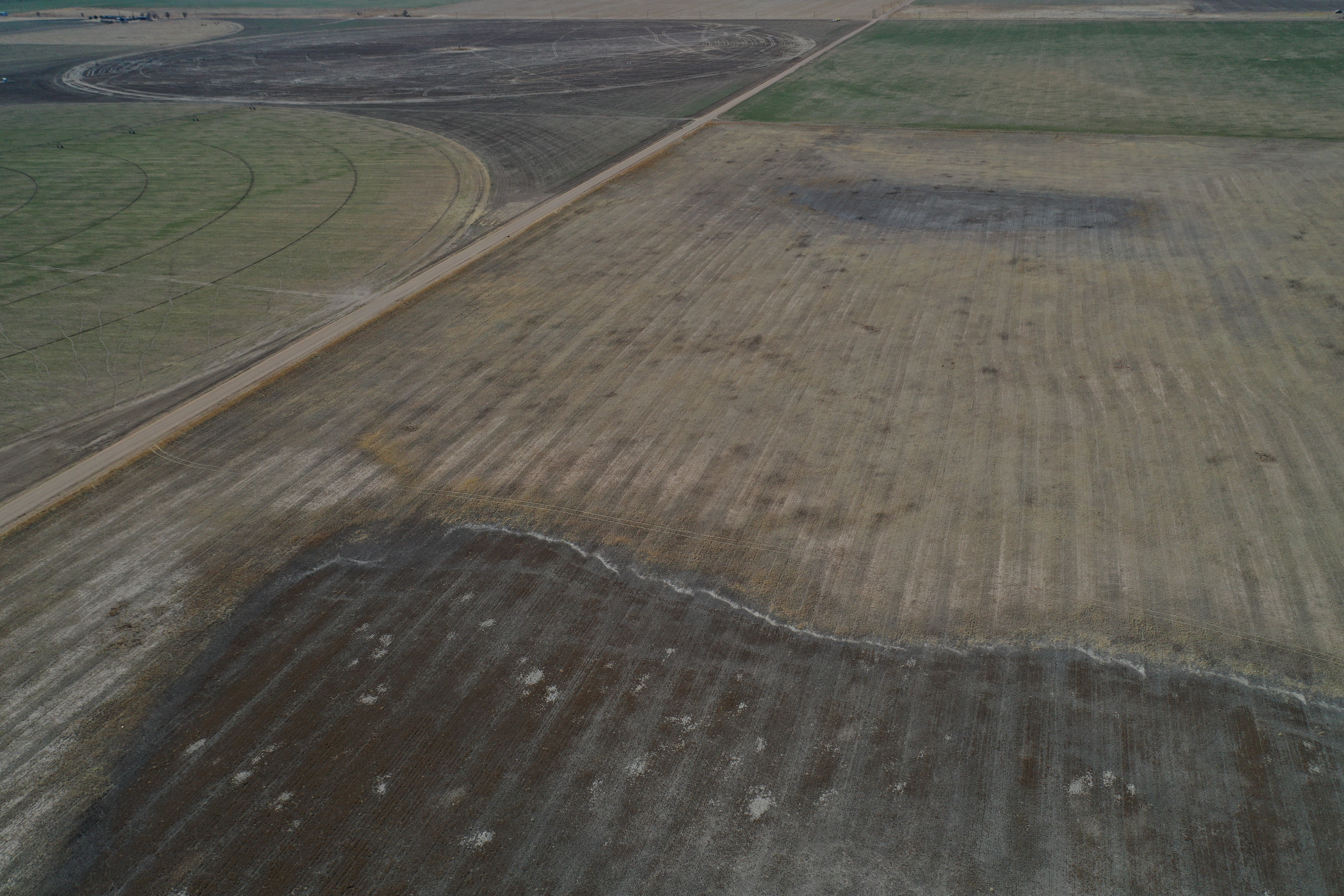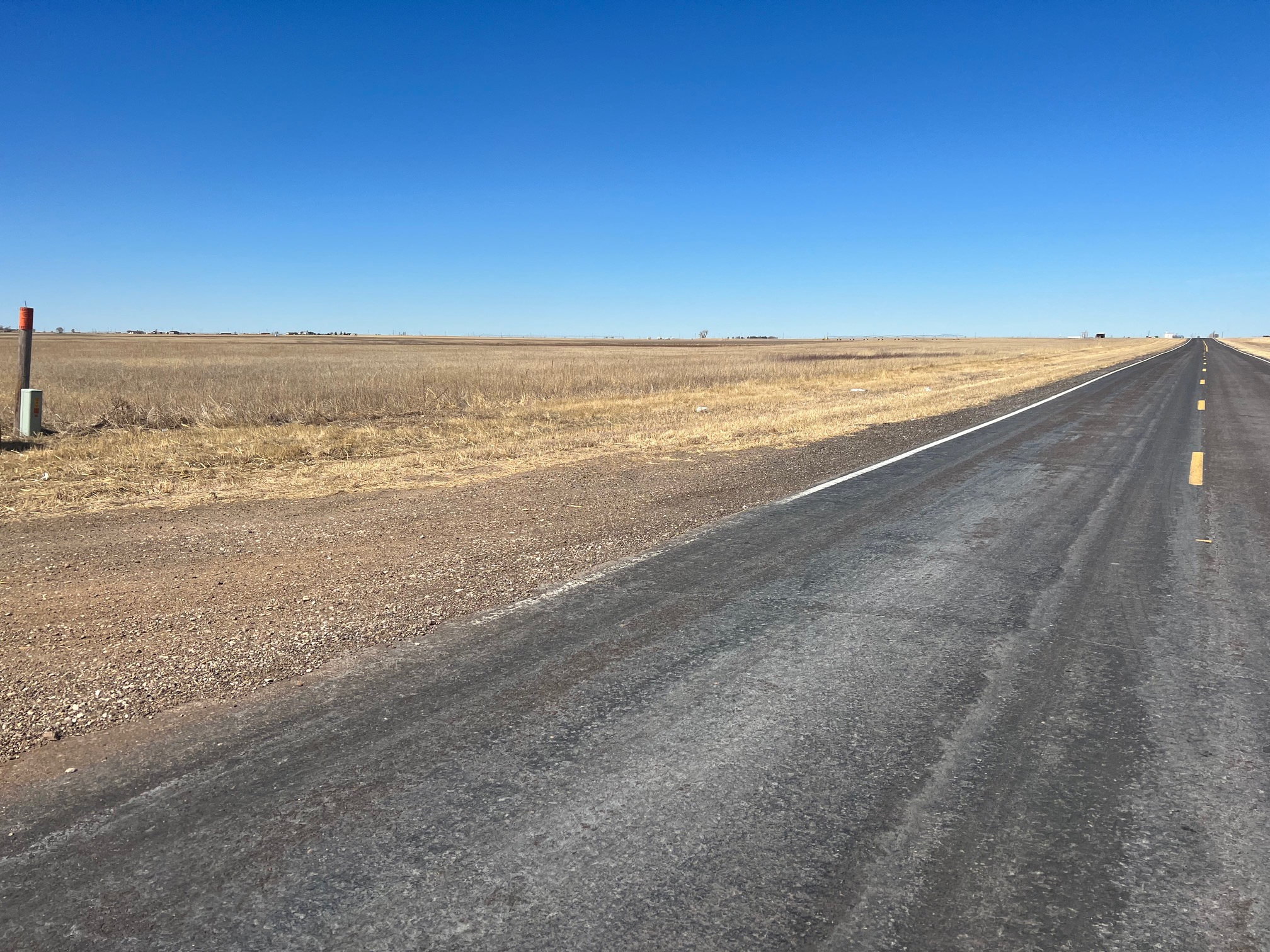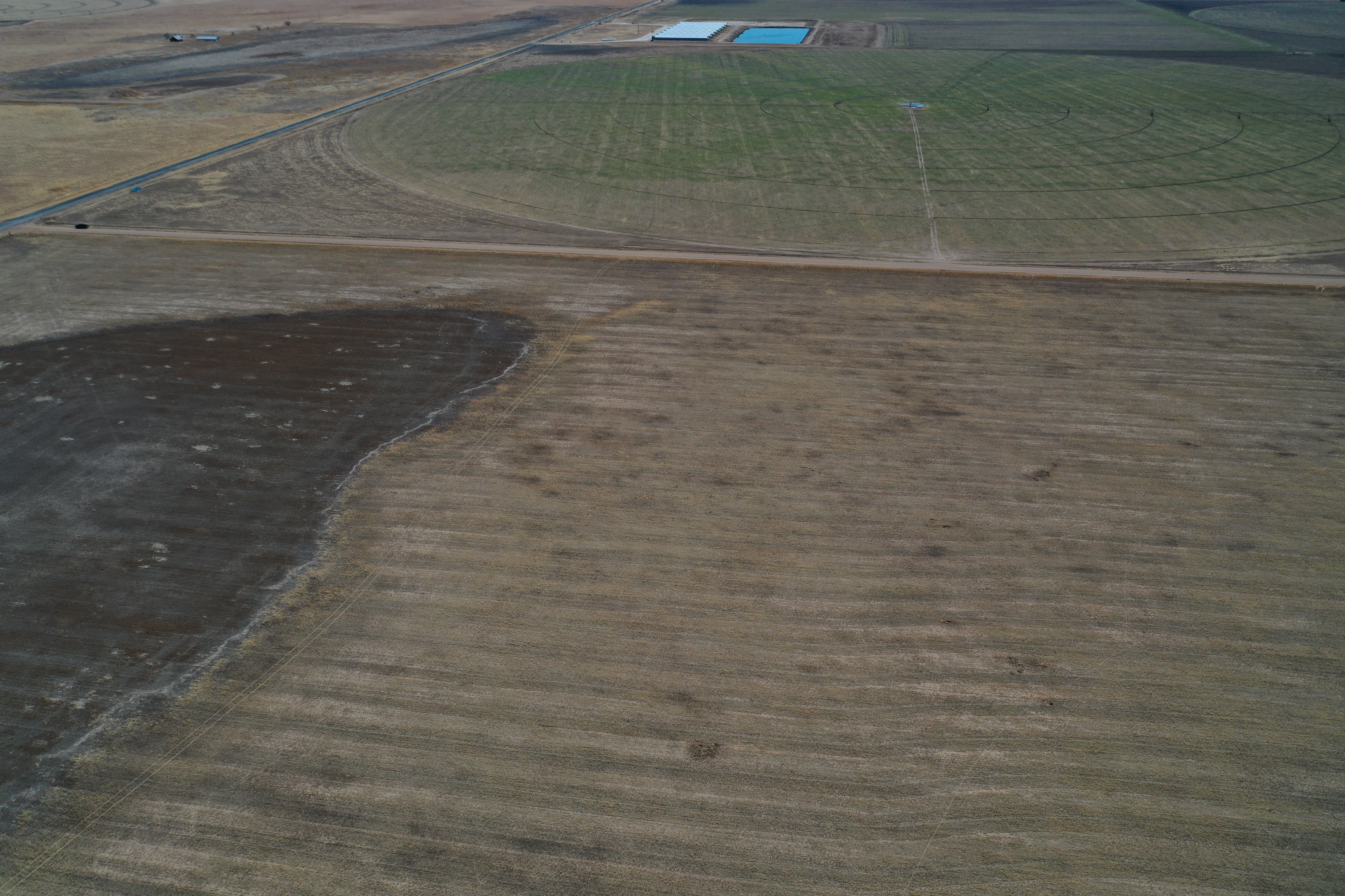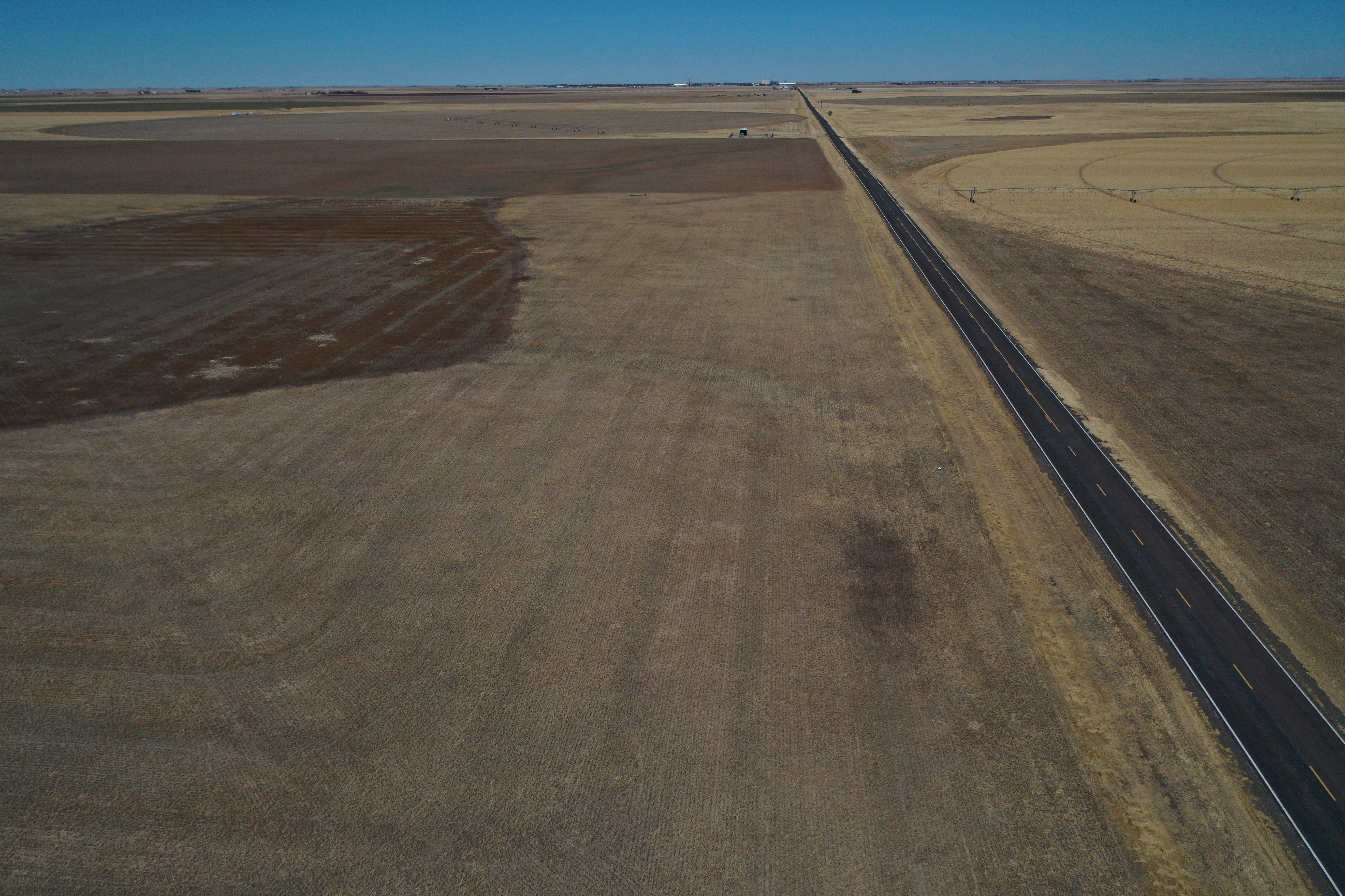 Attention Farmers! Here’s a great farm tract for sale. The tract itself is dryland, but this area is known for some big irrigation wells. This particular property has irrigation circles bordering on three sides with dozens of others nearby. Approximately 80 acres are currently planted to wheat, and the other 80 acres are fallow wheat stubble. A buyer can continue planting the dryland regiment of wheat and milo or potentially drill an irrigation well and install a pivot.