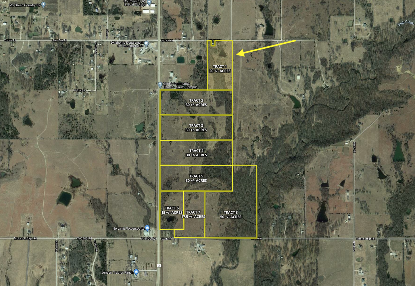 Tract 1 offers everything you could imagine when looking for a place to build your dream home on a larger acreage while still having all the amenities of town just up the street. Toward the north end of the property, you can build or have your new driveway go right by the decent-sized pond. There is also a good mix of some open ground, as well as some decent timber with a creek that may even allow for some hunting opportunities. Located right off of a paved county road, you are just seconds from Highway 75, meaning easy access to Bartlesville, Tulsa, or anywhere else you may be after. No matter what your property goals are, this appealing tract is sure to be a great option