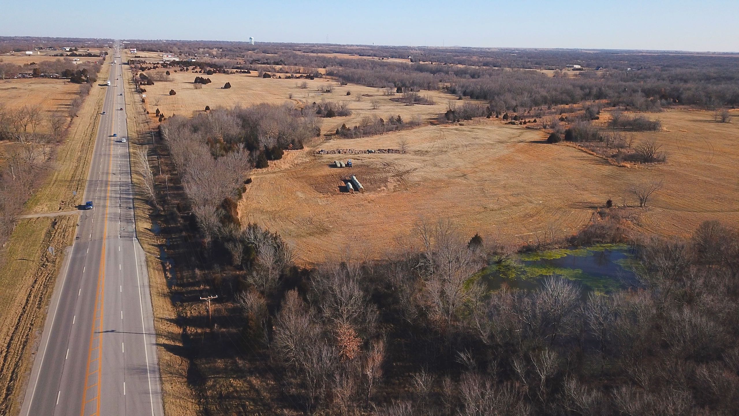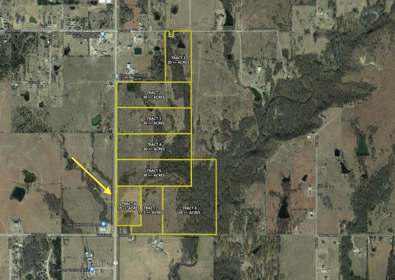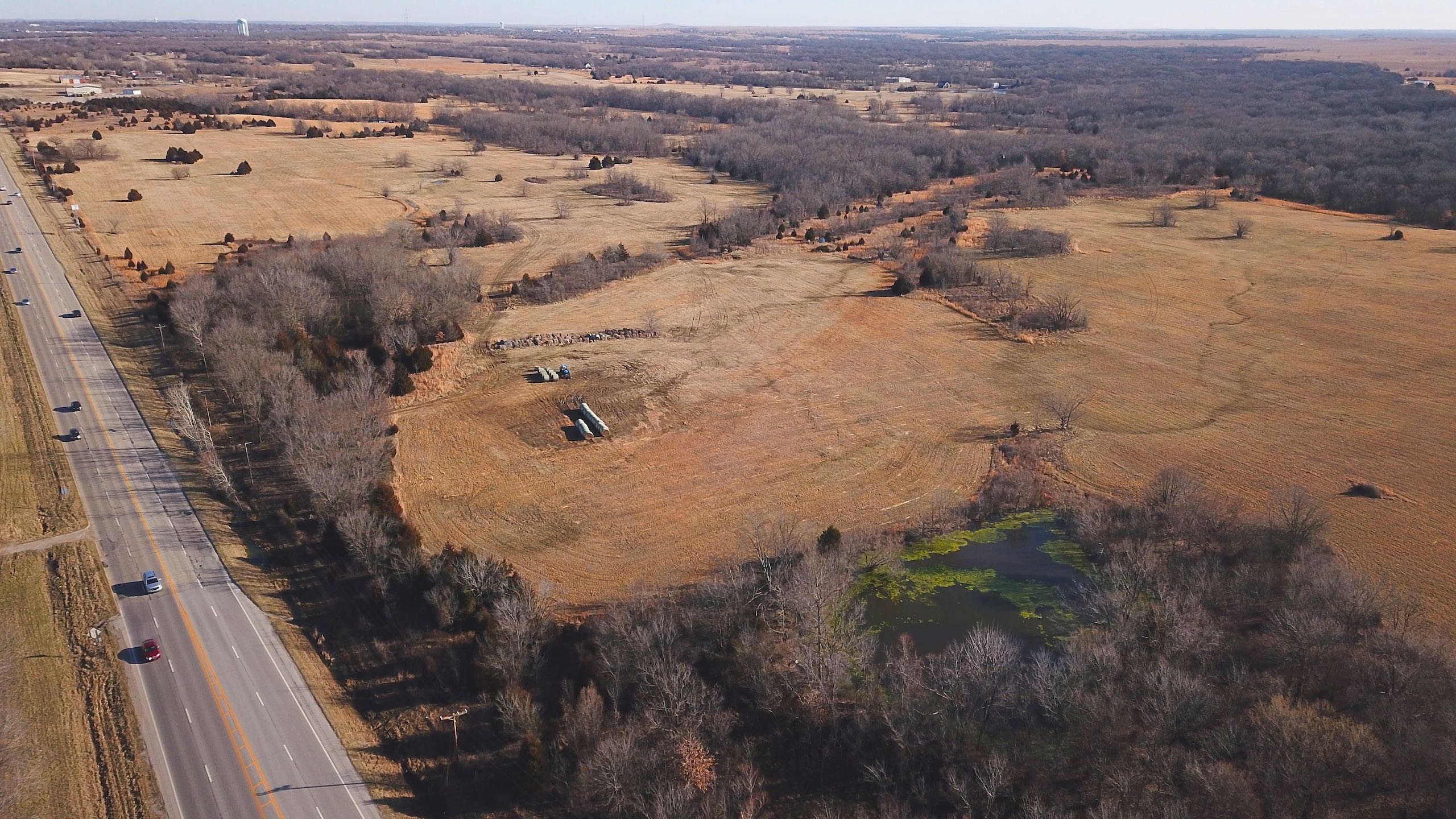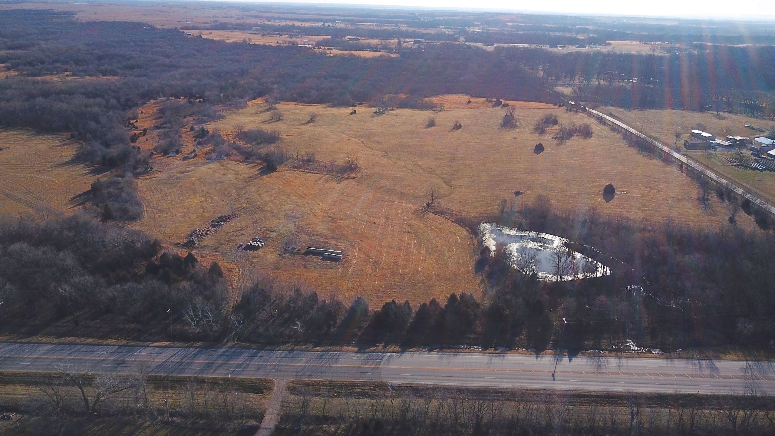 Tract 6 is the smallest of the highway frontage tracts, but it actually has the most highway frontage and still plenty of room to spread out. A good-sized pond sits on one corner of the property, and the remainder is primarily made up of cleared areas with native grass. There is approximately 1,000 feet of Highway 75 frontage on this piece which is plenty of space no matter whether you are wanting to add a new gas station, business, or simply continue using the current entrance and add this property in combination with some of the other tracts