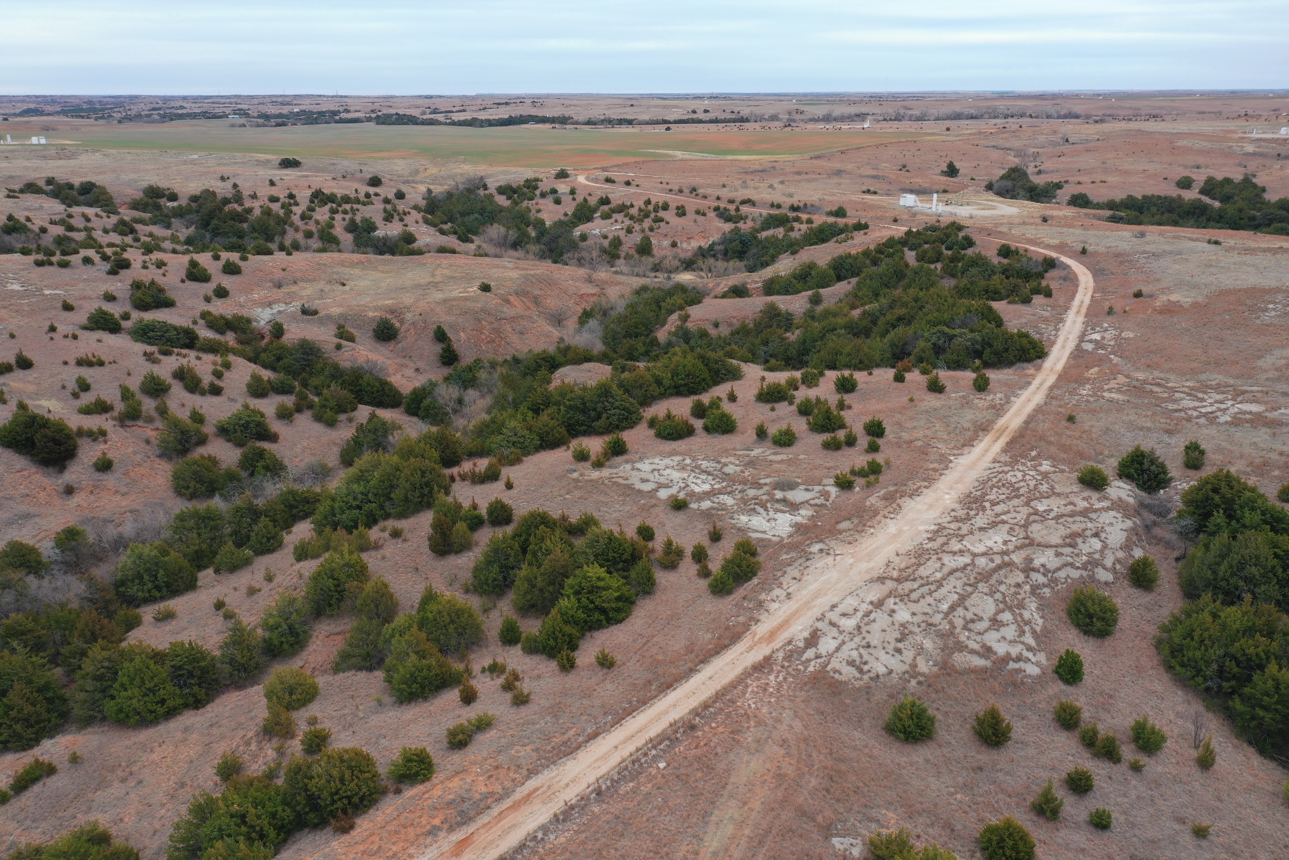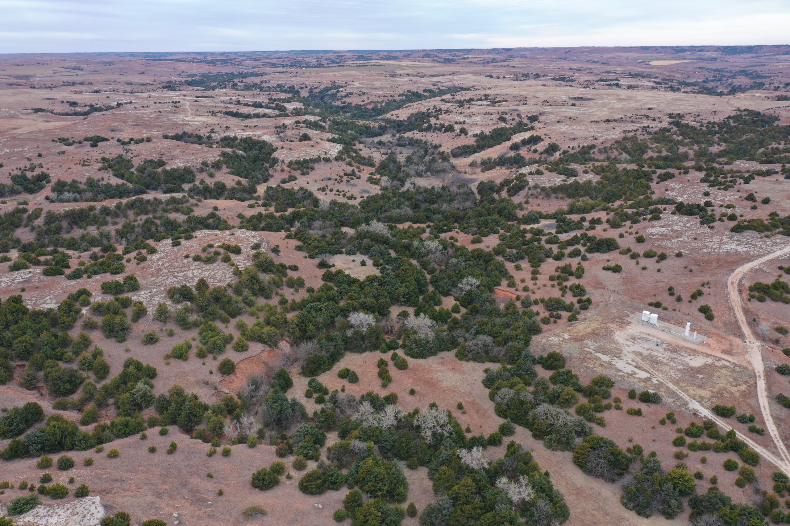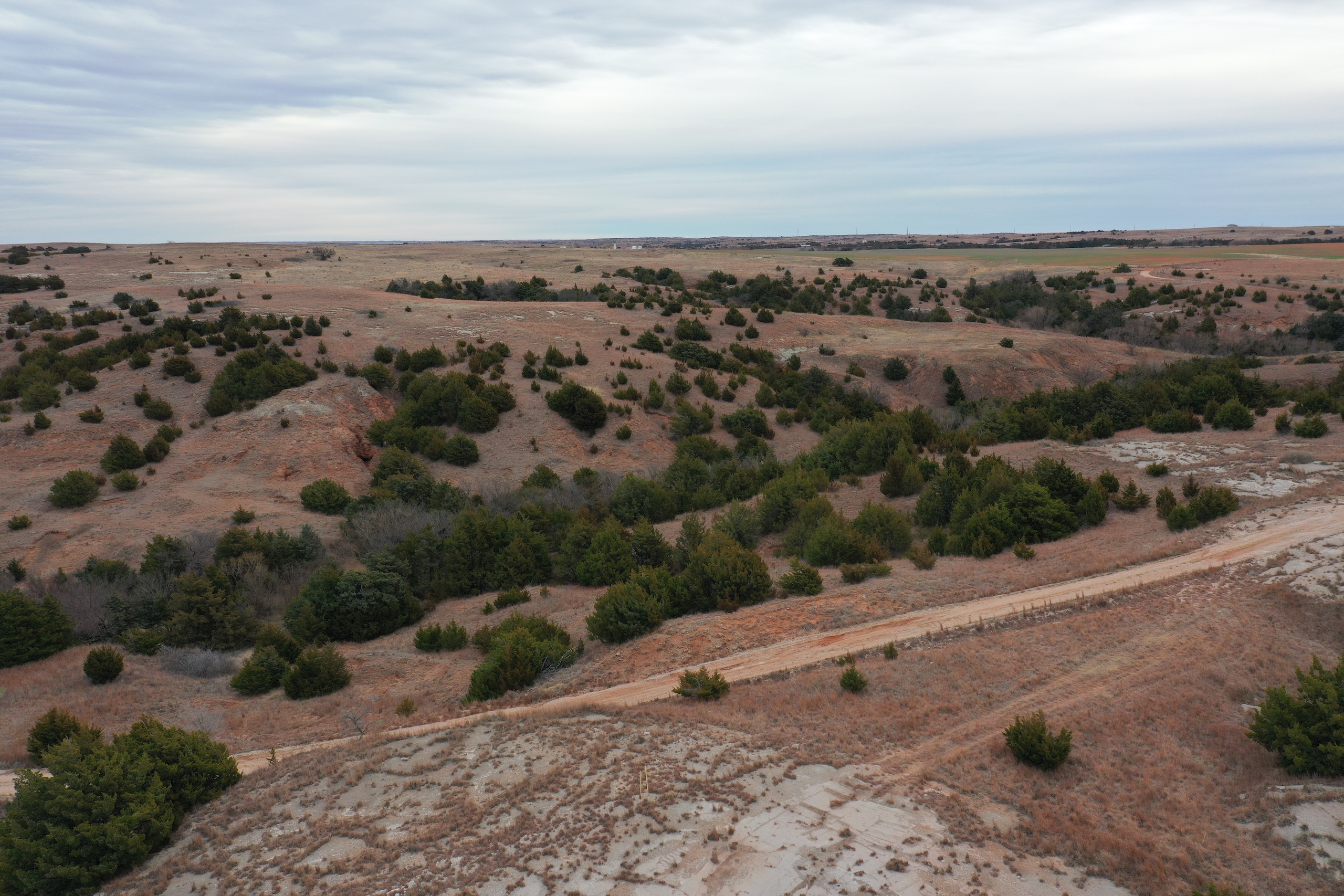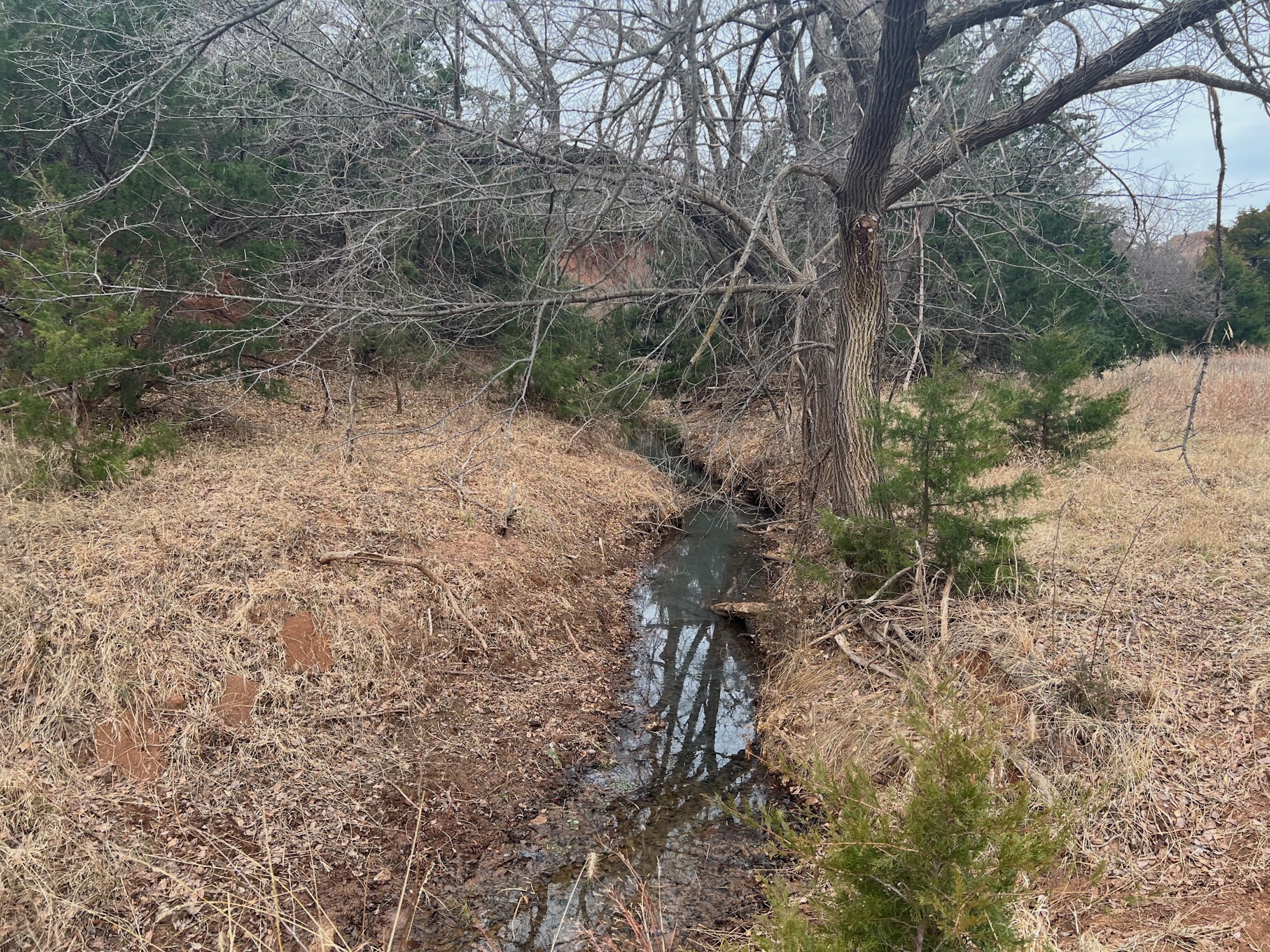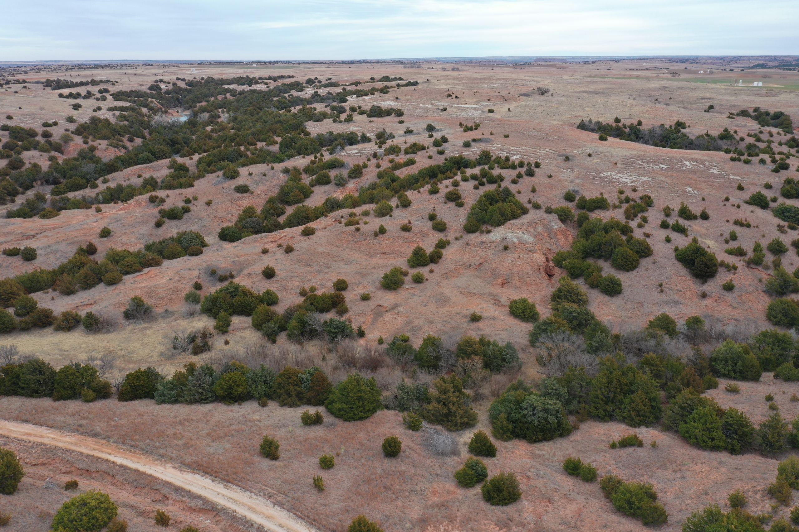 Attention whitetail hunters! Here’s a great Deer hunting property less than 5 miles from the Cimarron River! The property lies in the middle of the scenic Caprock Canyons, north of Quinlan and west of Waynoka. The area in general is well known for its great Whitetail genetics and has produced some great bucks over the years. It’s secluded at the end of a dead-end road and has great Gyp-road access. There’s also Gyp lease-roads running through the property, giving the owner great accessibility throughout the tract. The property has not recently been grazed resulting in a great bedding area. There’s a spring-influenced creek that meanders from south to north and passes just below camp. The creek has numerous pools of water, even in the dry months. It supports numerous hardwoods while serving as a corridor for the deer and turkey. Most of the ranch’s cover consists of cedar trees, hardwoods, plum thickets, and tall native grasses. There will also be some great turkey hunting here. One of the highlights of the property is a fishing pond near the camp area where the owner has caught some big largemouth bass. Near the pond is a corral area with a lean-to and shed. There’s electric and water here. All of these features offer an owner the perfect spot to set up a hunting camp. Being only 100yds from the pond, it also makes a great place to relax in the summer while you take the kids fishing! It would also be the perfect spot for a remote/secluded hunting cabin. Don’t hesitate to contact Steve to look at this great property or if you have any questions. (580) 571-7305