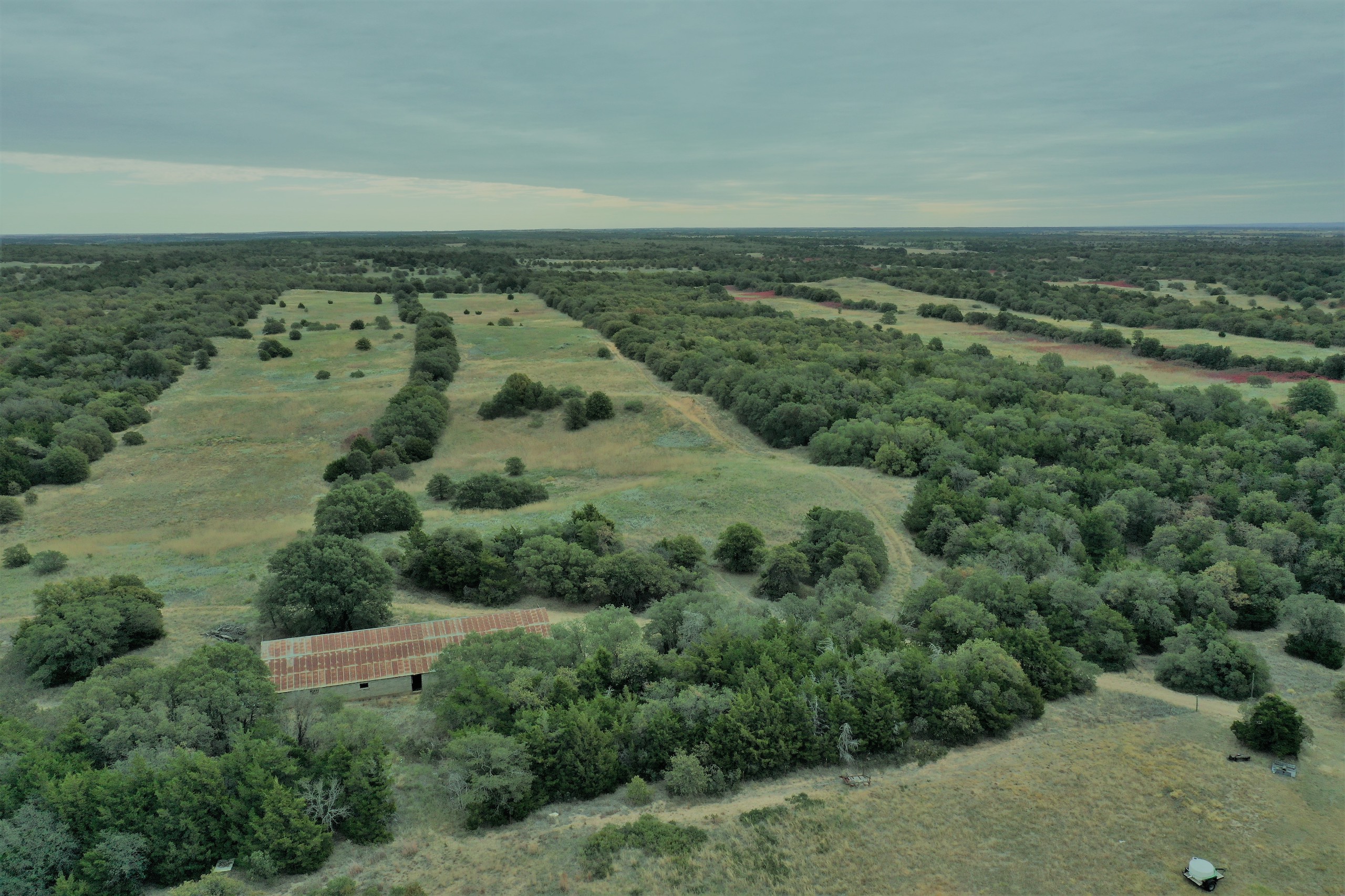Attention Hunters!! All-inclusive, turn-key hunting tract for sale! This beautiful property lies one mile south of Cedardale and only 3 miles from Hwy 281. There’s a very nice, furnished trailer house on site. The trailer house is 3BD, 2BTH. It’s in a perfect location for hunting camp, being completely secluded, but only 100yds from the county road. The water well also supplies a small pond in front of camp, providing year-round water for the deer and turkey. There’s a large cinder-block barn currently used to store equipment, machinery, UTVs, etc.