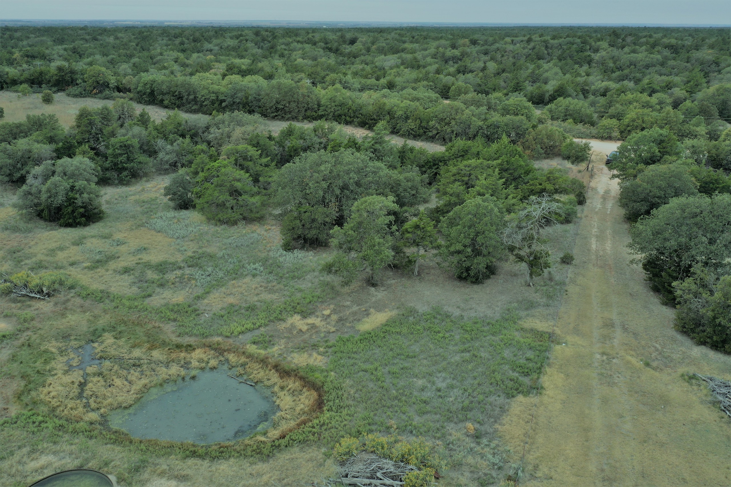 The terrain is thick and woolly. It’s slightly rolling with great cover and has been well-managed. Blackjack Oak, Shin Oak, Cedars, Plum Thickets, and Sumac are scattered throughout. All offering great bedding cover. The property has stands, feeders, and food plot locations. Excellent hunting property and full of deer and turkey! Don’t hesitate to call Steve to look at this great tract!