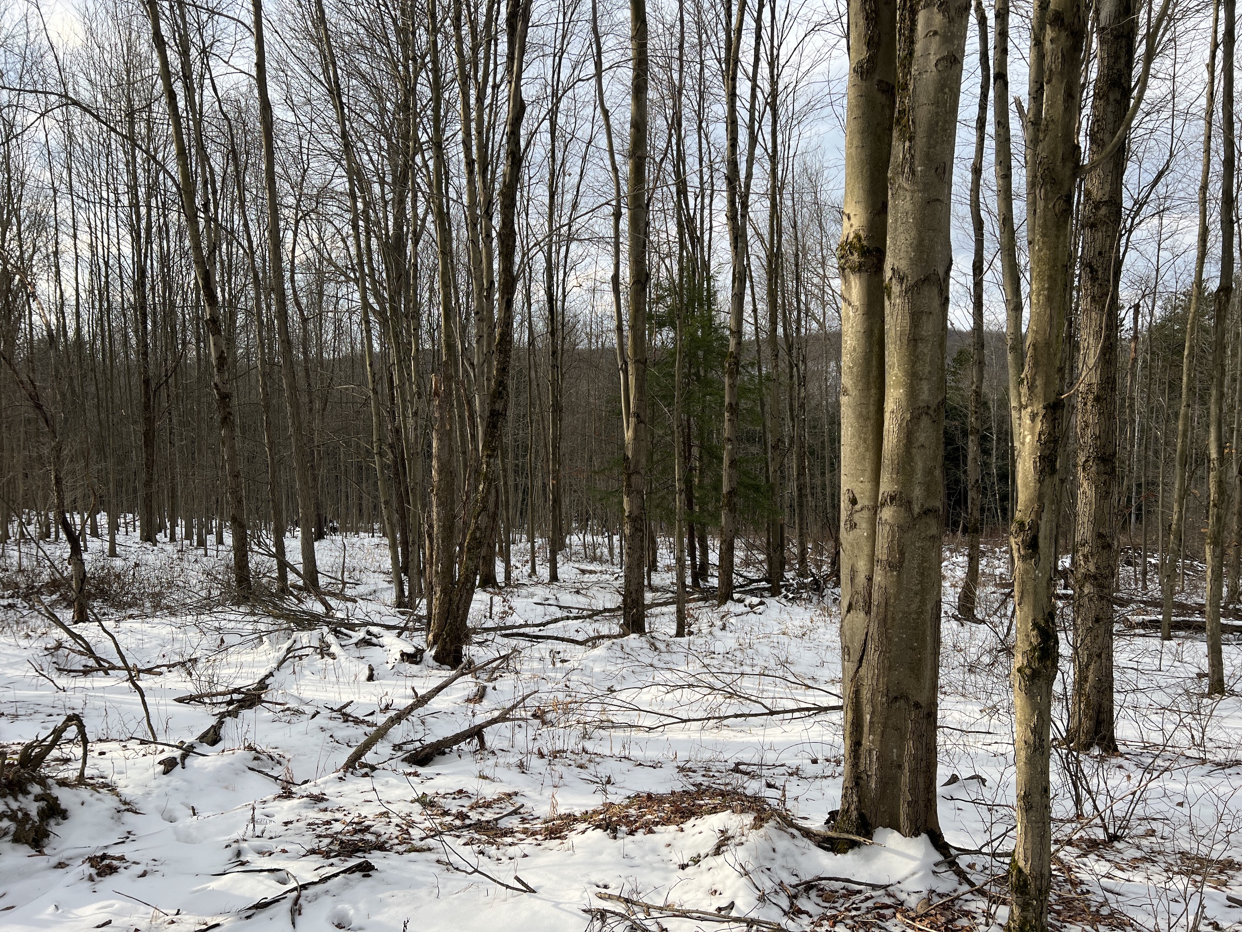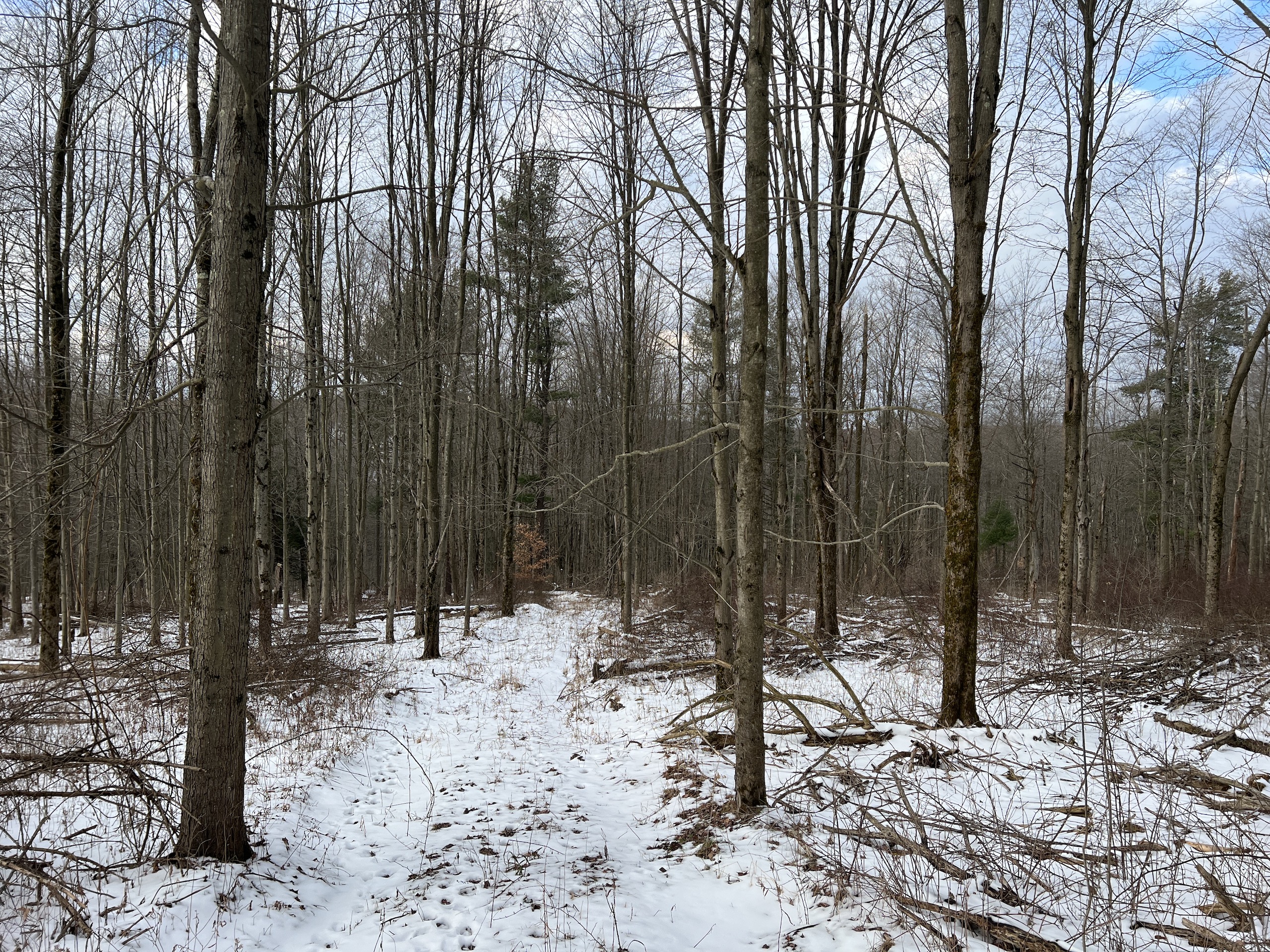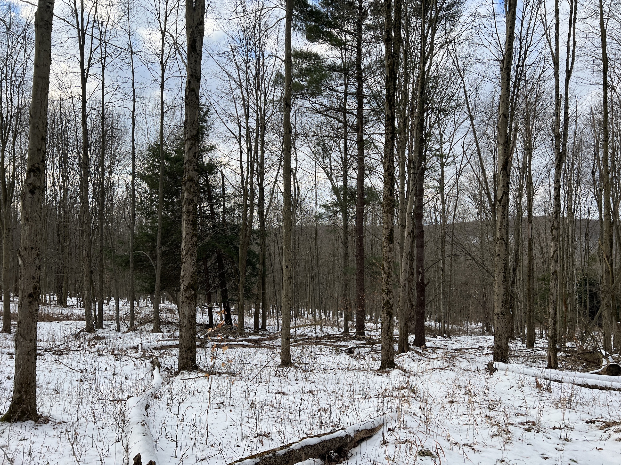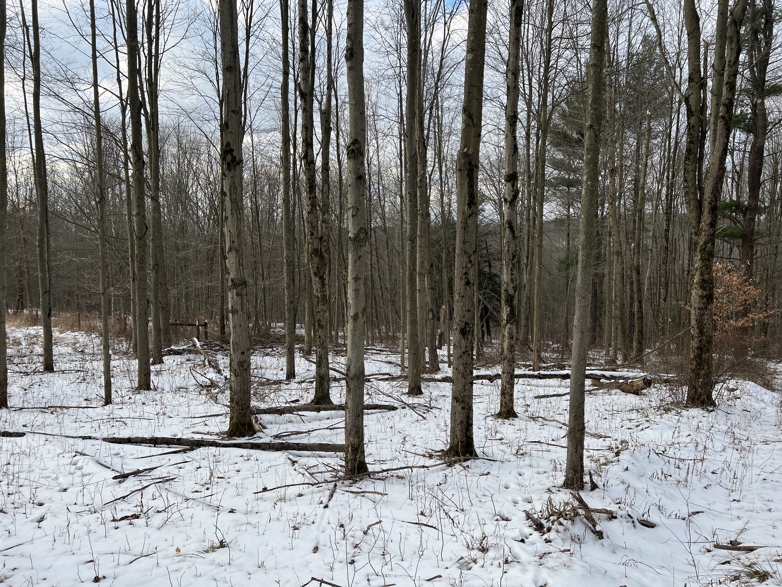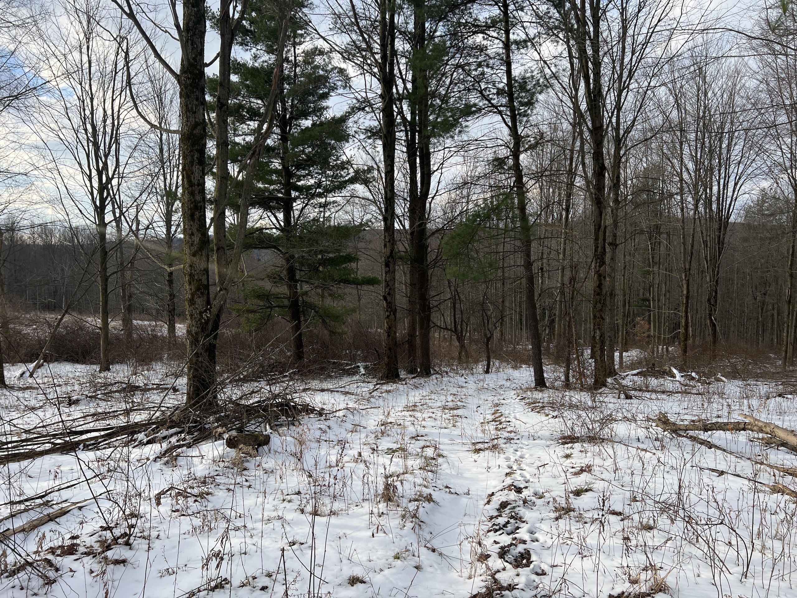 This is a very attractive hunting parcel that has nice building potential. Near the road, the frontage is an old homestead location that could be an excellent place to build your home or cabin. The building locations could offer amazing views of the neighboring valley and ridgeline with some minor clearing. The terrain is moderately sloping from the road frontage toward the rear of the parcel. There is a nice trail system that allows for easy access around the property. The overstory consists of a nice mix of young hardwoods and scattered white pines. Near the bottom of the property is a nice stand of hemlocks that provides great thermal cover for the deer. There are areas of thick underbrush that deliver excellent habitat and cover for wildlife. A nice permanent deer blind is in a place overlooking some heavily used deer trails near the middle of the property. The neighboring crop fields are a draw for the deer and the property appears to be a natural funnel from the big woods to the west. The oil, gas and mineral rights have been previously reserved and do not convey to the buyer. No testing has been done for the well or septic. If this sounds like the property you have been dreaming of, contact the listing agent for more details or schedule your personal tour!