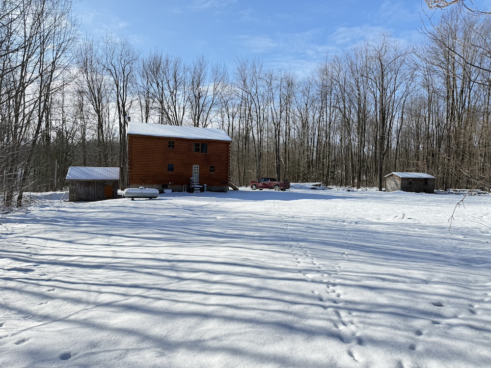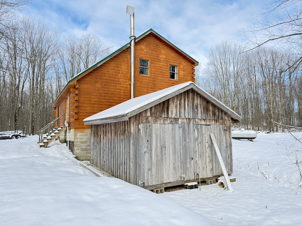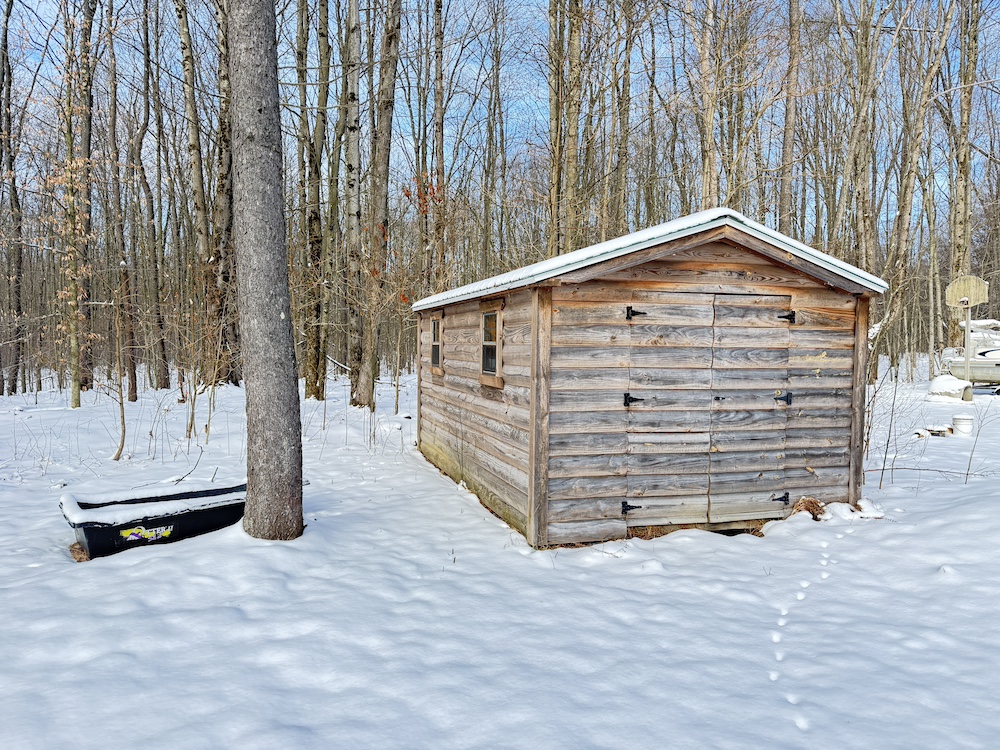 Outside, the property offers a large backyard with plenty of room for gatherings or outdoor projects. Two storage sheds provide additional space to store your property equipment or hunting equipment. The wooded acreage is a mix of young hardwoods, primarily soft maple and cherry, with scattered hemlocks that provide excellent thermal cover. The property shows strong signs of quality deer habitat, with multiple well-used trails throughout, making it well-suited for hunting and recreation. The terrain is mostly flat to slightly sloping with a nice trail system.