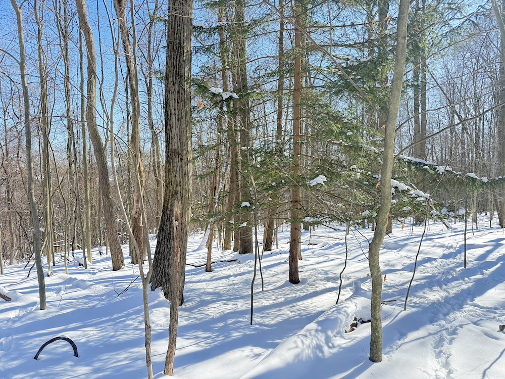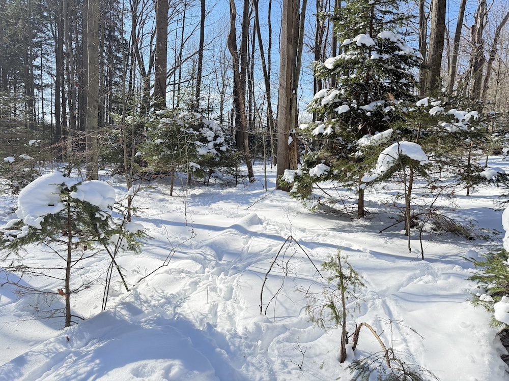 - Young hemlocks providing year-round greenery