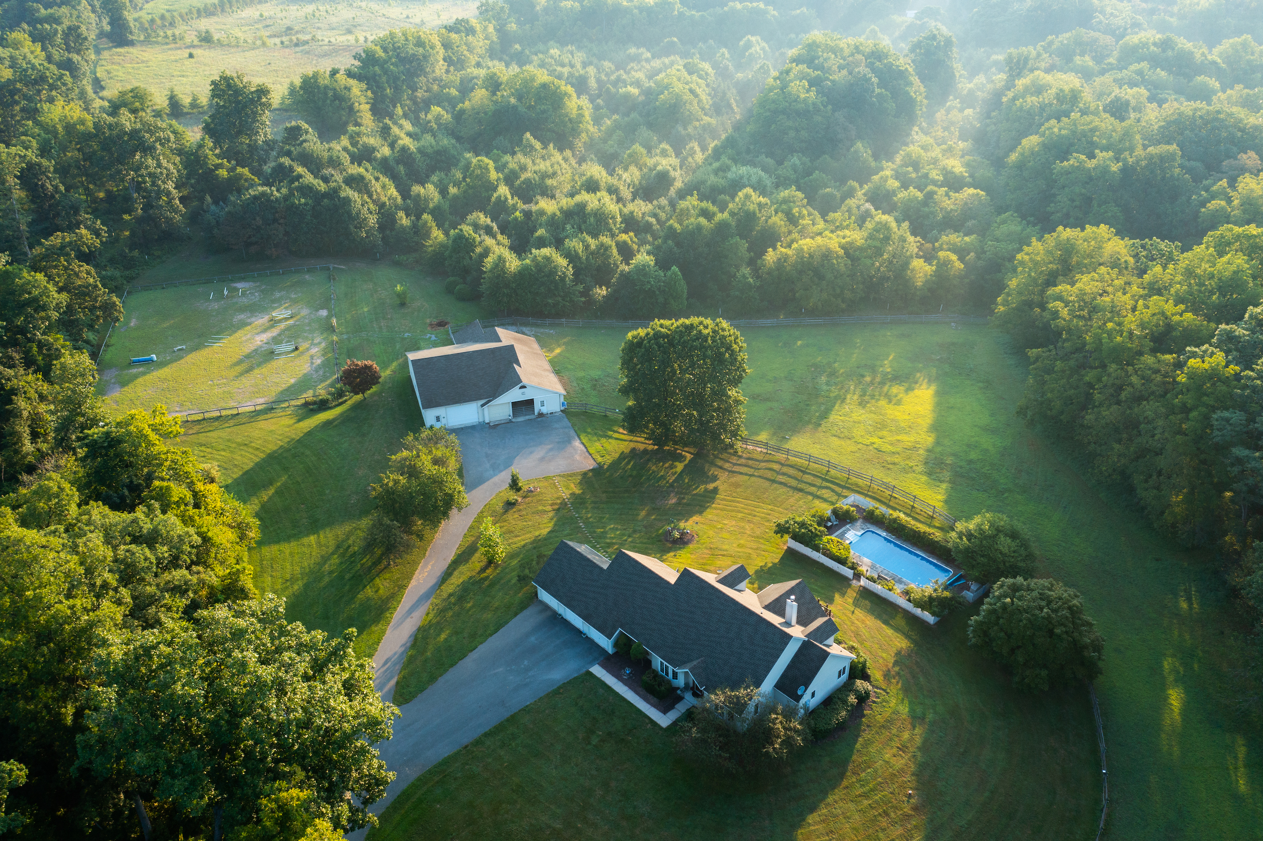 You'll love this 3 bedroom. 2.5 bath, custom home on 48.4 acres in Carlisle, PA! This home has everything from beautiful panoramic views to the vaulted living room ceilings with the overlooking hallway. The rear porch faces East, overlooking the in-ground swimming pool and wooden fenced-in horse pasture, providing a quiet place to enjoy your morning coffee and watch the sunrise. The home features extra closet space in each bedroom, a large master bathroom, and a 3-car garage. There is no shortage of storage as the house sits on an ever-so-large unfinished basement and has a walk-in attic. Cross the large backyard to the 6-stall horse barn that has a heated tack room, wash bay and office and you'll see the outdoor horse arena, 8+ acres of fenced-in pasture with an outdoor run-in shelter and over 2.6 miles of riding trails and jumps. Attached to the barn is a 1440 sq. ft. shop with 12 ft. drive-through doors that provides plenty of room for oversized trailers, campers and equipment. Along the nature trails are several site locations showcasing different forest growth stages, various types of grass, flowers and more. There is even a Forest Bathing site for deep reflection and absorption of nature's sounds. And because this is an ATFS-certified tree farm, oak trees roam the property providing plenty of native food sources for deer, turkey, and other small game to thrive. This property and others nearby are protected by a Conservation Easement to prevent future subdivisions and ensure nature is conserved. This nature lover's paradise is found just 10 minutes from the heart of Carlisle and less than 30 minutes to the state's capital, with quick access on and off Interstate-81 and the I-76 turnpike. Down the tree-lined blacktop driveway and across the road you are just walking distance to the local Cumberland Golf Course. From the driveway sensor and home alarm system to the new pool liner, roof, water heater, front door, and garage entrance door; this home has been meticulously maintained with many recent improvements. The well water was last tested in January 2022, the septic was last cleaned and tested in 2020, and the geothermal heating system was last serviced in February 2022. You can be confident that this home is ready to live in, worry-free, just awaiting your arrival. If you have been looking for an incredible home with lots of land to fulfill your country dreams, look no further! This is it!