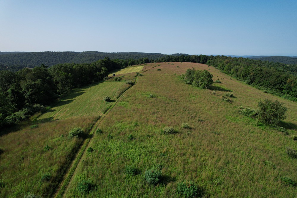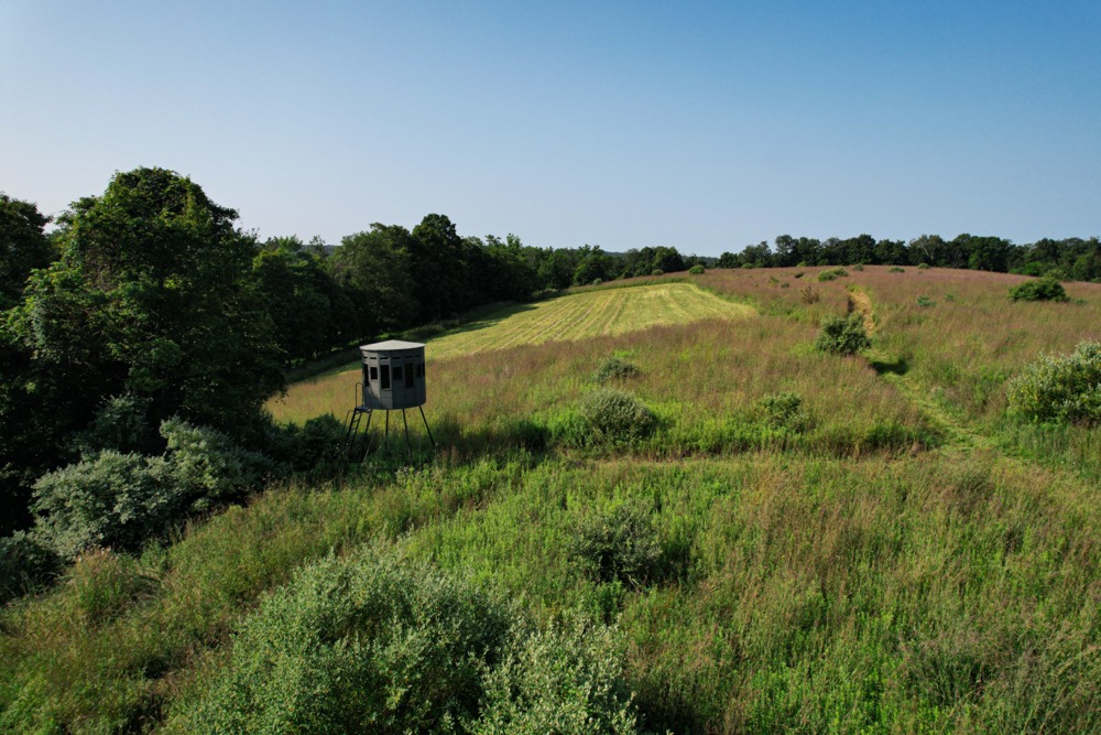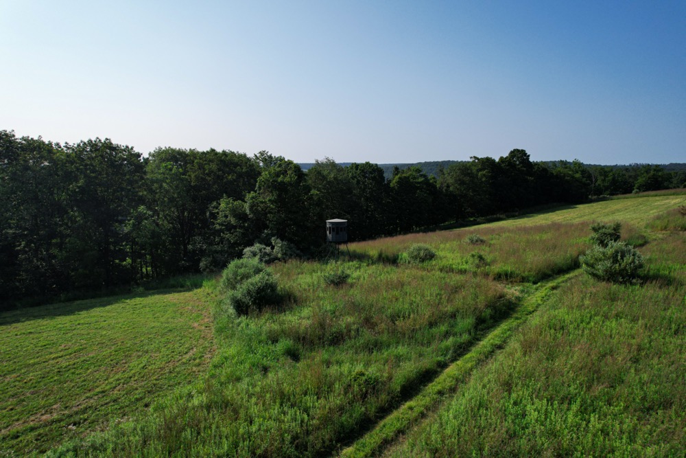 For hunters, this land is a dream come true. Nearly the entire property has been enrolled in CRP for well over a decade, meticulously maintained to create exceptional habitat for deer and turkey. The CRP fields stand over six feet tall, providing unmatched cover that allows wildlife to move confidently throughout the day. Two strategically placed food plots, totaling over two acres, draw deer consistently, while a 360-degree hunting blind sits in the ideal location between the plots and above a 700-gallon Guzzler water tank. The surrounding neighborhood is known for its quality deer management, with bordering properties to the east seeing little to no hunting pressure and those to the northwest managed for mature bucks. Harvest history here confirms the strong age class of deer in the area.