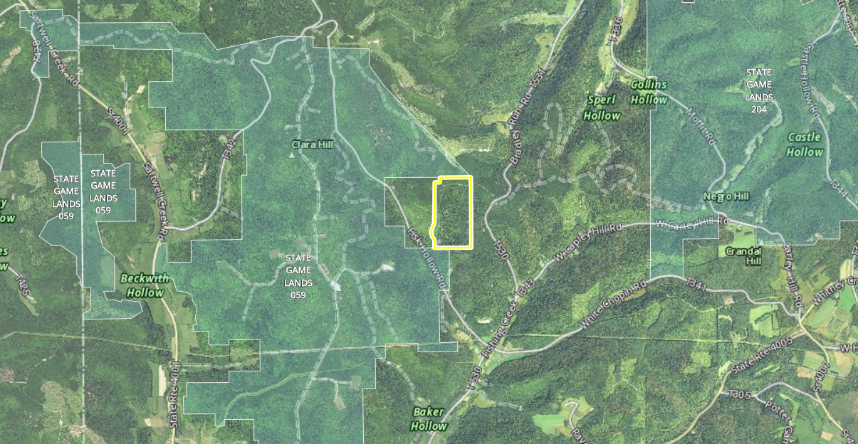 - Adjoins State Game Lands 59 which consists of approximately 6,200 acres of public ground