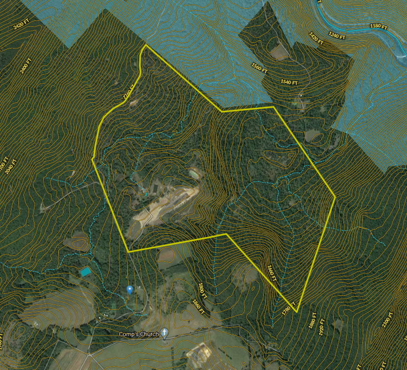 - Several small streams crisscross the property
