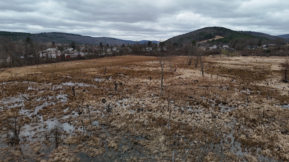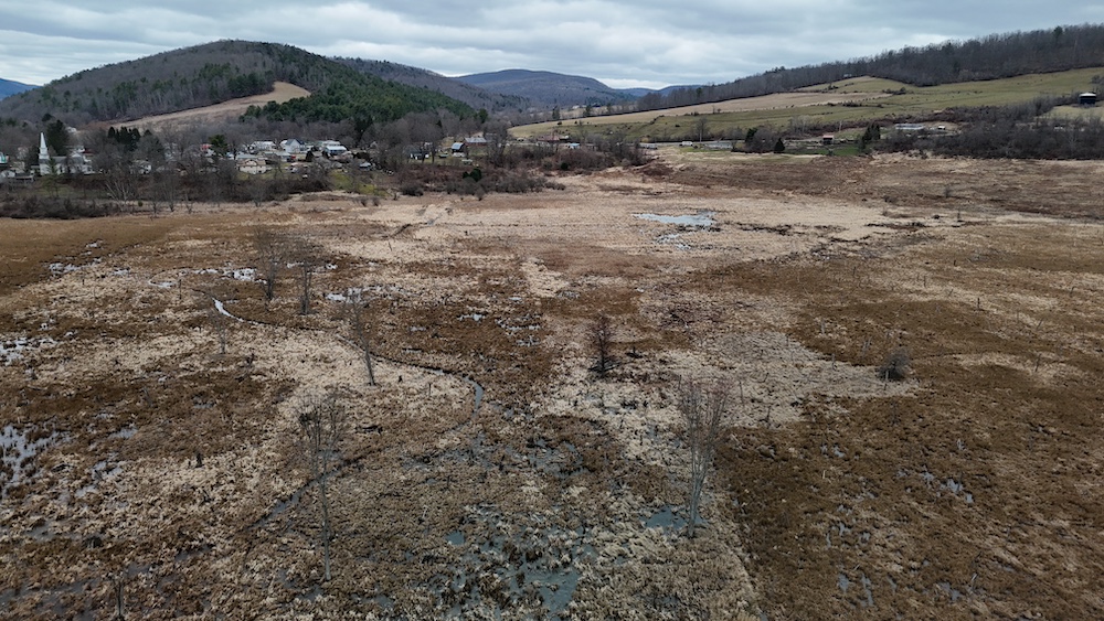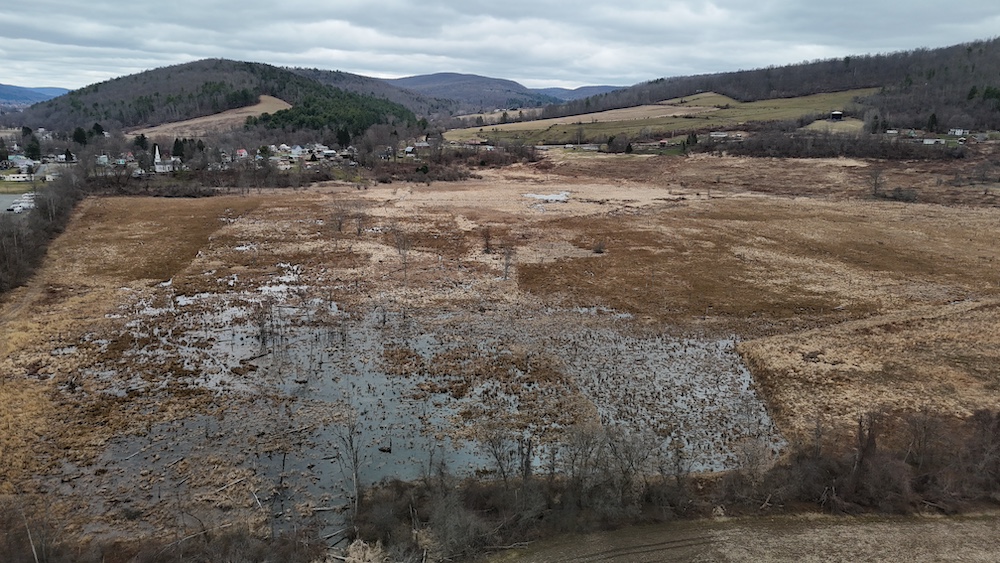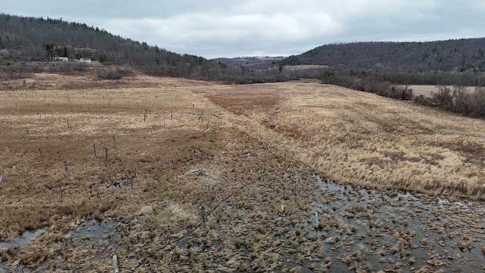Camp Brook and associated tributaries run through portions of the property, contributing to the overall character of the land. These water features create natural corridors across the property and may support wildlife movement. The presence of surface water, combined with adjacent open ground and wooded areas, contributes to a diverse landscape.