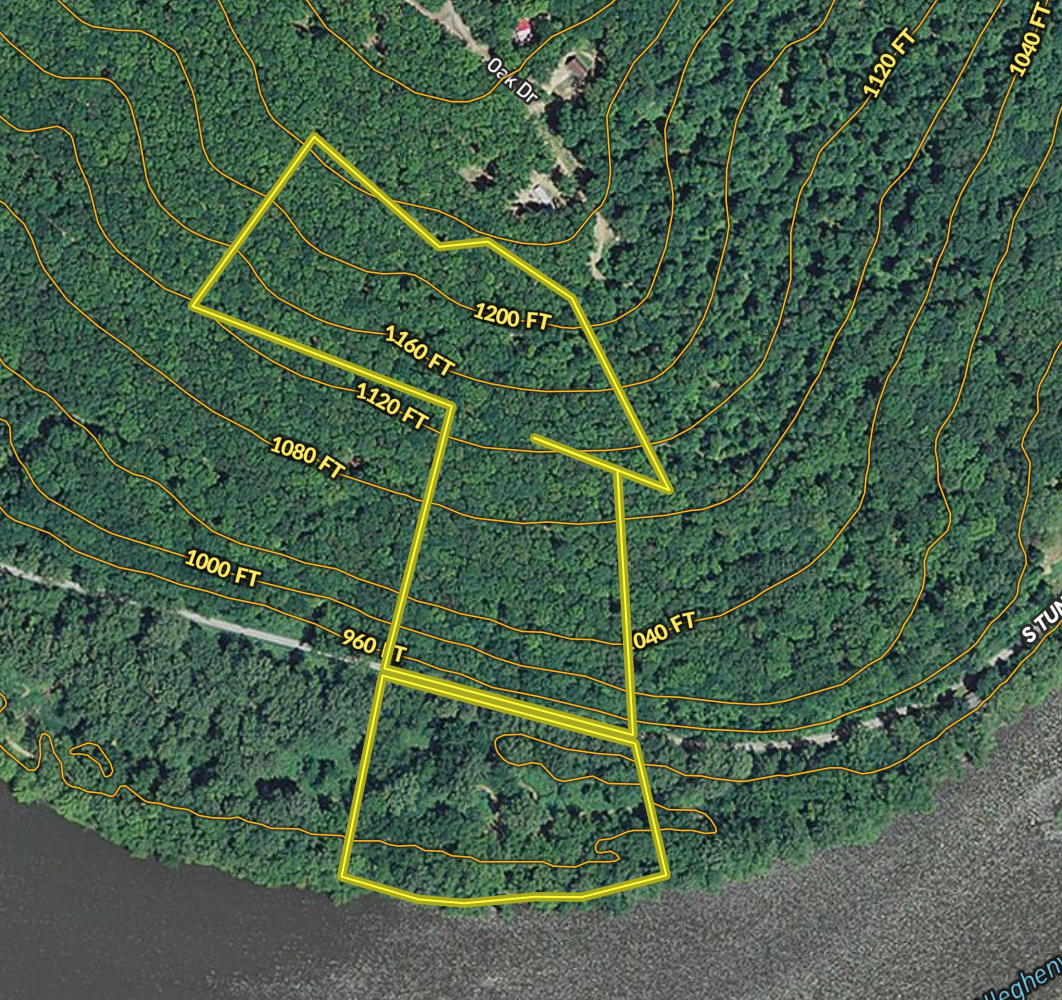 This is such a rare opportunity! Have you ever dreamed of owning your own Allegheny River waterfront and mountainside building site? This beautiful property offers both, approximately 800 feet of river frontage and potential building sites on the hillside above. The potential building sites offer amazing views of the river and neighboring hillsides. Access to the hilltop is by a deeded right of way and offers a nice driveway that leads right to the property. The property has been tested for on-site septic and approved. The hillside is loaded with mature oak trees offering great aesthetics and potential timber value. The whole width of the lower portion provides river frontage which is ideal for watersports including boating and fishing. This area would also make for great location family gatherings or camping trips. Just a short distance up the road is also a boat launch. The local area offers vast additional recreational opportunities including Clear Creek State Forest, State Game Lands 039, and the Kennerdell scenic overlook to name a few!