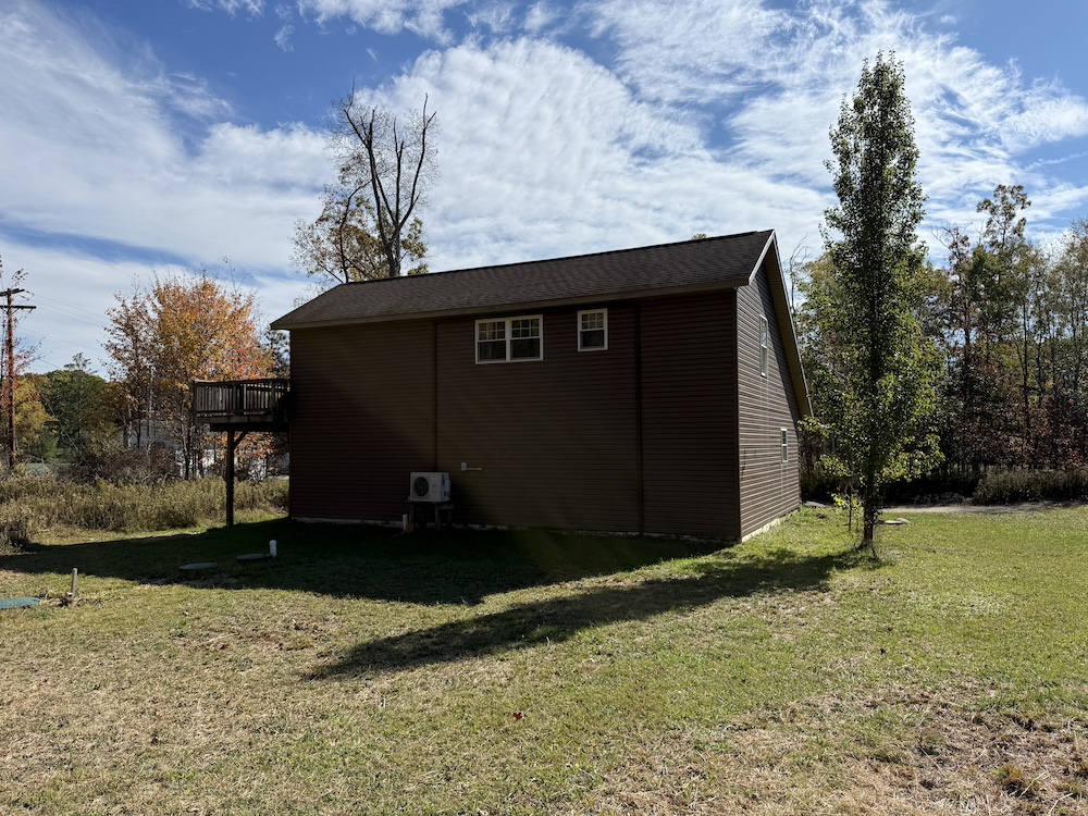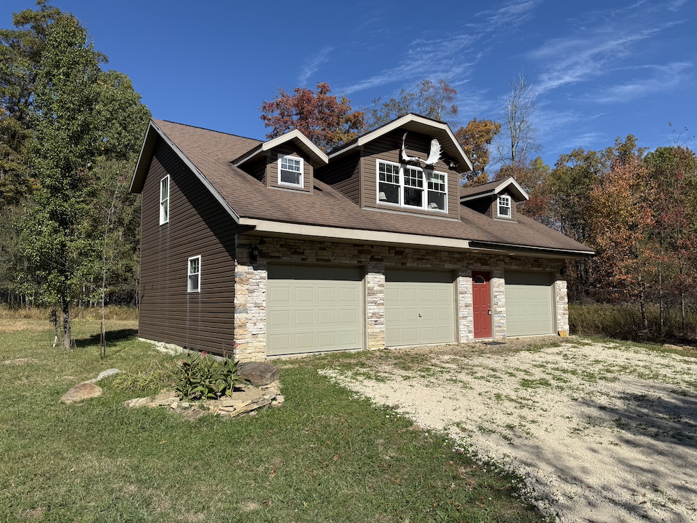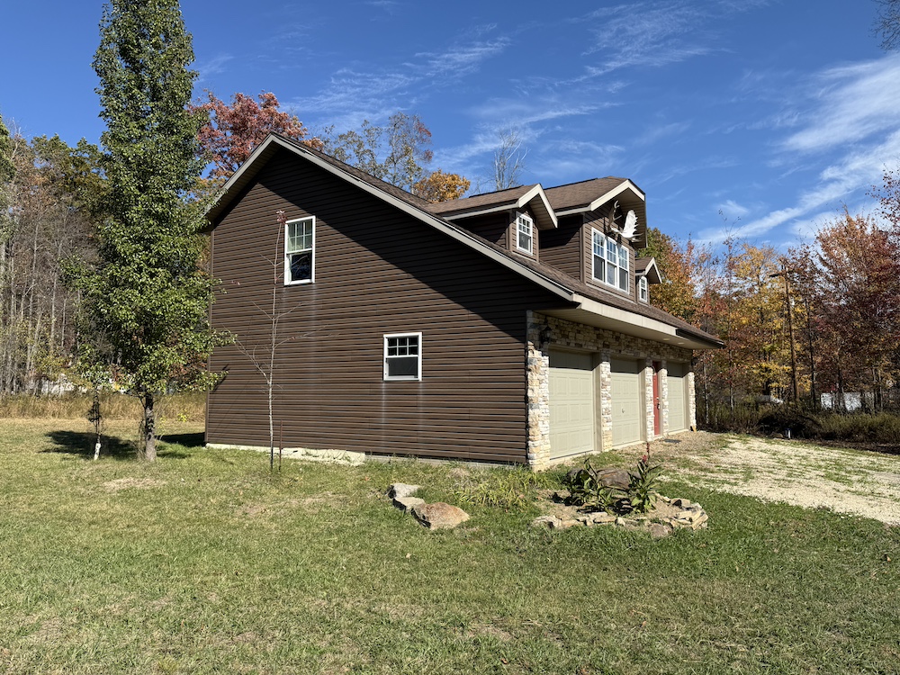 Price Adjusted! Secluded in the trees, you will find this beautifully built home. The location is within walking distance to PA State Game Lands #47 and just a short commute from the Allegheny River. The exterior of the cabin is very attractive with premium vinyl siding and stone veneer. The majority of the living space is on the second level, including a nice open kitchen featuring an island bar with great counter space and attractive cabinets. Off the kitchen is a nice pantry with laundry area and a private balcony. A sizable bathroom features a tile shower and marble integrated sink basin. The open dining area flows into the living room with vaulted ceilings. Two bedrooms finish off the room count, the larger of which has a nice closet. The lower level could easily be finished into additional living space, depending on your desires. Tubing has been installed for in floor heat as well as drains for a bathroom have been plumbed on the partially finished garage bay. On the left side are two additional insulated garage doors with plenty of room for your vehicles or storage. Everything has been very well built with longevity and minimal maintenance in mind. The home has many recent updates, including a new water well and a new natural gas forced air heating and cooling system. The home sits beautifully in the middle of the partially wooded lot and allows simple access to 2200+ acres of public land for your enjoyment, with legal ATV roads nearby. The on-site septic system is suited for a 3-bedroom home. There is plenty of room to park your trailers, equipment, or ATVs on the property. Don’t hesitate on this rare opportunity!