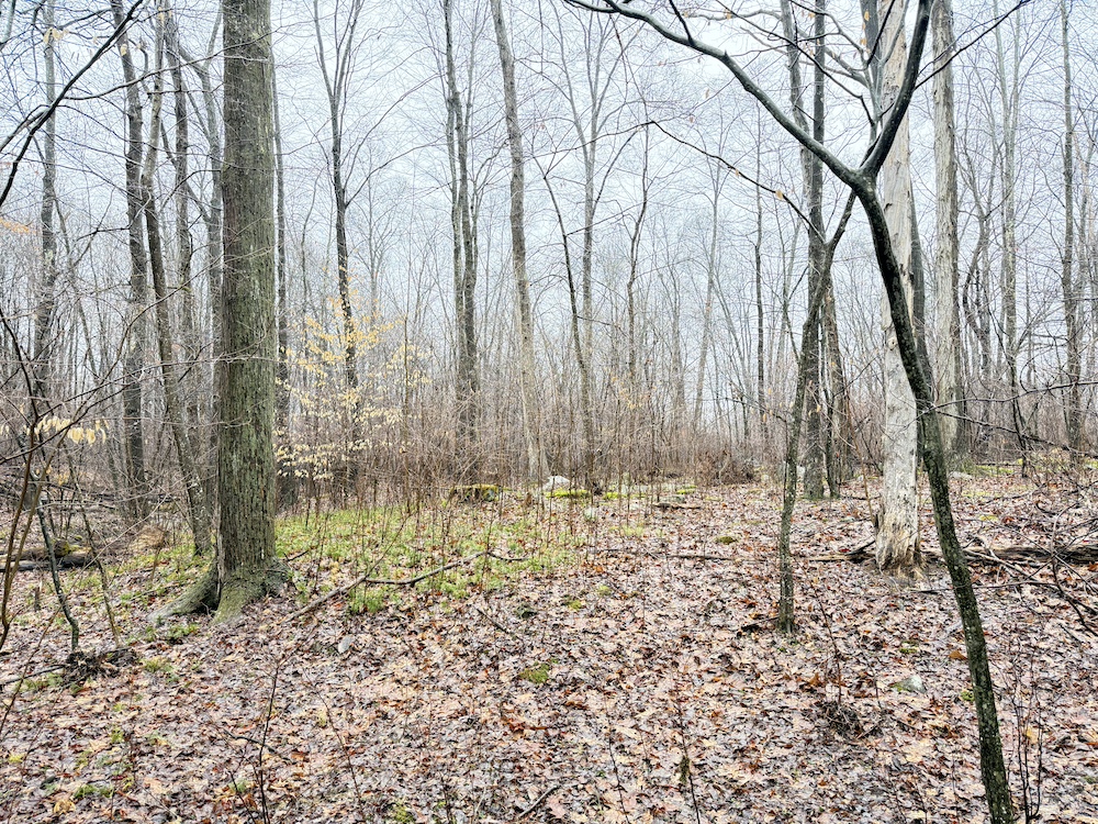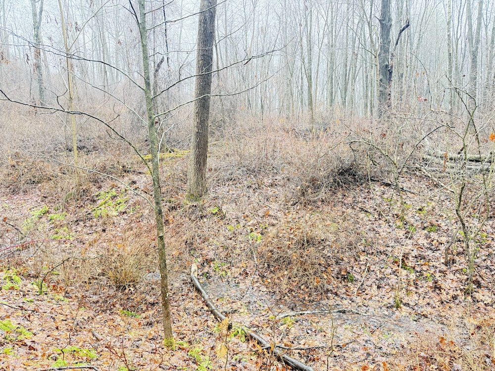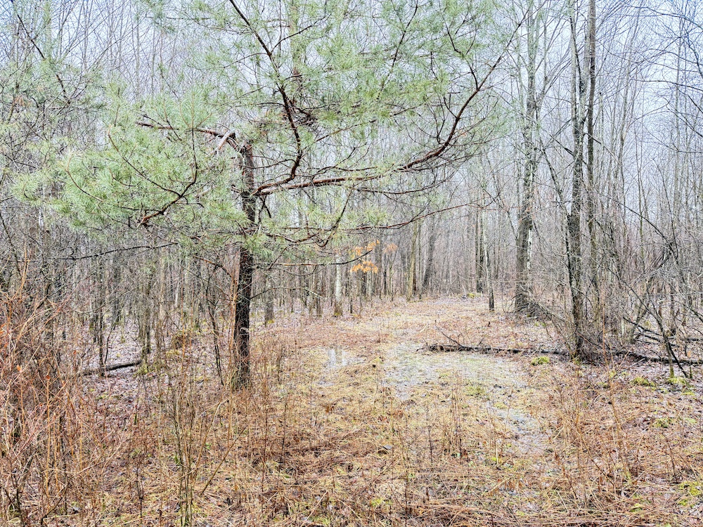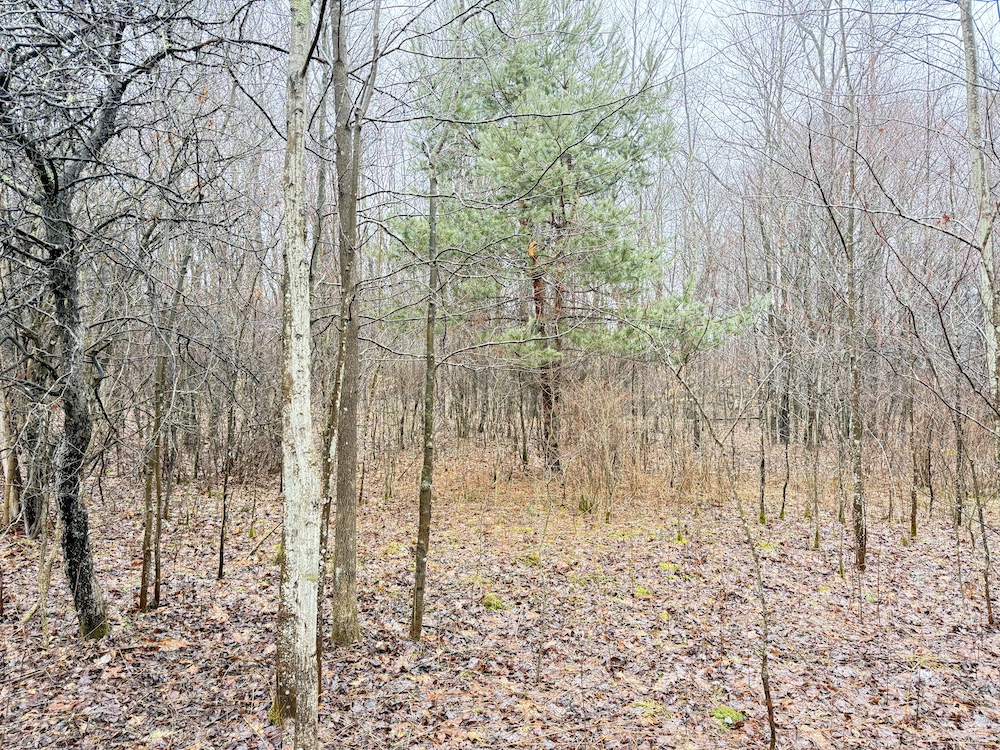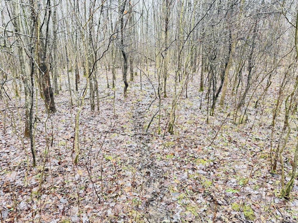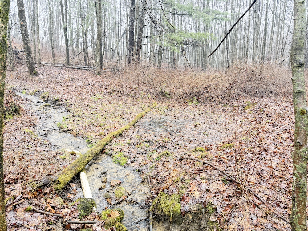 A scenic stream is located toward the rear of the property, and a natural spring provide an additional water source. These features, along with an old crabapple orchard, contribute to the overall character of the land and support local wildlife. Visible deer sign is present throughout the property, reflecting regular activity.