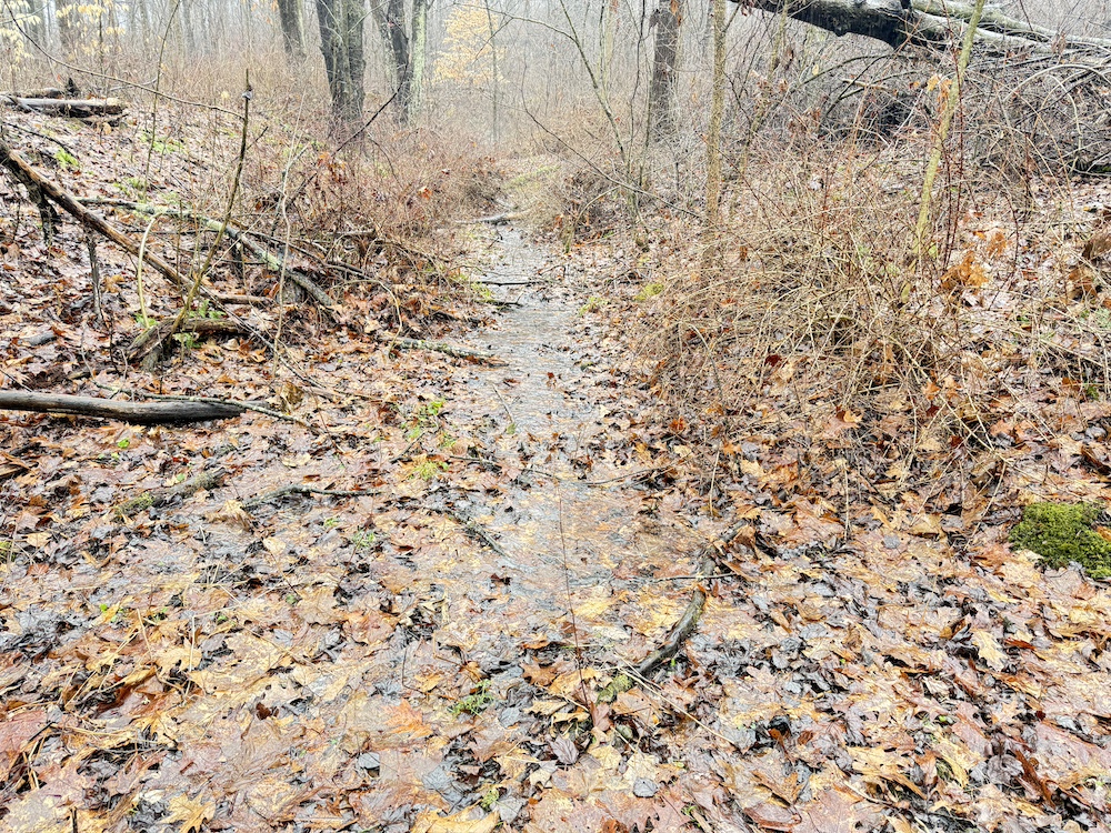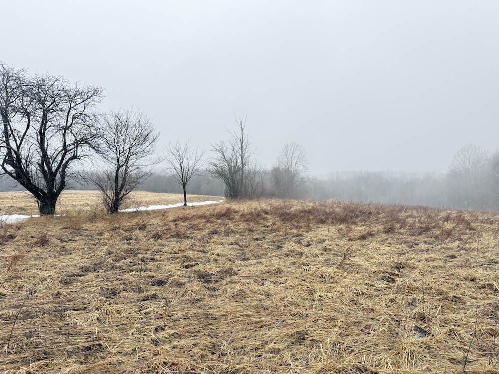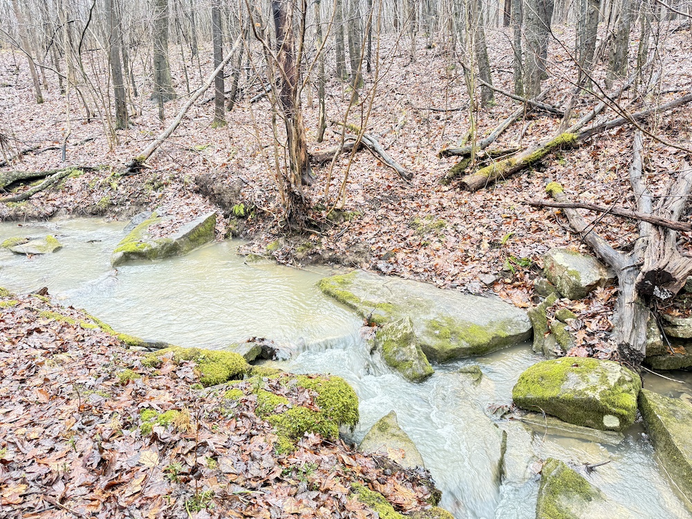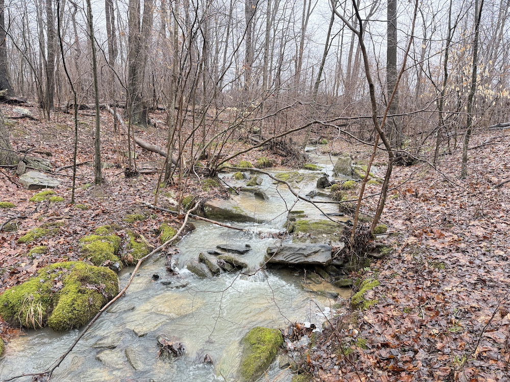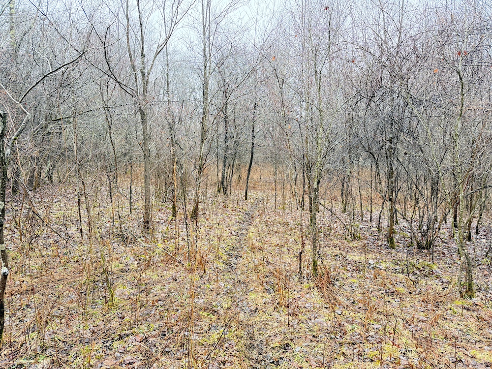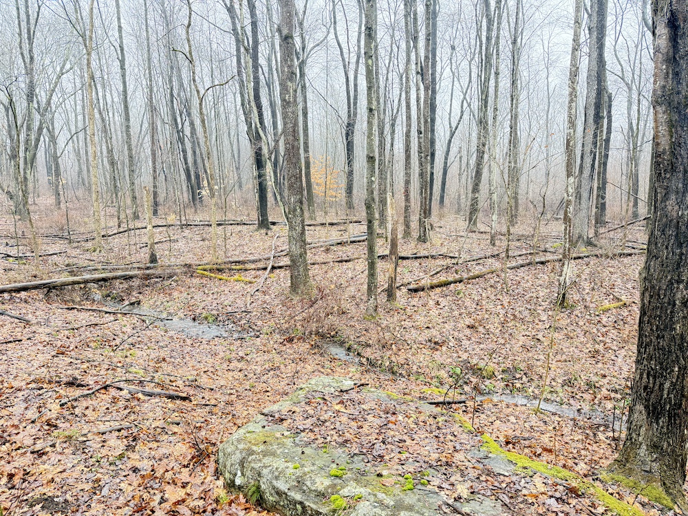 A scenic stream is located toward the rear of the property, and a natural spring provide an additional water source. These features, along with an old crabapple orchard, contribute to the overall character of the land and support local wildlife. Visible deer sign is present throughout the property, reflecting regular activity.