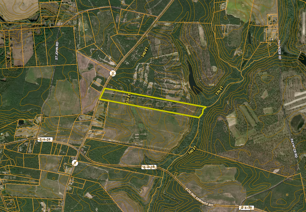 This 50.5 +/- acre tract in Barnwell County offers a combination of accessible acreage, established wildlife habitat and diverse terrain suited for recreational use. The property features direct road frontage, providing convenient entry and multiple potential access points along the front boundary. Its long and slender shape allows for separation of use areas and supports a variety of outdoor activities.