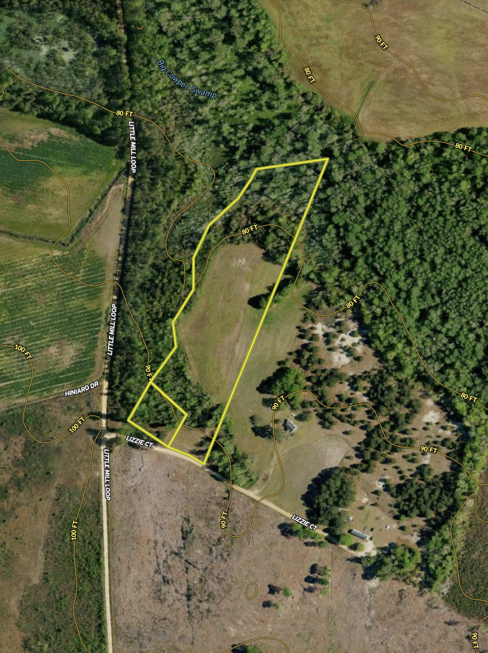 - Approximately 1.5+/- acres of prime duck habitat on Big Cowpen Swamp