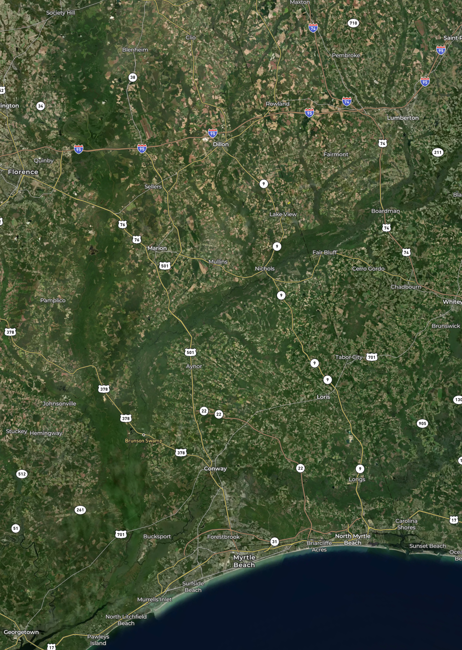 - 22 miles to Lumberton, NC