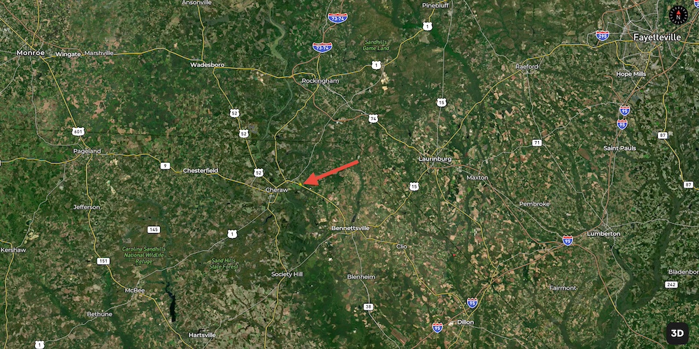 Perfectly situated for country living with easy access to nearby towns, this tract is just 10± minutes from Cheraw or Bennettsville, 20± minutes from Chesterfield or Laurinburg, NC, and about an hour from Florence, Lumberton, or Fayetteville, NC.