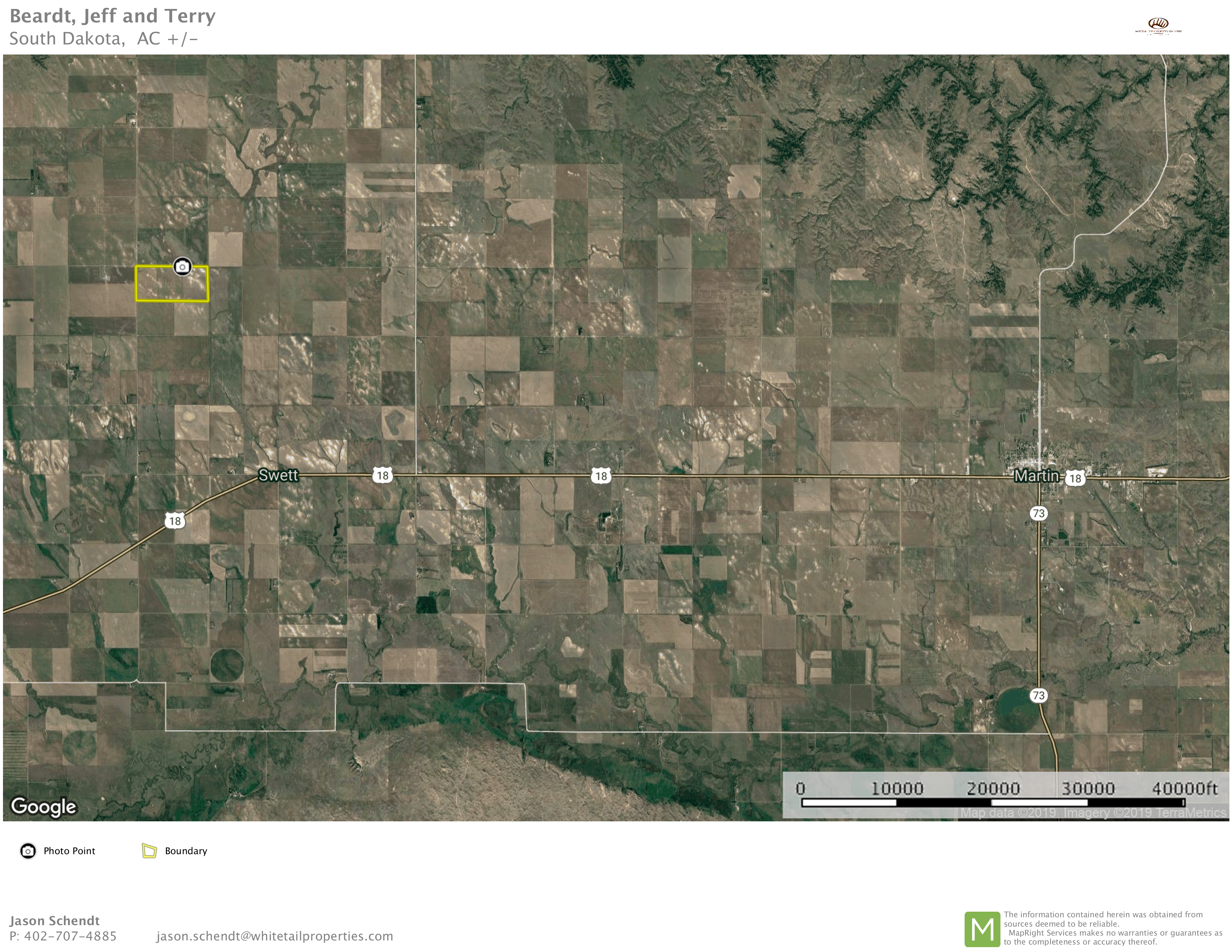 12 miles west and 3 miles north of Martin