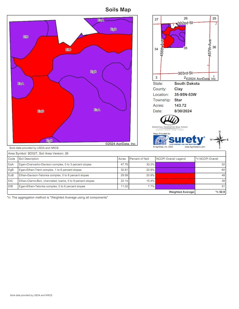 Whitetail Properties Real Estate is excited to offer a diverse and productive tract east of Wakonda. If you want to expand your operation, add to your portfolio, or want a farm to hunt in southeast South Dakota, then take a close look at this one. The farm has a mix of tiled and productive tillable, pasture, and a seasonal treelined creek. The farm has great access from the north and west side. Possession will be available for the 2025 growing season, or arrangements can be made with the current tenant. The sellers are offering the option of a Contract for Deed. Please call for details.