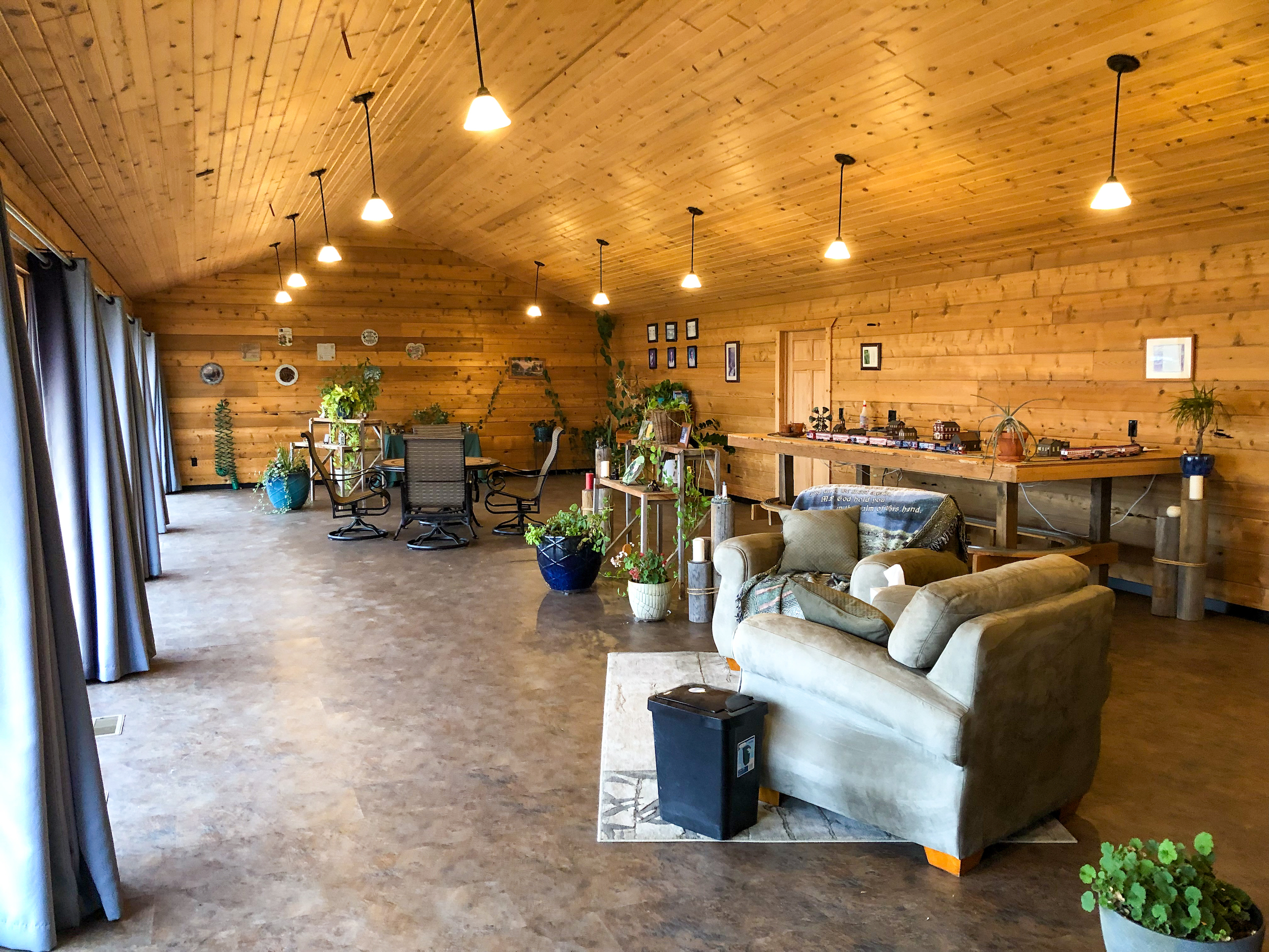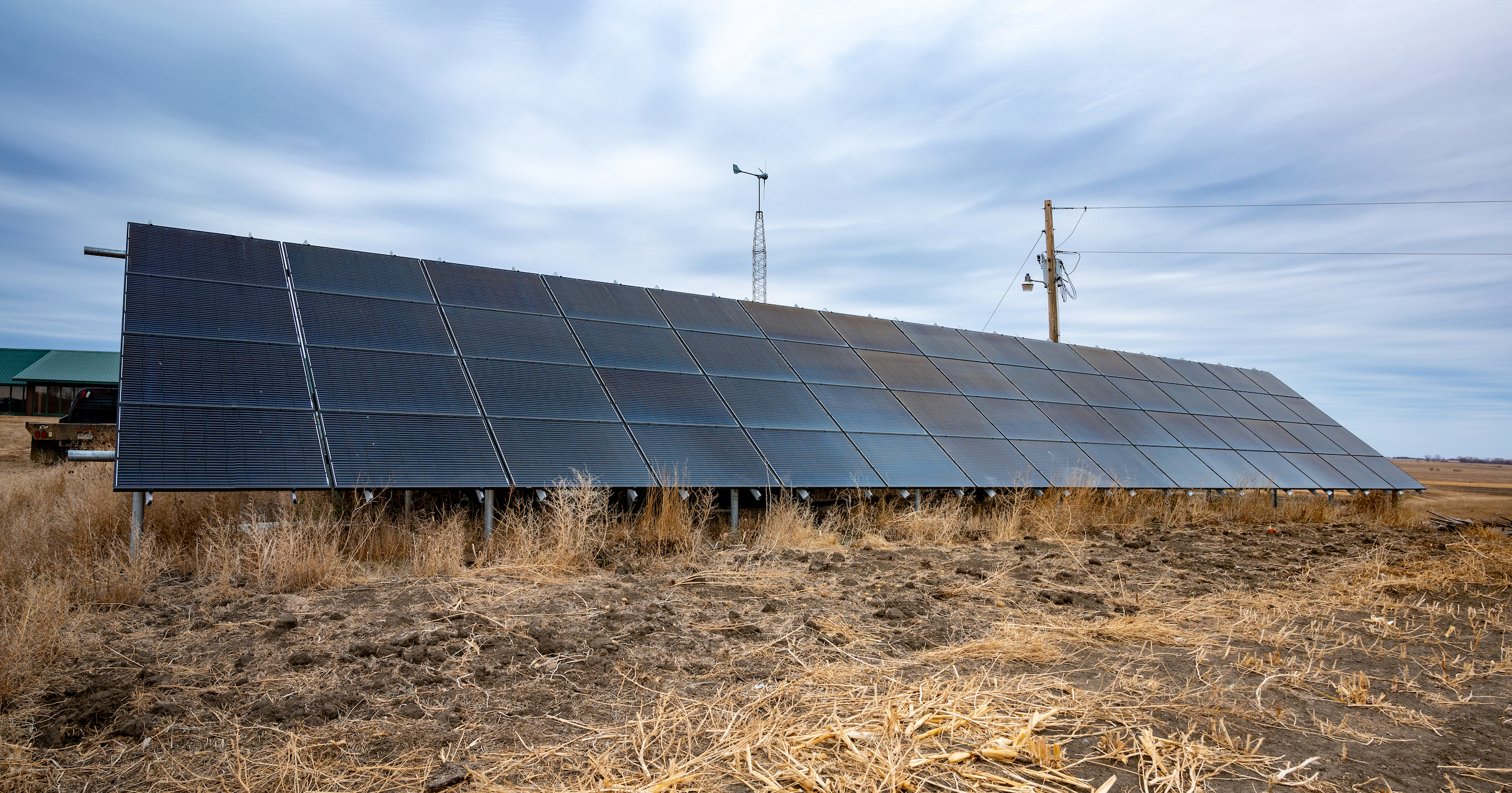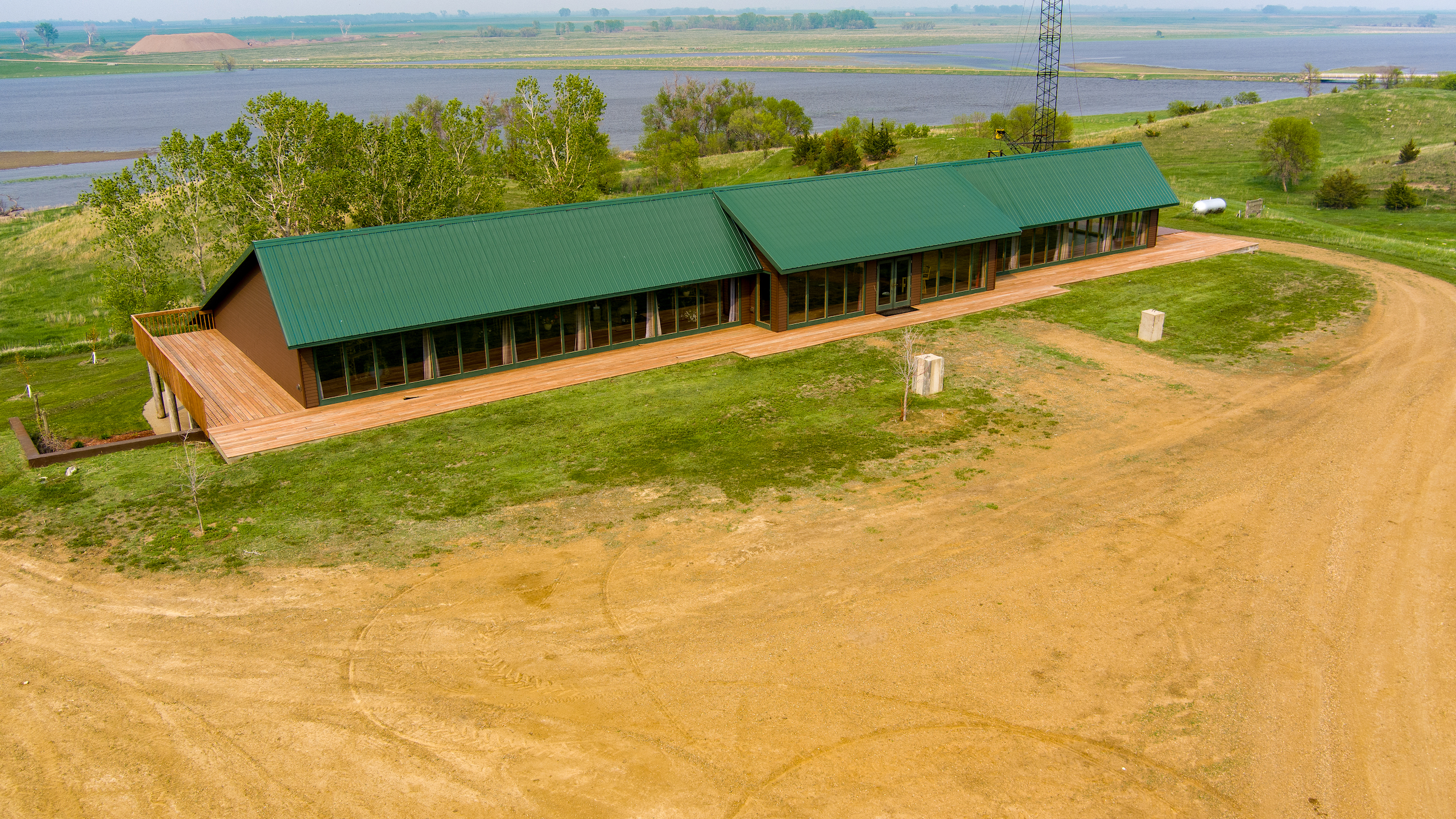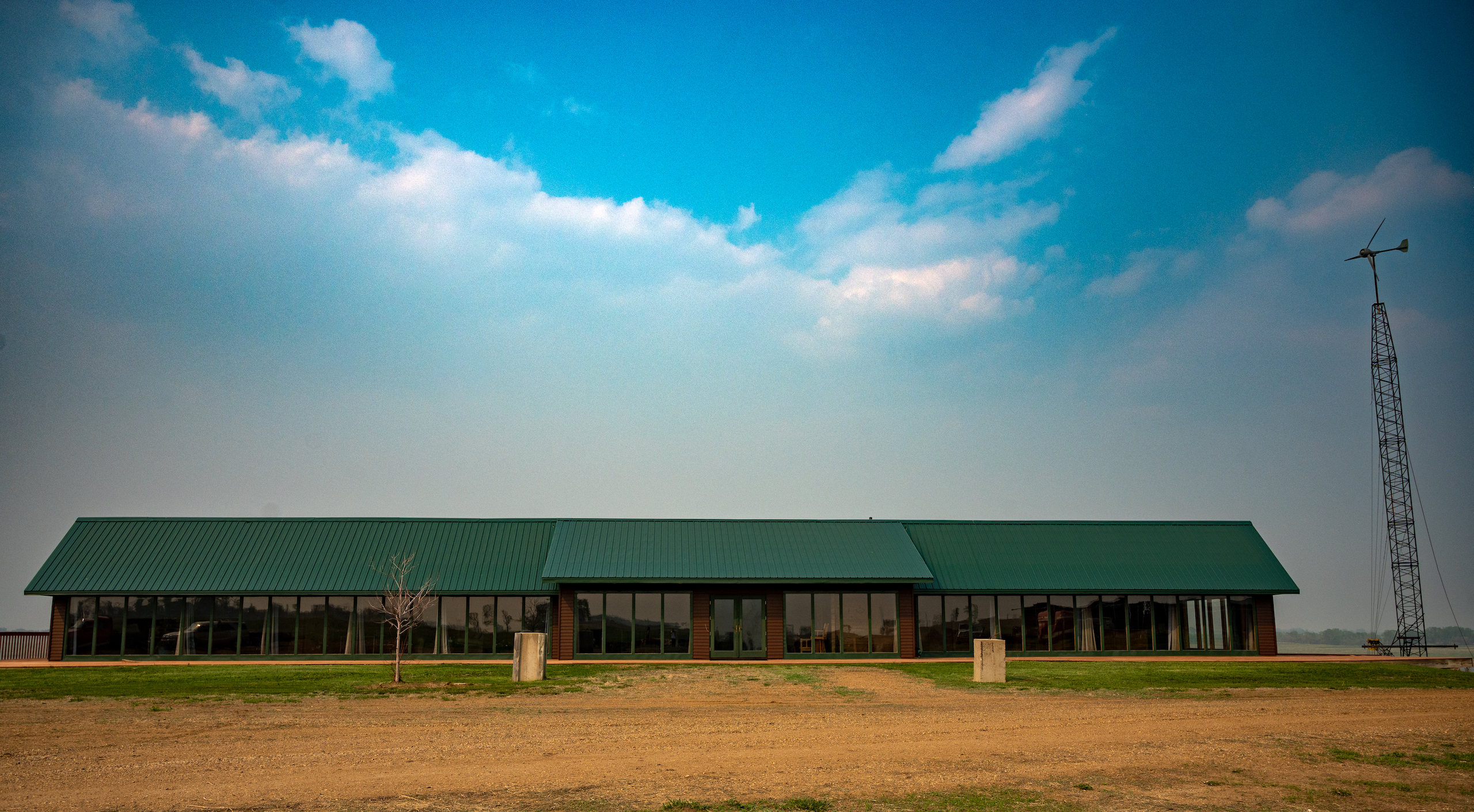 Just south of Pearl Creek, we wound along the James River Valley, and the home appeared to our right on the far bank. The large maintenance-free steel roof has an extended slope protecting the home from the north winter winds. We turned into the private drive, and one-third mile north of 225th Street, the southwest-facing wall of windows in the lodge came into view. The builders thoughtfully positioned the lodge to receive passive solar heat throughout the winter. We passed the 16kW solar array and saw the 5kW wind turbine near the property's eastern edge. A run-in shelter teemed with goats, and the well-equipped machine shed was situated on the west side of the lodge.