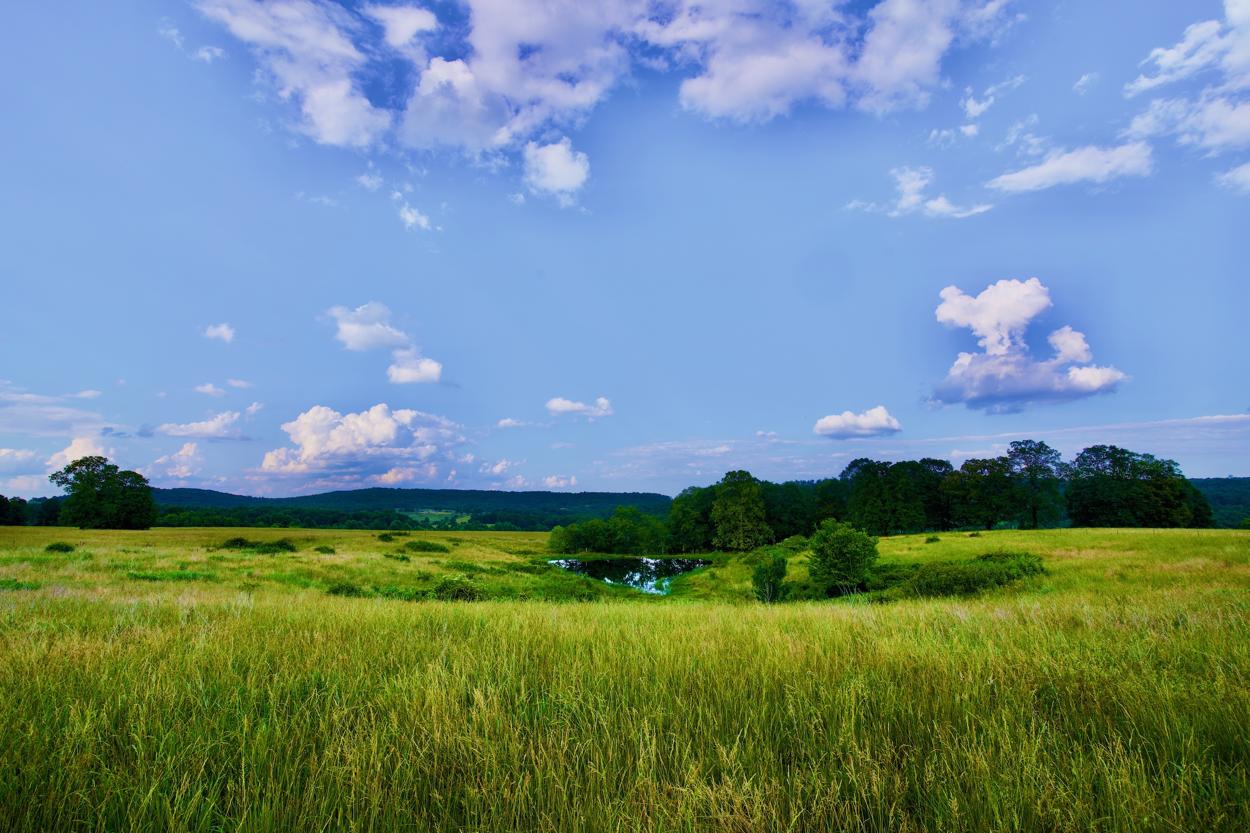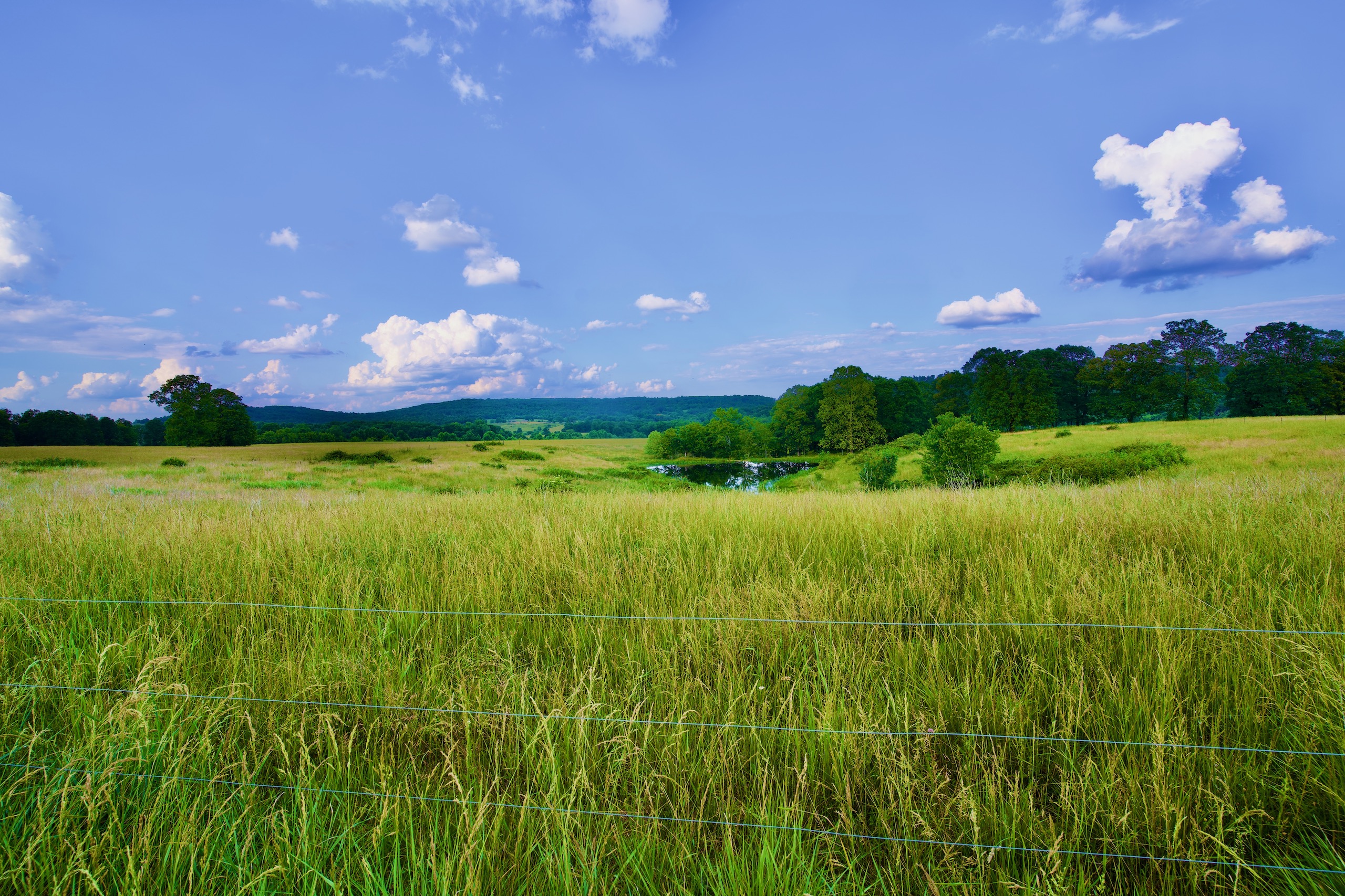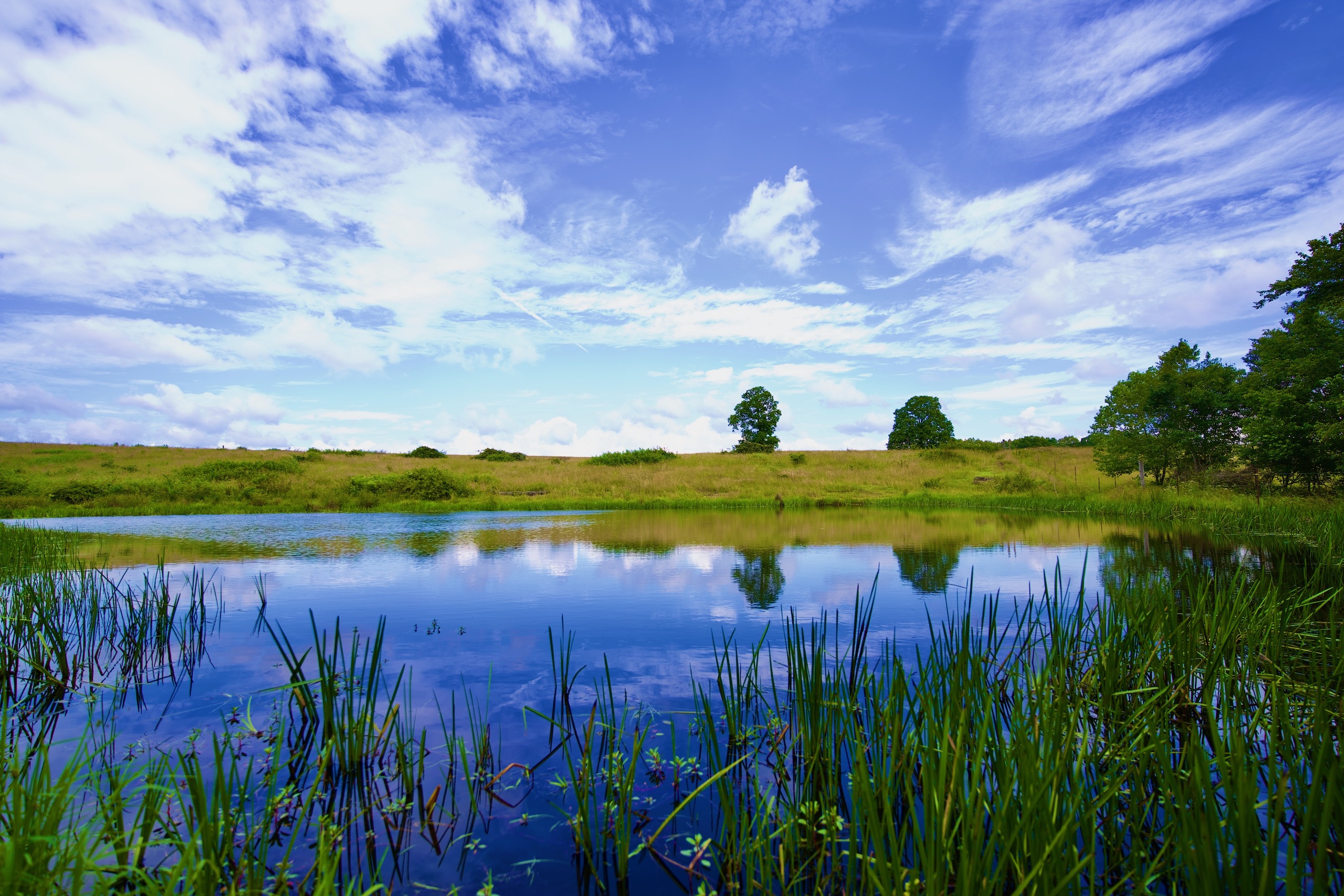 Pasture, Grass, Hay, Pond