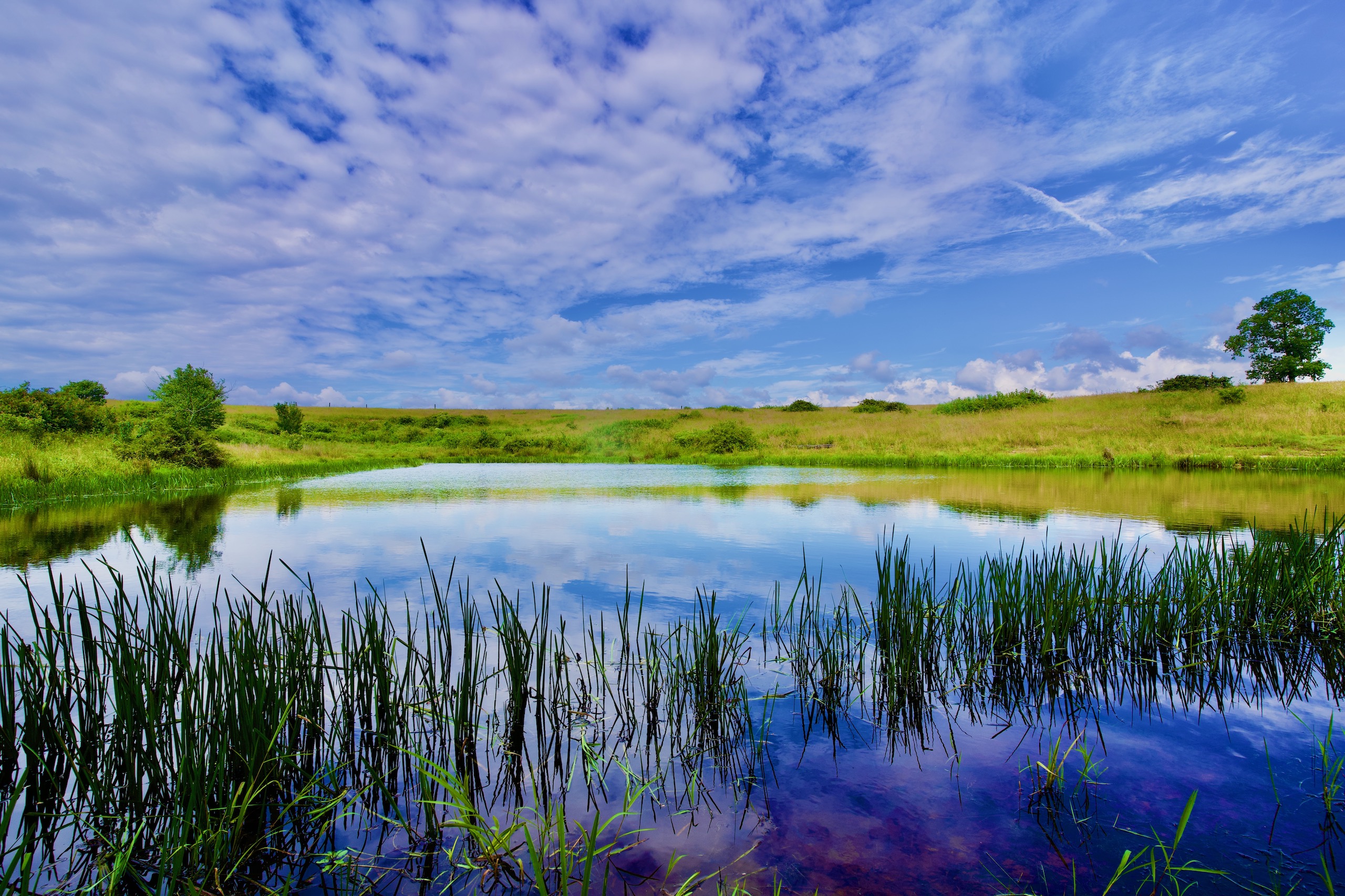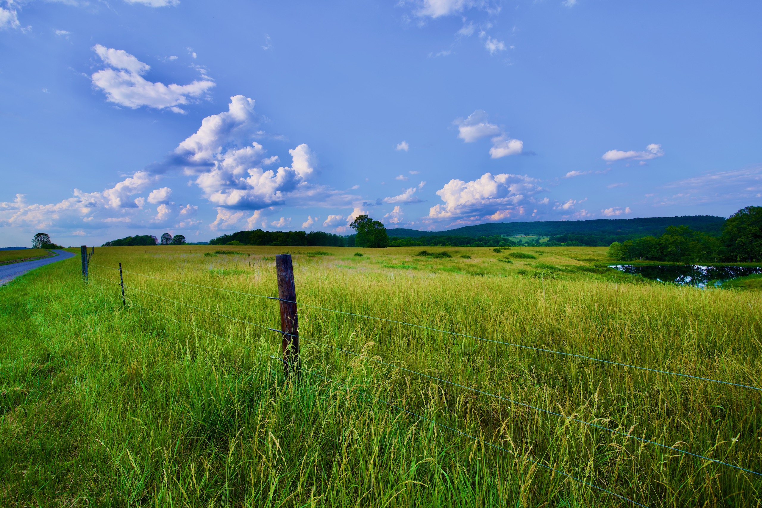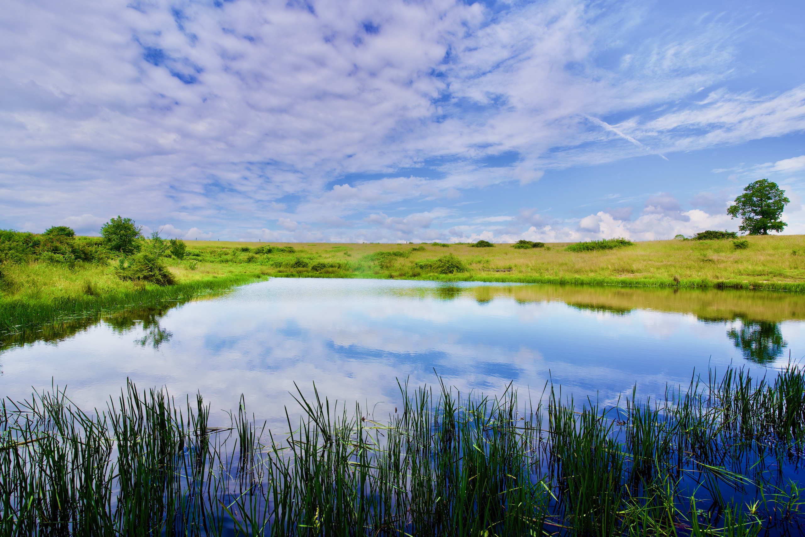 Pasture, Grass, Hay, Pond