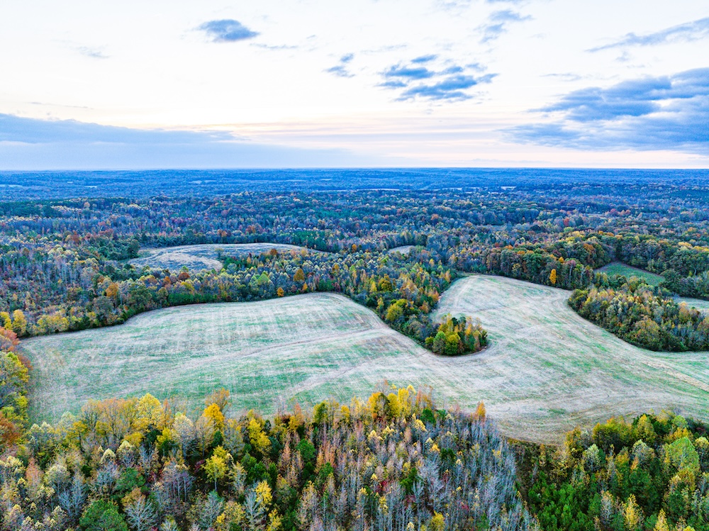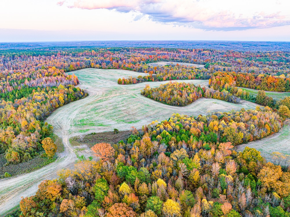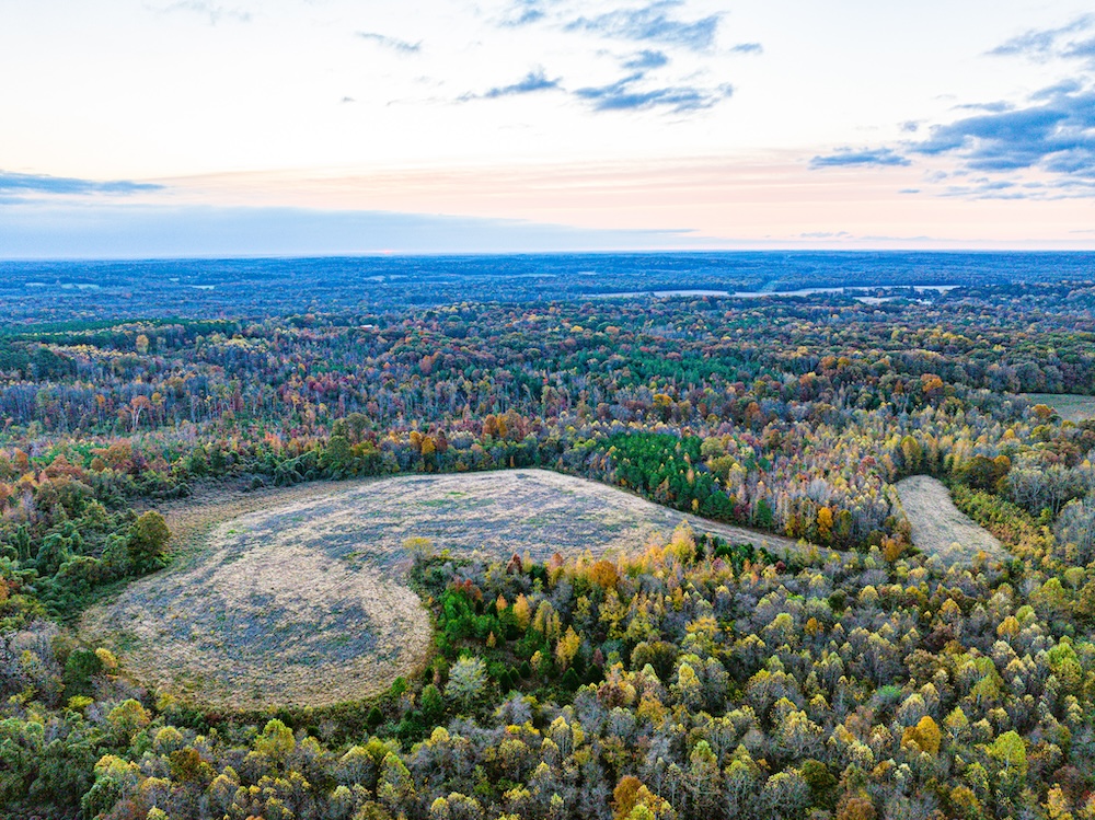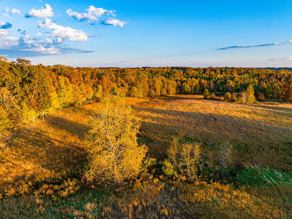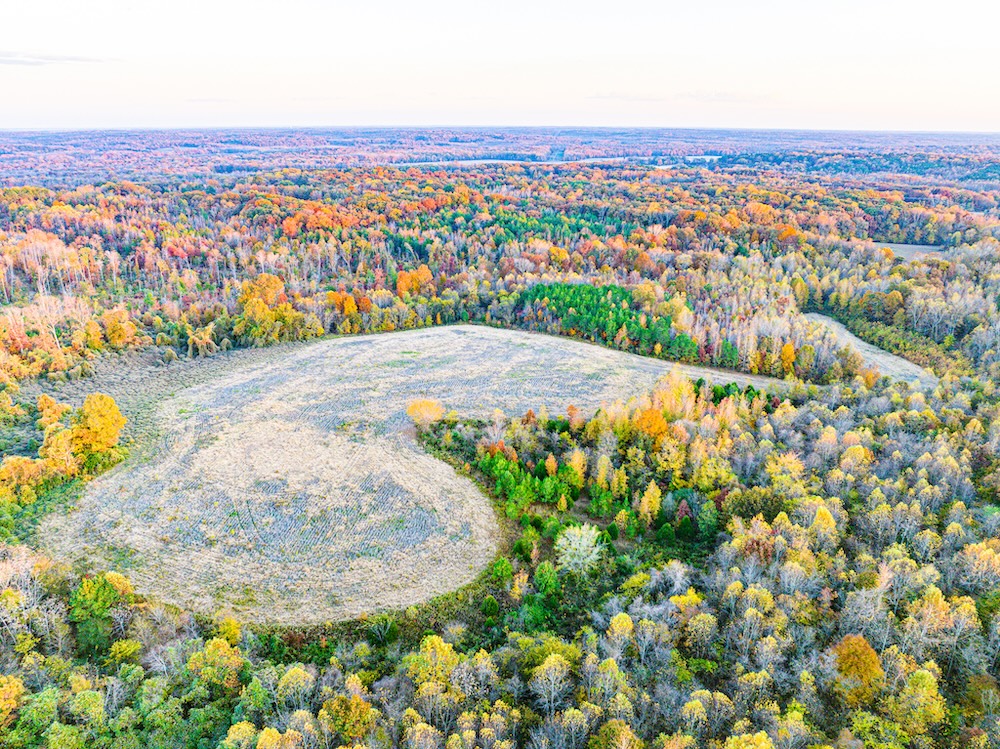 - Extensive edge habitat from field, timber, and wetland layout supports feeding areas, bedding, plots, and travel routes
