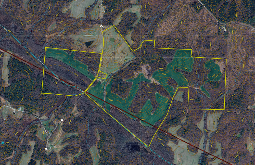 Nestled in the heart of West Tennessee, this 357 ± acre tract in Carroll County offers a rare combination of income potential and recreational appeal. Located just 11 miles northeast of Huntingdon, 12 miles west‑northwest of Camden, and approximately 17.5 miles south‑southeast of Paris, TN, with downtown Nashville about 100 miles away, the property is both accessible and remote enough to offer a true retreat. The property features 121.6 ± acres of tillable land currently under row‑crop production, generating approximately $8,500 annually. Alongside the tillable ground, there are approximately 37 ± acres of fenced pasture, complete with a livestock pond, that is presently overgrown and provides excellent transitional cover and bedding opportunities for deer. A year‑round creek, Allen Creek, flows along the full southern boundary of the property, supplying consistent water for wildlife. In addition to the creek, several acres of wetlands provide important habitat for deer, turkey, and occasional waterfowl. An overgrown transmission line corridor traverses the property, creating early successional cover that, when combined with the creek corridor, forms a wildlife travel zone of exceptional value. Multiple timber pockets of varying ages and species — including hardwoods, softwoods, and pine — diversify the habitat and add long‑term timber value. The shape and arrangement of tillable fields, timber segments, and wetland edges generate extensive edge habitat, which yields excellent potential for orchestrating feeding fields, staging areas, hide‑hole food plots, thick bedding zones, and travel corridors. The property is bisected by a paved highway, which offers multiple vantage points and wind‑direction options for hunting and property access. An older home resides on the property, offering restoration potential for someone seeking a residence or a hunting lodge. The combination of tillable income, pasture, timber, and premium wildlife habitat makes this parcel a versatile candidate for a working farm, recreational investment, or wildlife sanctuary. Nearby features include the Big Sandy River, approximately 1.3 miles to the west, and the expansive recreation and natural resources of the region, making this property a rare find in a county known for its quality outdoor opportunities.