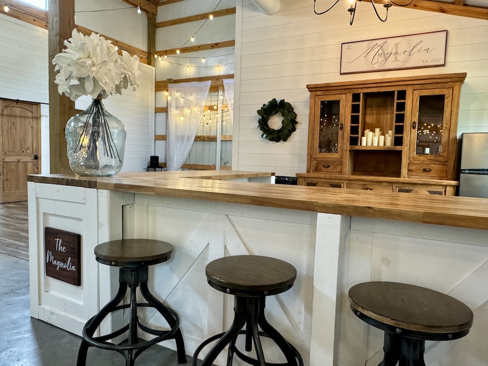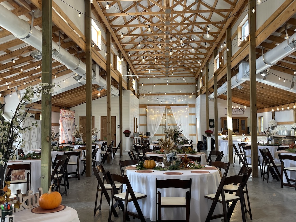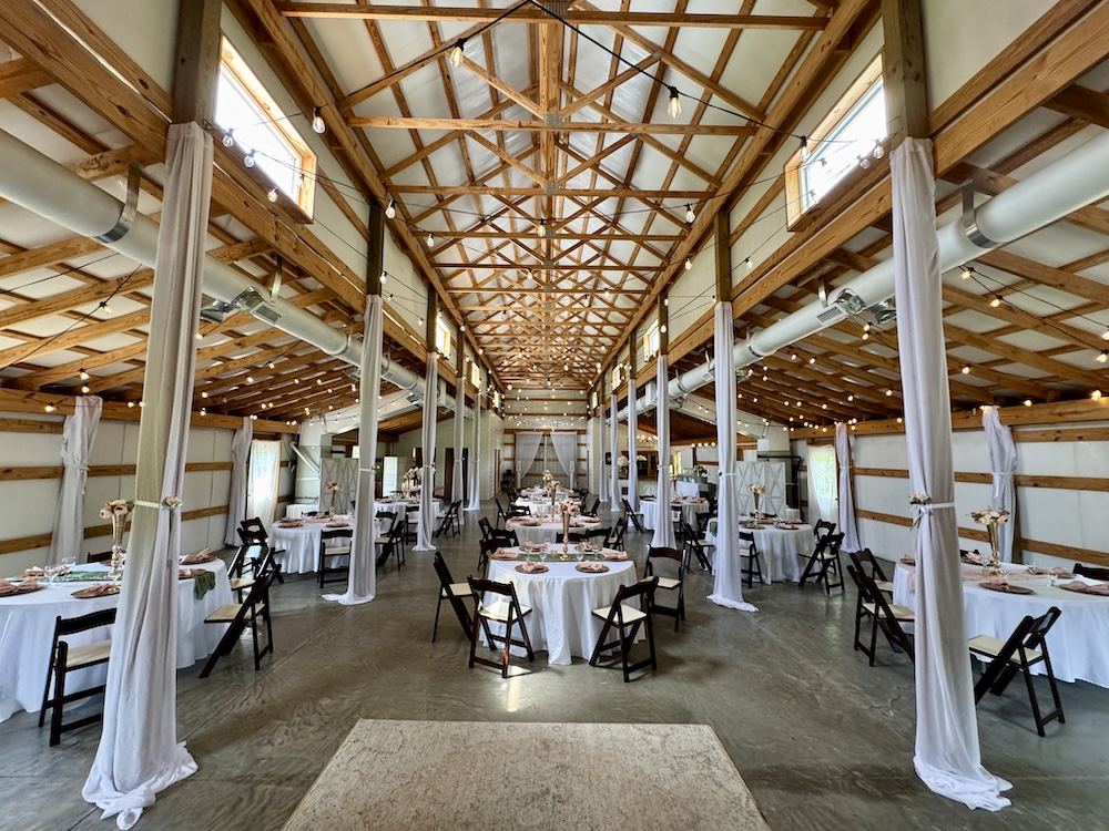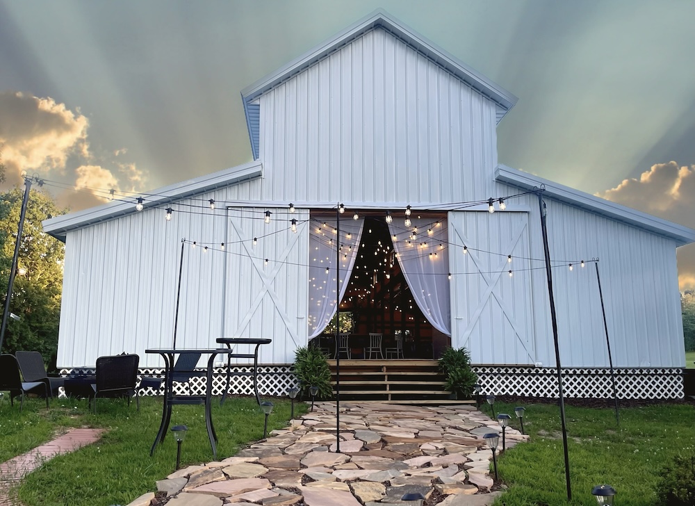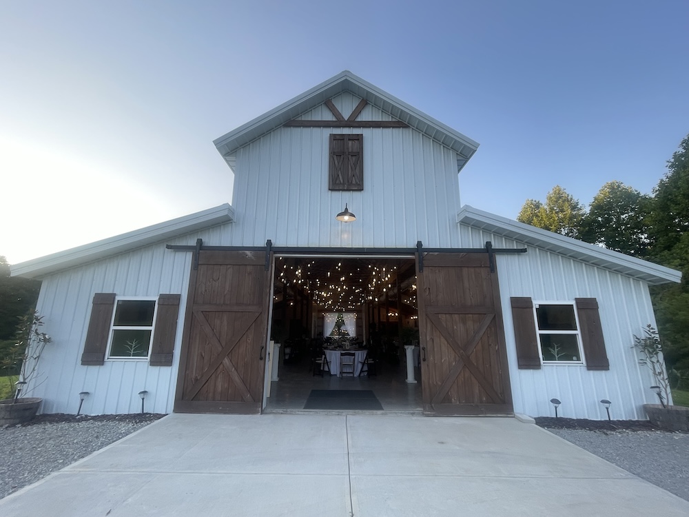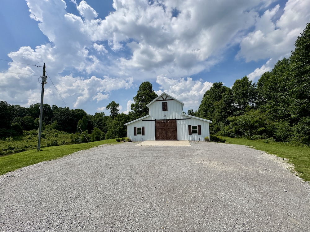 - Pole barn features 3 BA, small commercial kitchen and bar area