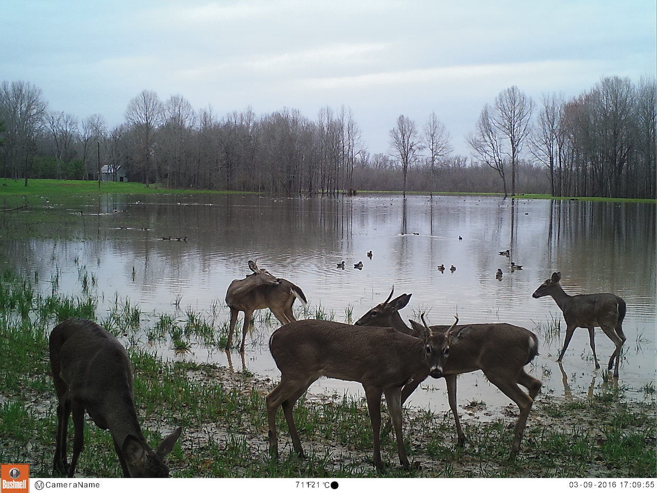 - Mixture of bottomland and high ground habitats
