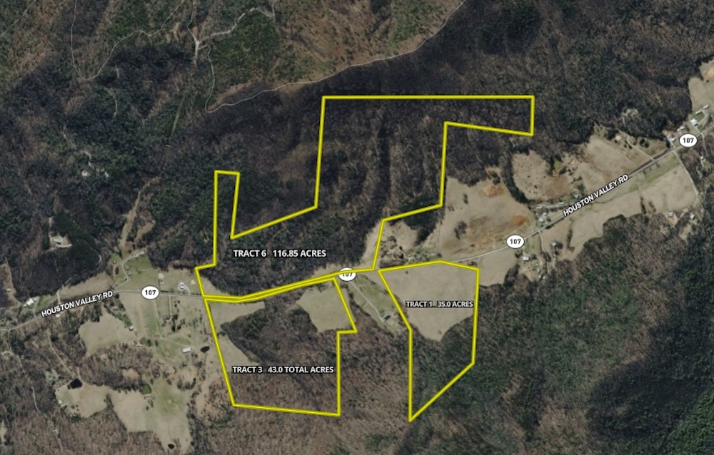 Glen Hills Utility services the Houston Valley area for public water, and electricity is available on Houston Valley Road. For buyers looking to expand their footprint or explore a larger assemblage opportunity, additional acreage is also available: Whole -194.86 +/- acres, Tract 1- 35 +/- acres, and Tract 6- 116.85 +/- acres While offering a private rural setting, the property remains within a convenient drive of Greeneville, Newport, Hot Springs, and Asheville for shopping, services, dining, and regional travel needs. This 43+/- acre tract offers a strong opportunity for buyers seeking a well-rounded property with road frontage, varied terrain, natural water, mountain views, and multiple future-use options in southern Greene County. Schedule your showing today! Buyer(s)/Buyer Agents to verify all information. Property lines are approximate only. Pre-qualification/Proof of funds required and notice to show. NO TRESSPASSING. Must have an agent present at all showings. Taxes to be determined.