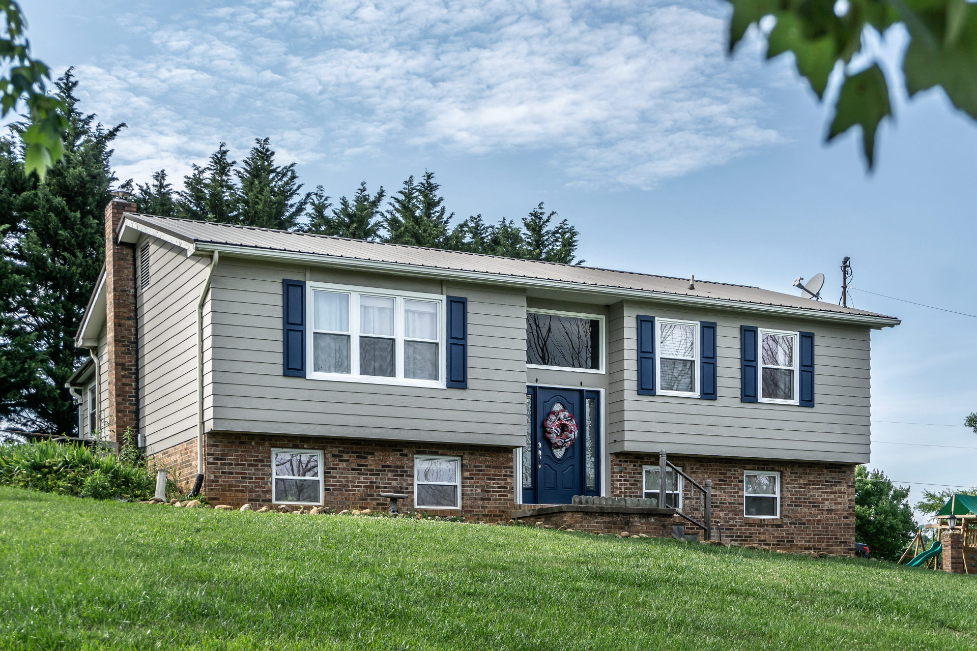 - Exterior trim, shutters, and door repainted