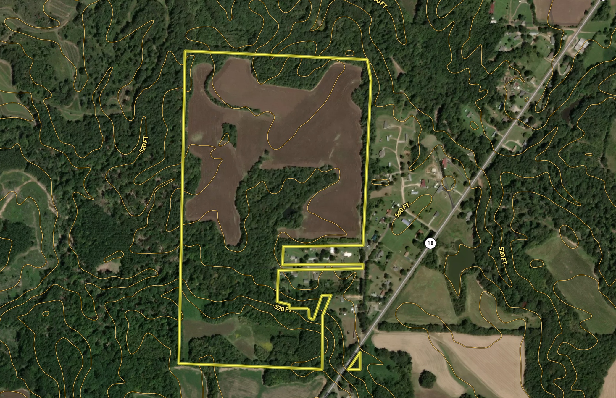 - Near perfect 45/55 mixture of open / wooded acres with a small hidden pond