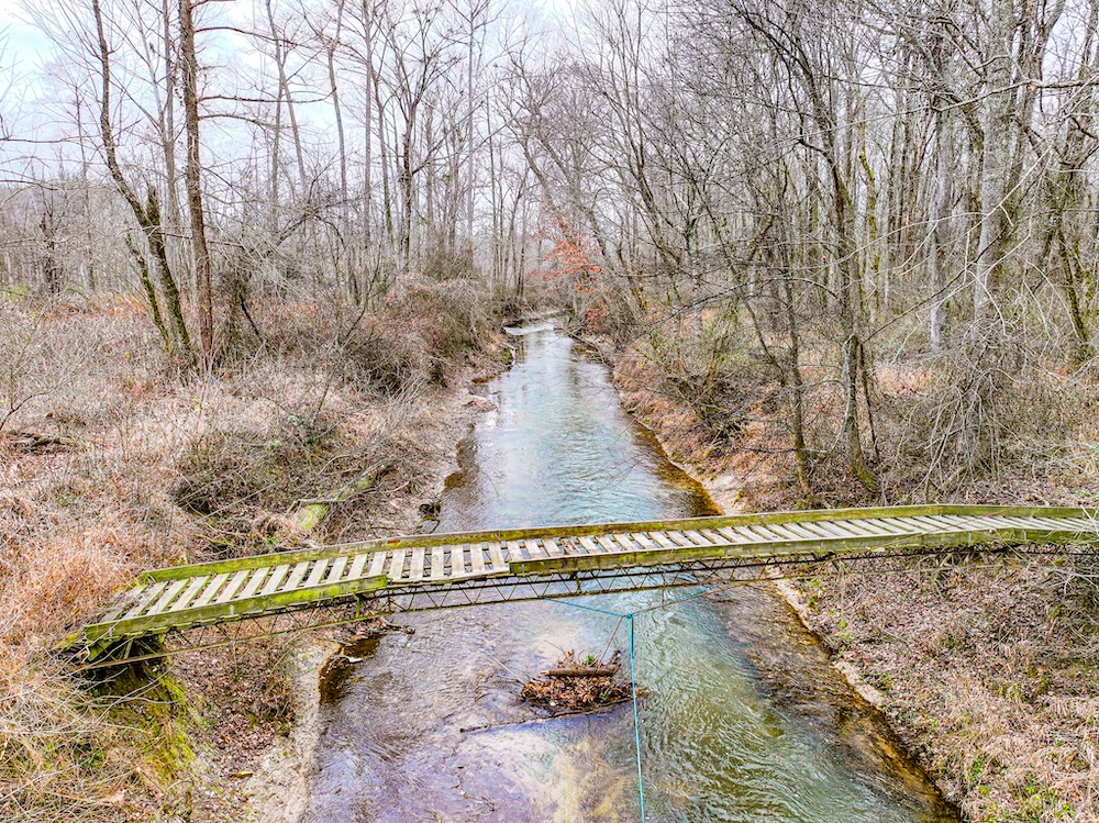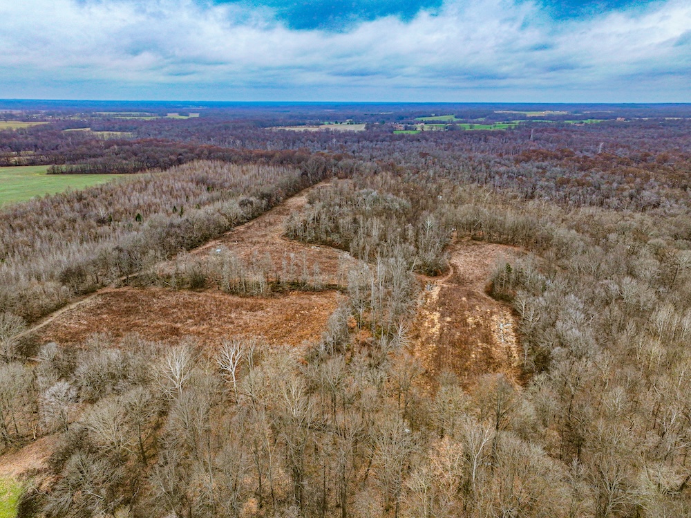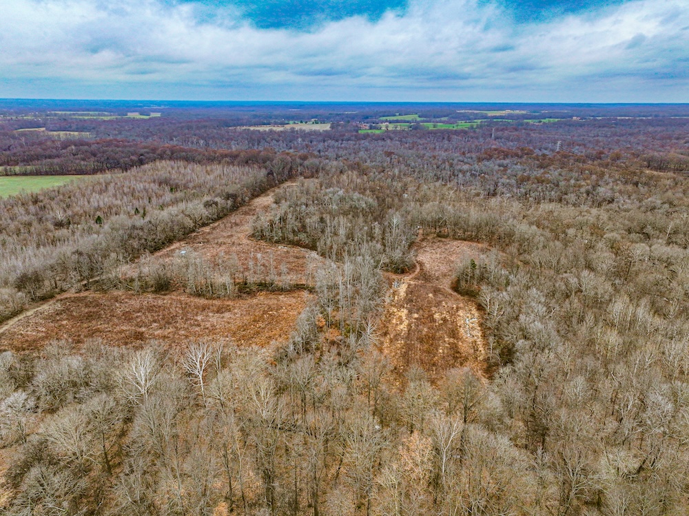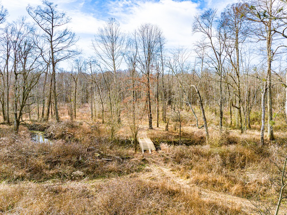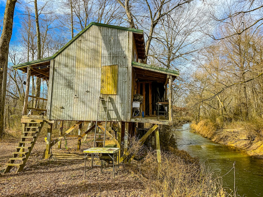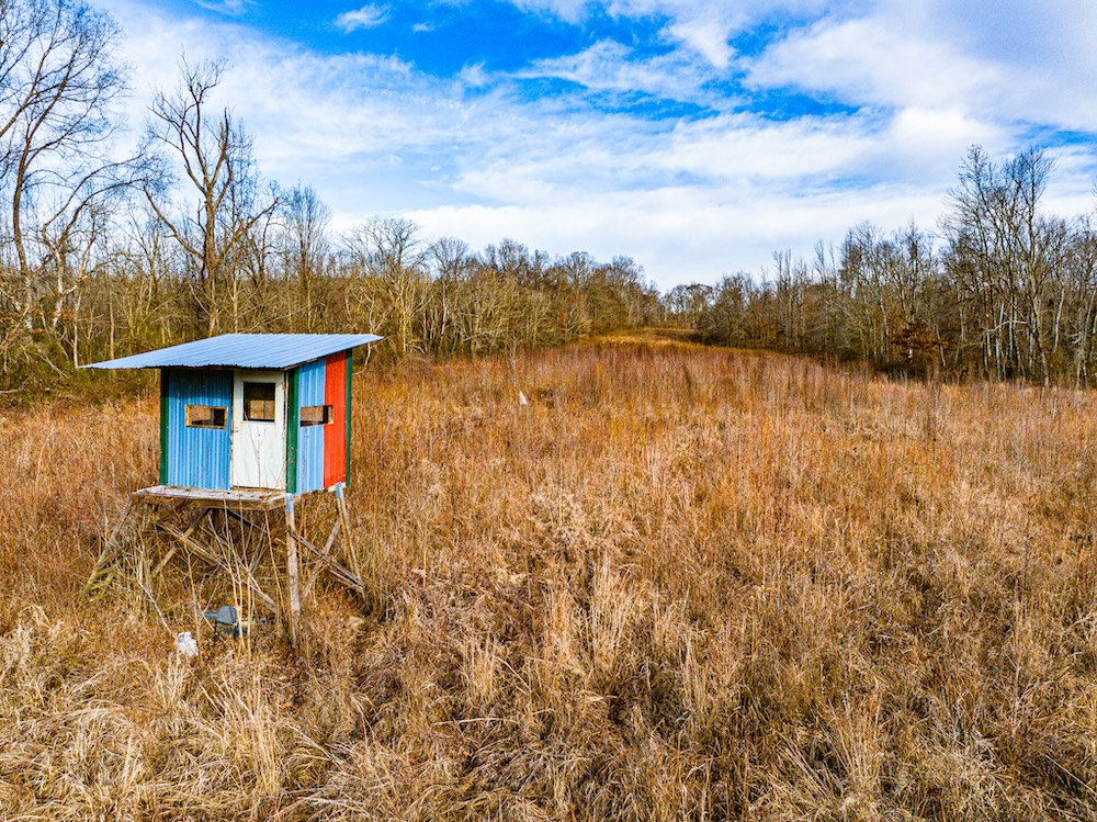 On the property, Walnut Fork Creek flows into the river, creating a convergence of pronounced water features. This intersection of two flowing bodies of water creates a natural draw for wildlife. The consistent presence of water, combined with nearby food and cover, ensures that deer, turkey, and other species will regularly travel through and utilize this corridor throughout the year. An elevated off-grid cabin serves as a camp, with a solar-powered lighting system, a bunk room, and a kitchenette. The structure provides a functional and ready-to-use base for hunting or weekend use. The property is accessed by a deeded easement from the north. An interior road system and multiple bridges allow access across much of the property by ATV or small tractor. This setup improves mobility for habitat management, game recovery, and stand access. Past timber harvests have opened the canopy in several areas, encouraging strong growth of native grasses and forbs. These areas now provide excellent bedding and forage for deer and other wildlife. The combination of food, cover, and water makes the property attractive to multiple game species year-round. Deer and turkey activity is well documented through harvest history and trail camera photos. Several deer stands are already in place, and the current owners have established a thoughtful and proven stand layout. That layout is supported by a detailed map that includes notes, stand locations, and advice based on years of personal experience on the property. This mapped history adds a nostalgic and practical layer for the next owner, offering insight into how the land hunts and what to expect at each location. Surrounded by expansive row-crop fields, this property benefits from an ideal combination of nearby grain-rich ag land and dense internal cover—supporting healthy populations of deer, turkeys, and waterfowl. This property is a strong option for those looking to hunt, manage land, or enjoy rural recreation in northwest Tennessee with access to nearby amenities and cross-state opportunities.