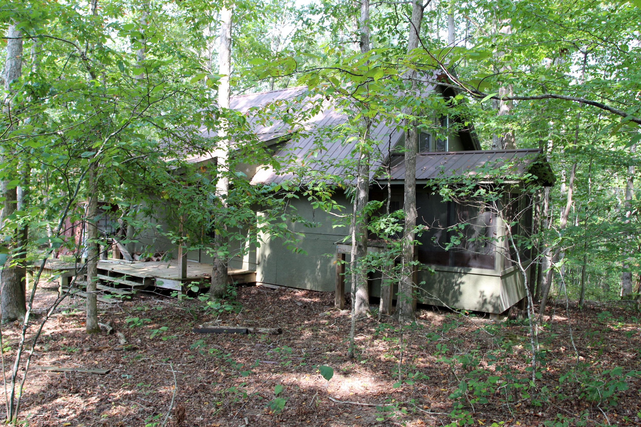 Mostly timber tract with four cabins just over an hour from Nashville. Perfect for a weekend getaway or hunting retreat. Young mature timber was full of white and red oaks and poplar. Great deer and turkey hunting. Gated access with the main trail running through the middle of the property providing easy access to the cabins. Blue Creek runs throughout the back of the property.