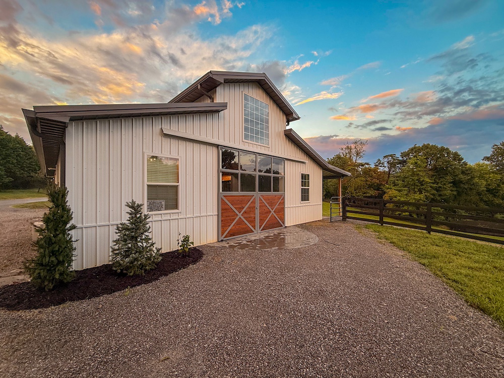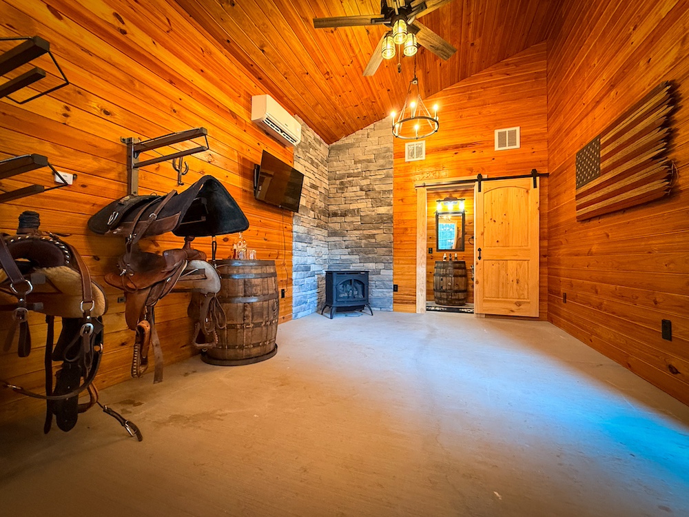 - 48x36 insulated 3-stall barn with automatic waterers, tack room, full bath, hay loft