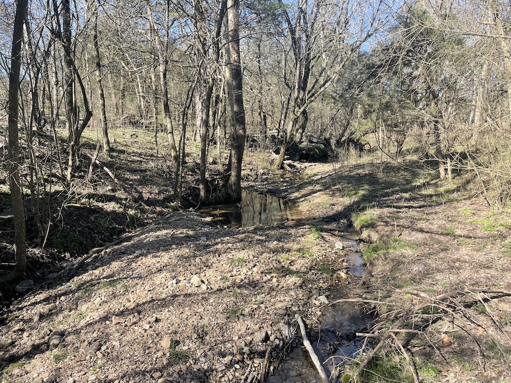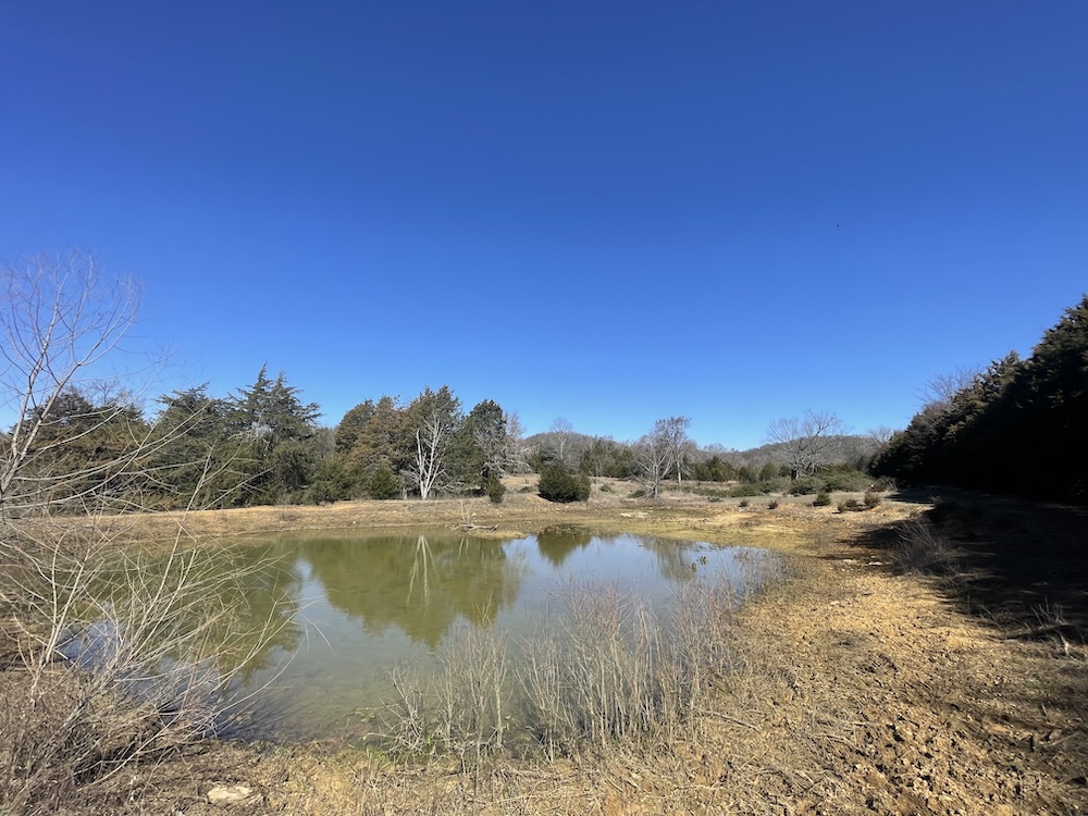 A natural spring with a pump house, a pond, and a creek contribute to the property’s diverse water resources. The pond provides opportunities for fishing and livestock watering, while the creek and spring ensure a steady, natural water supply year-round.