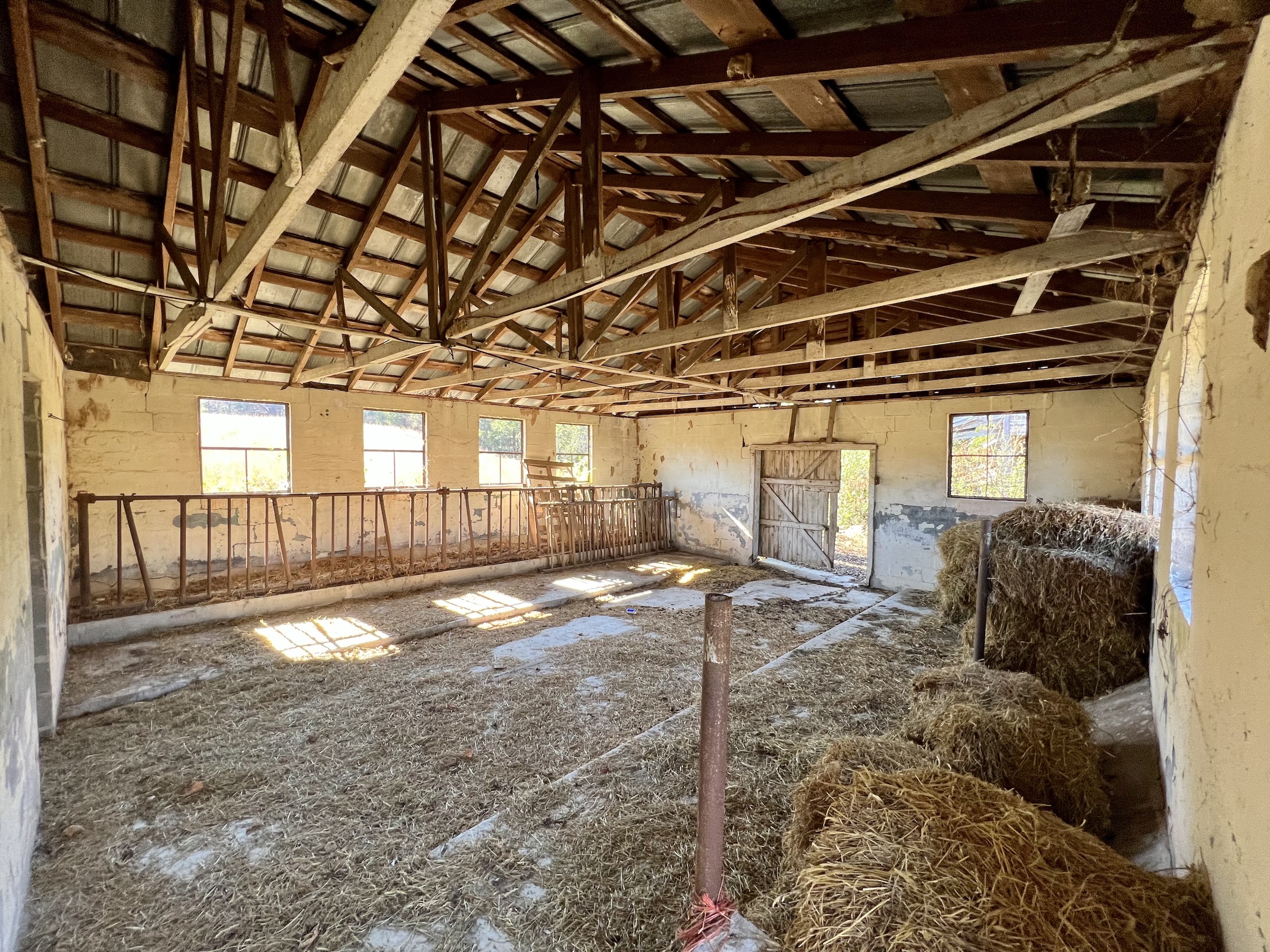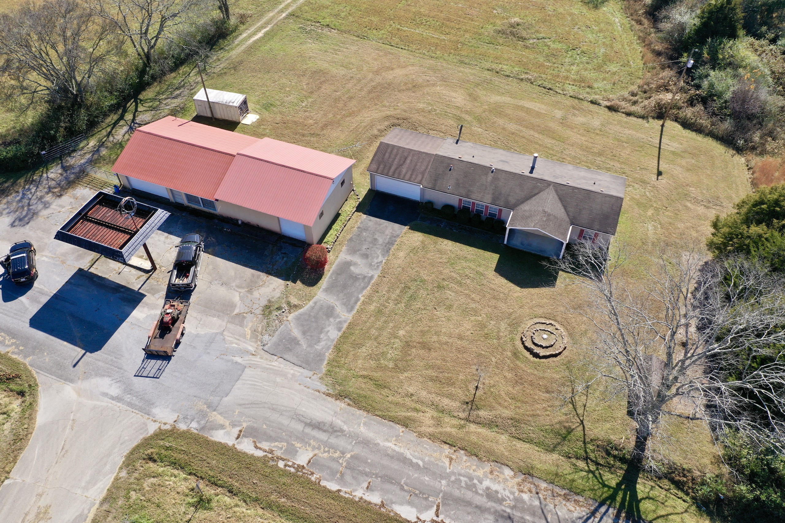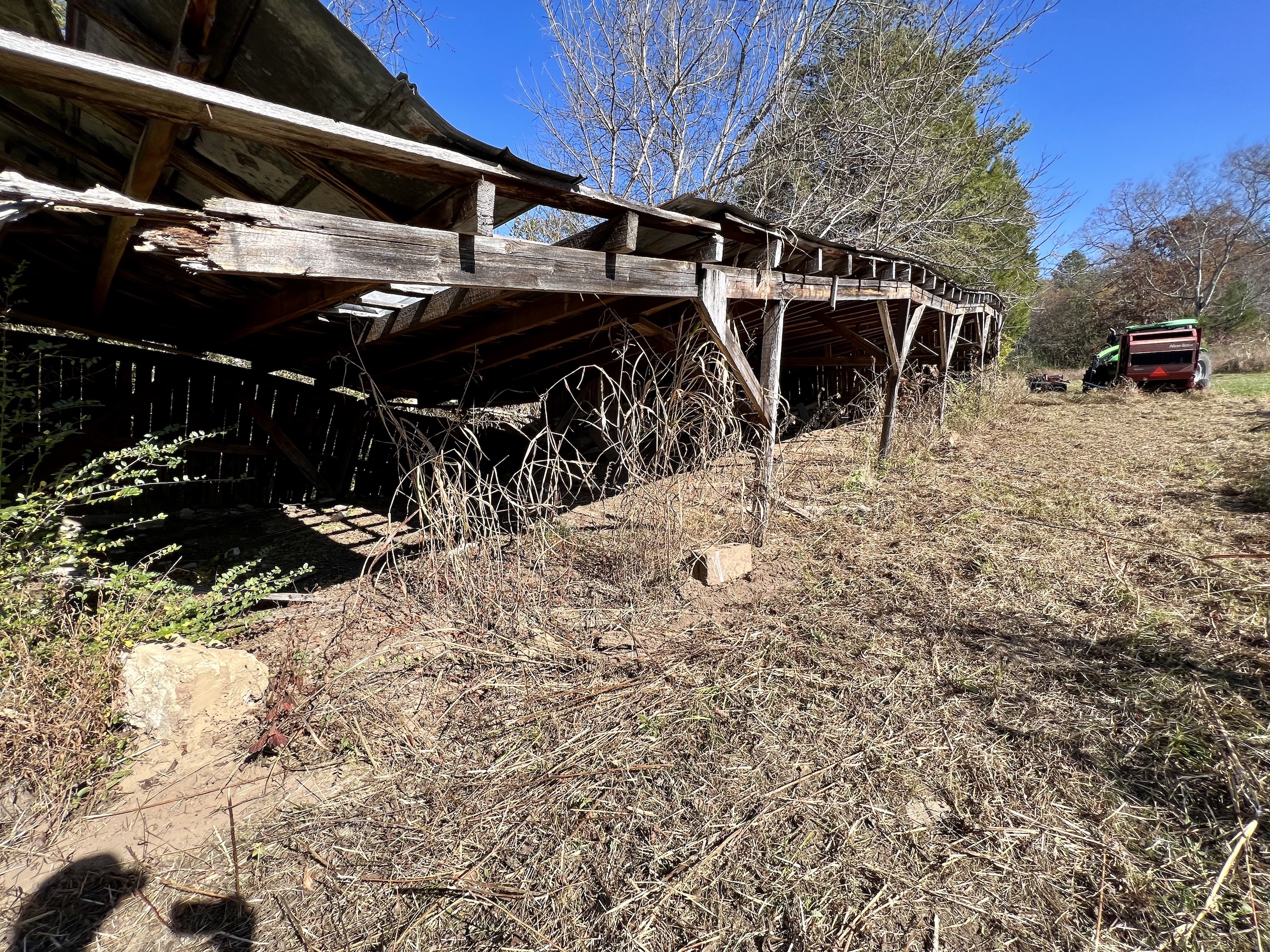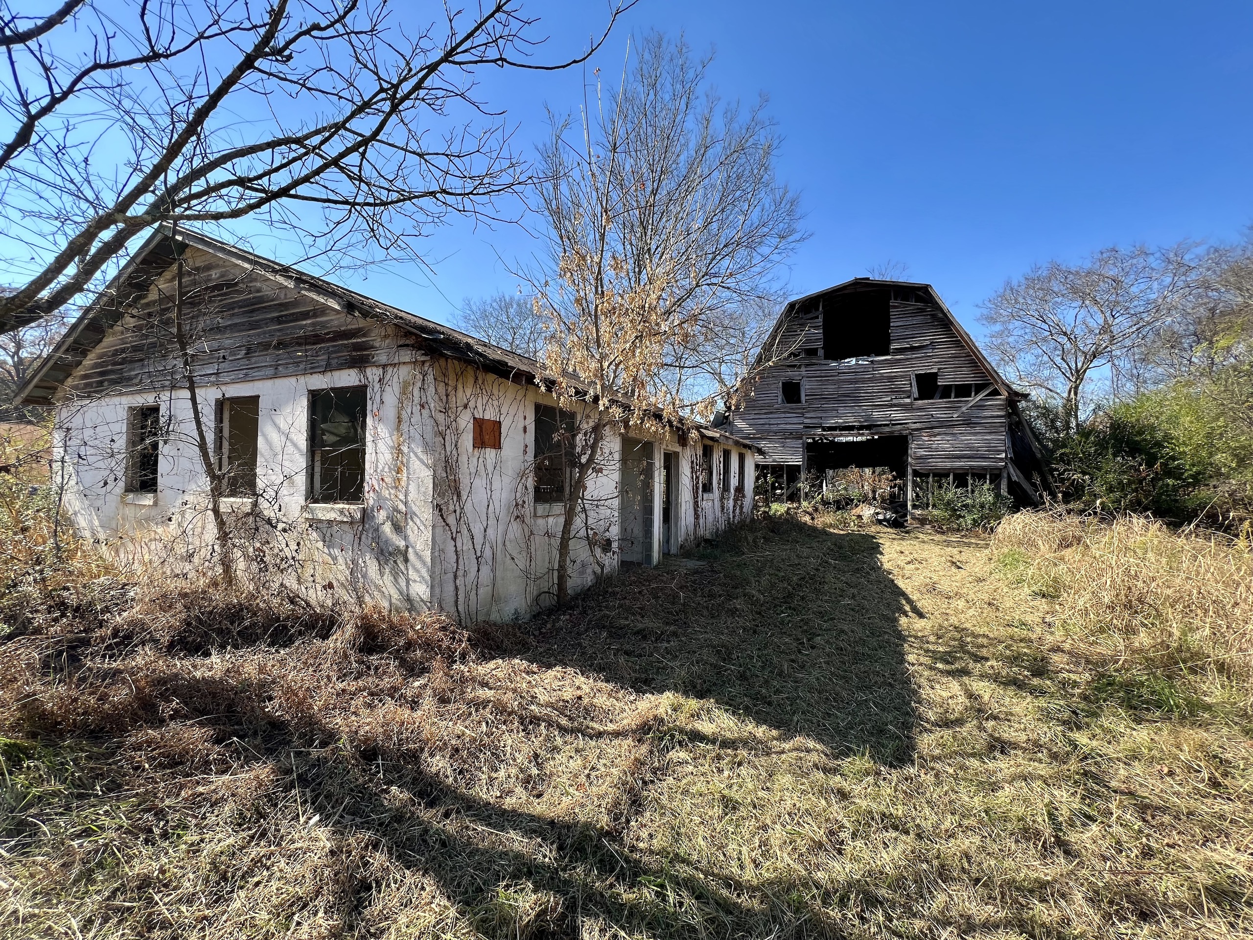 - Barn, mobile home, and storage building on site