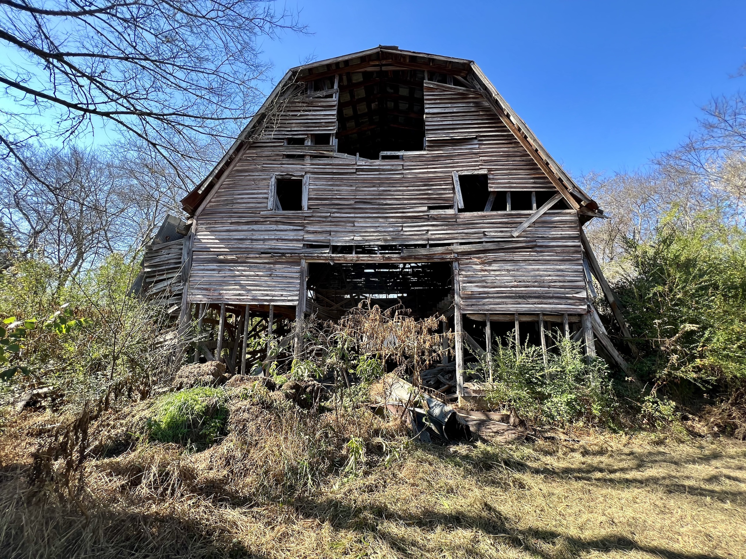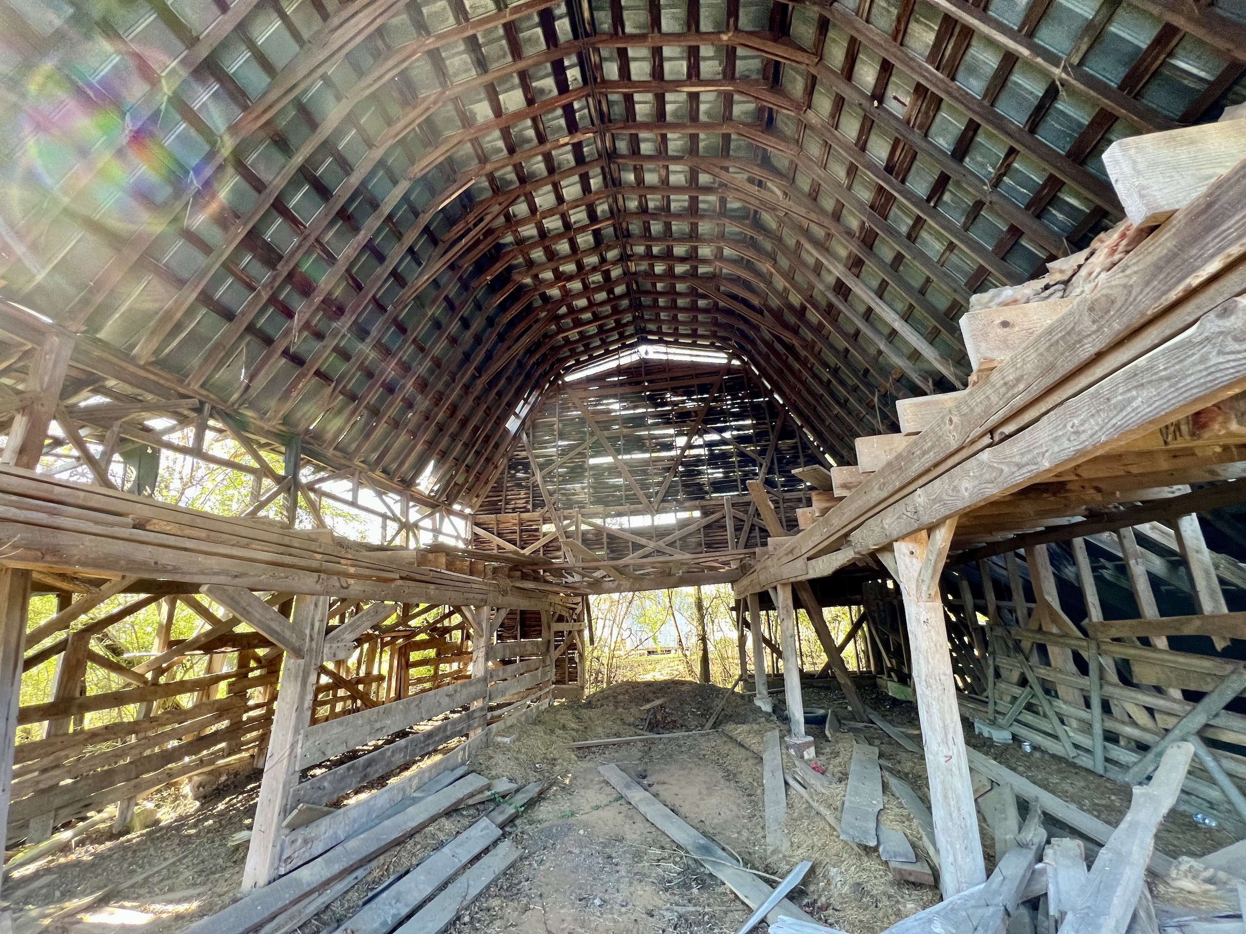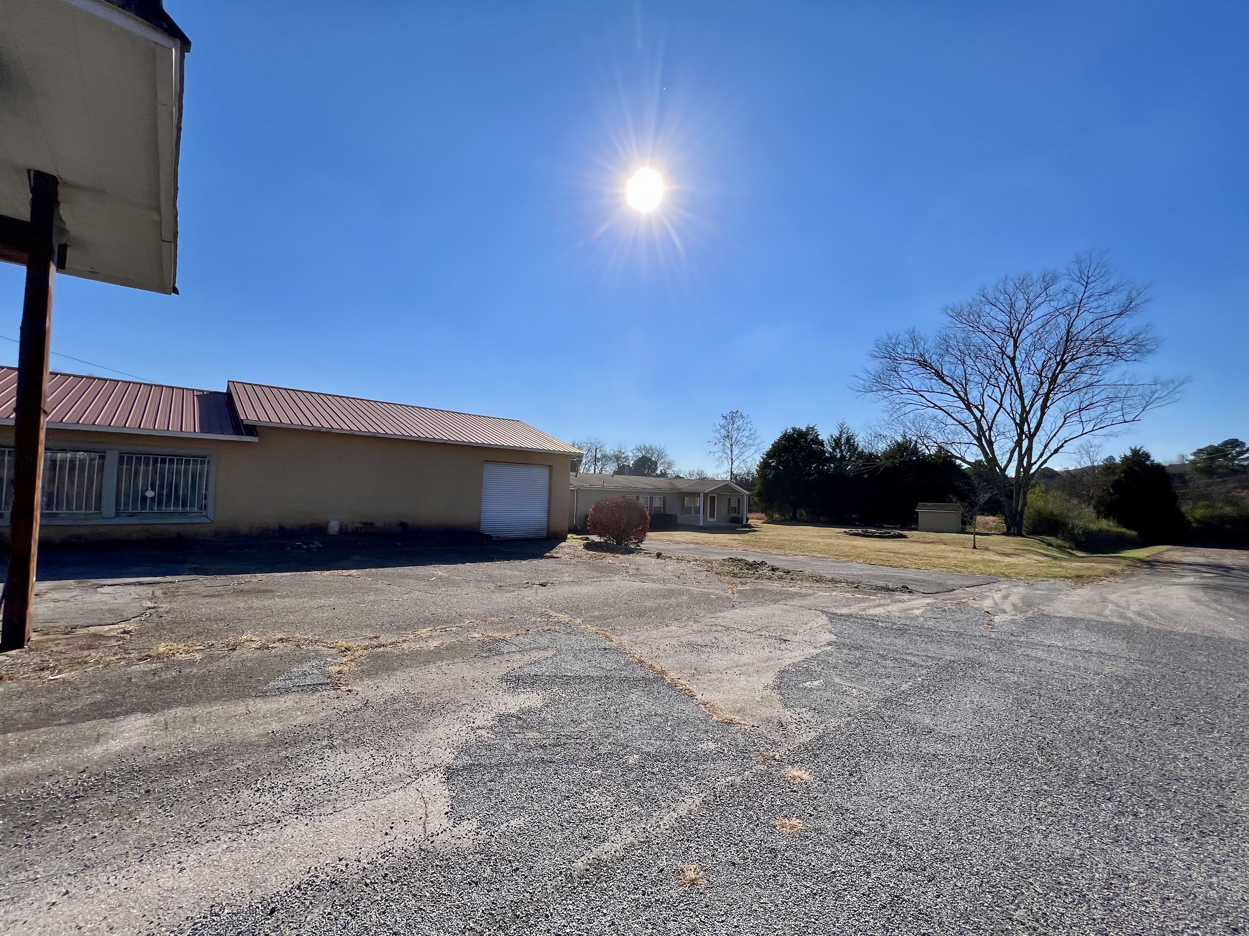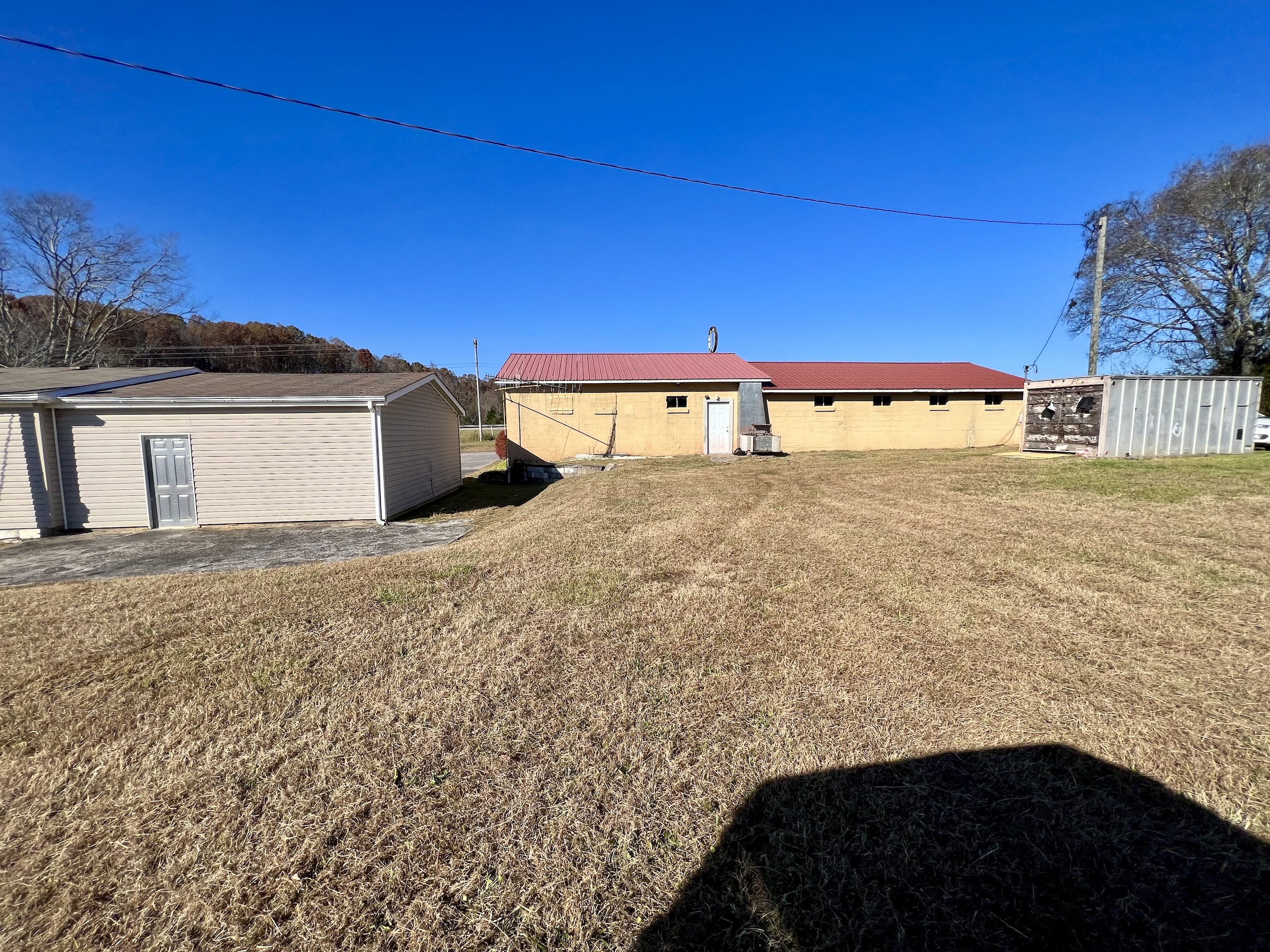 - Barn, mobile home, and storage building on site