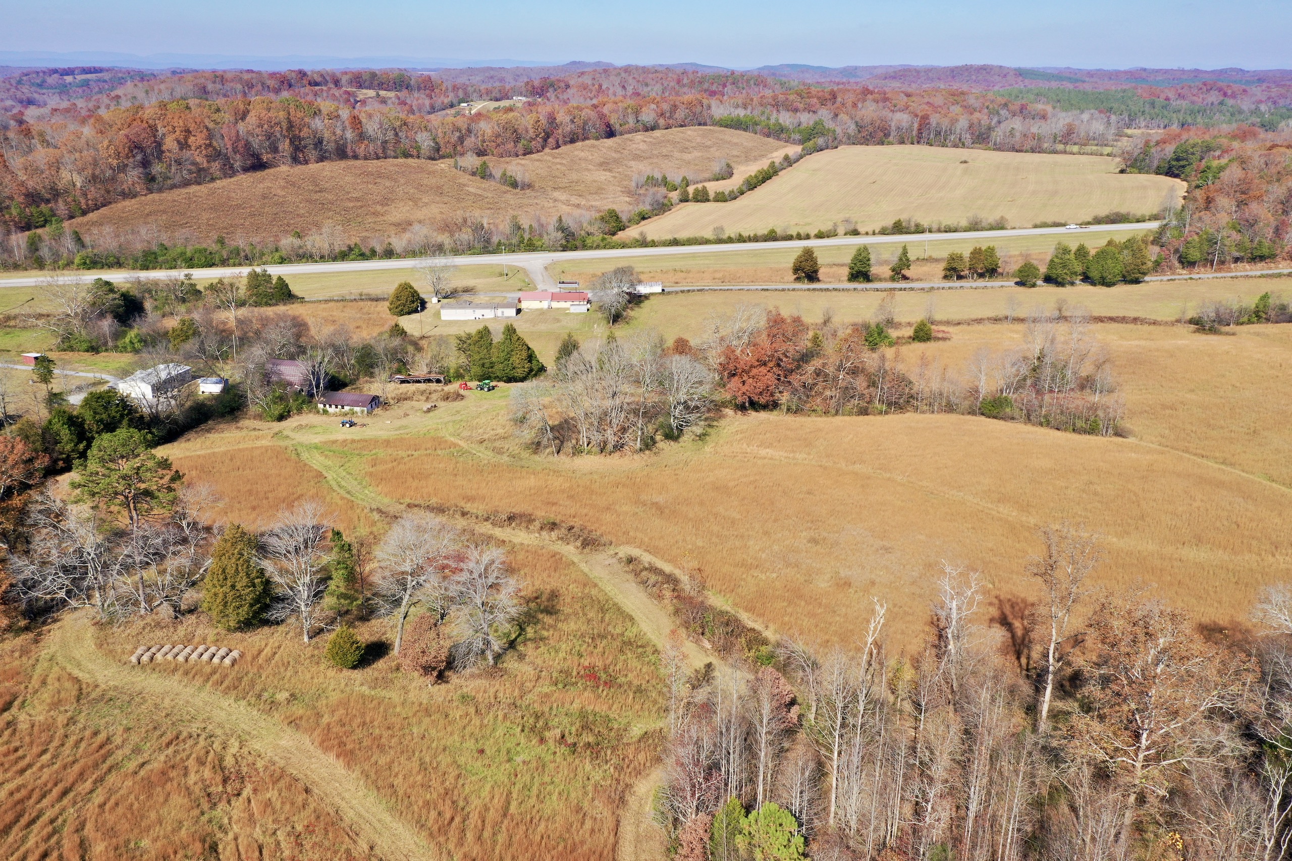 The property consists of 4 tracts on both sides of Hwy 68. It has a great mixture of pasture and mature timber with multiple springs and a creek creating a great habitat for different wildlife. Wildlife includes quail, whitetail deer, turkey, and sandhill cranes. There are multiple building spots and great views, with an existing barn, mobile home, and storage building on the property. The farm is being used as a cattle farm with an existing tunnel to move his cattle from one side of the interstate to the other. The property is located by the interstate with great access to Sweetwater, Watts Bar Lake, and other places the area offers. Give us a call to take a look on one of our comfortable side by sides.