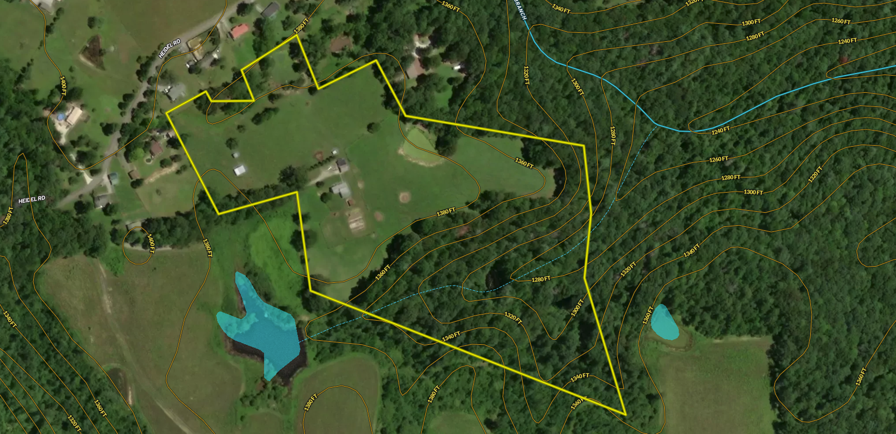 - 3 ponds and a creek