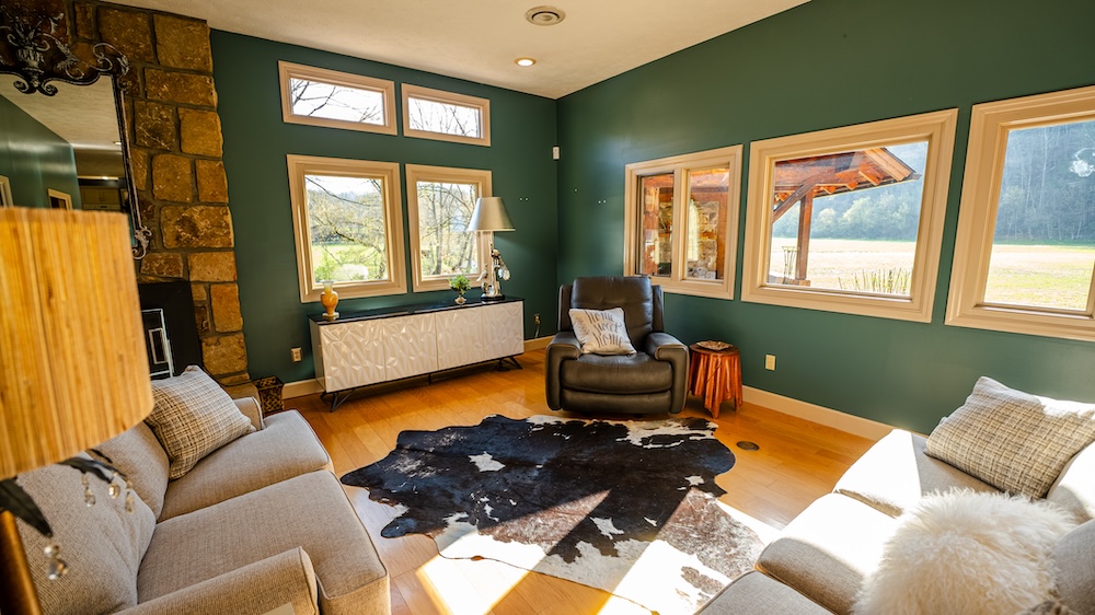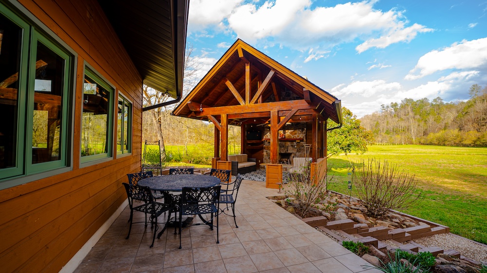 Located in the foothills of the Great Smoky Mountains, this beautiful property offers peaceful country living surrounded by nature. The land features a scenic combination of open pasture and mature timberland, creating a perfect blend of usable land and privacy. The beautiful home features 4 bedrooms and 3½ baths, a warm and inviting indoor fireplace, and a large kitchen with abundant windows that bring in natural light and showcase the scenic views surrounding the home. Throughout the house, large windows let you enjoy the property's beauty from nearly every room. Outdoor living is just as impressive, with a covered gazebo, spacious deck, and outdoor fireplace, ideal for relaxing or entertaining guests. The property also includes two classic wooden barns, a potting shed, and established garden areas. Dunn Creek flows year-round through the property, enhancing the peaceful setting. A beautiful pond fed by a natural spring and surrounded by stone creates a stunning focal point. Beside the pond sits another covered gazebo with a deck and outdoor fireplace, offering the perfect place to unwind while enjoying the tranquil water views. Despite its private, scenic setting, the property is conveniently located close to everyday amenities, including shopping, hospitals, and a full range of services, offering the perfect balance of seclusion and accessibility.
